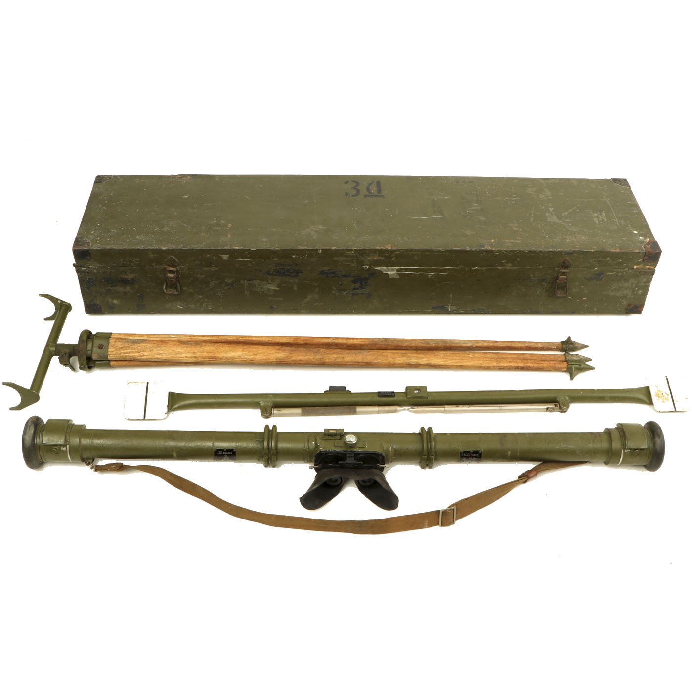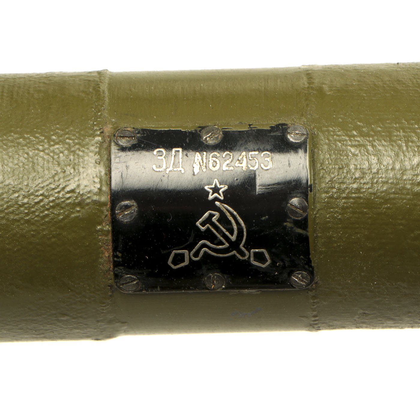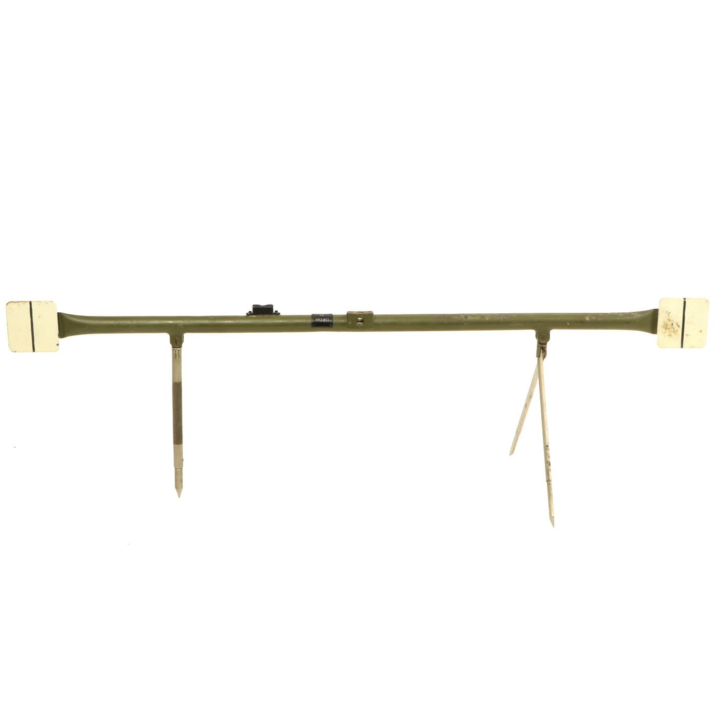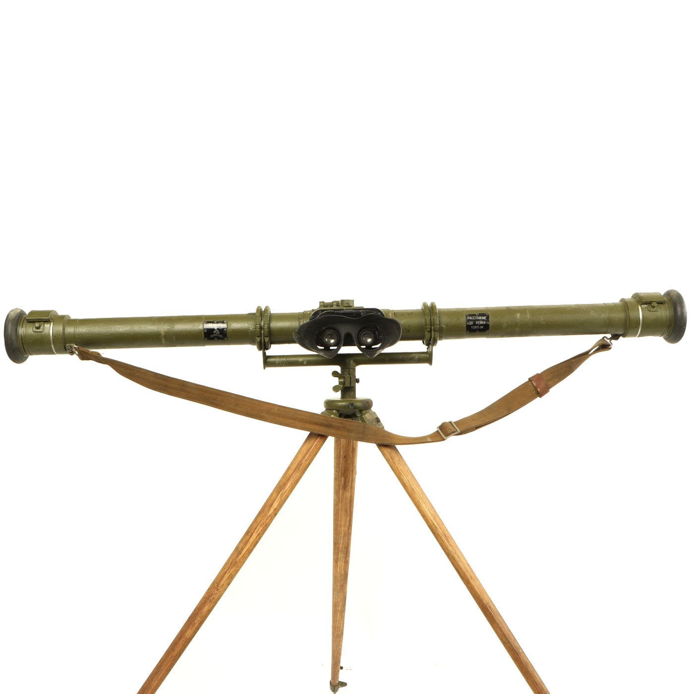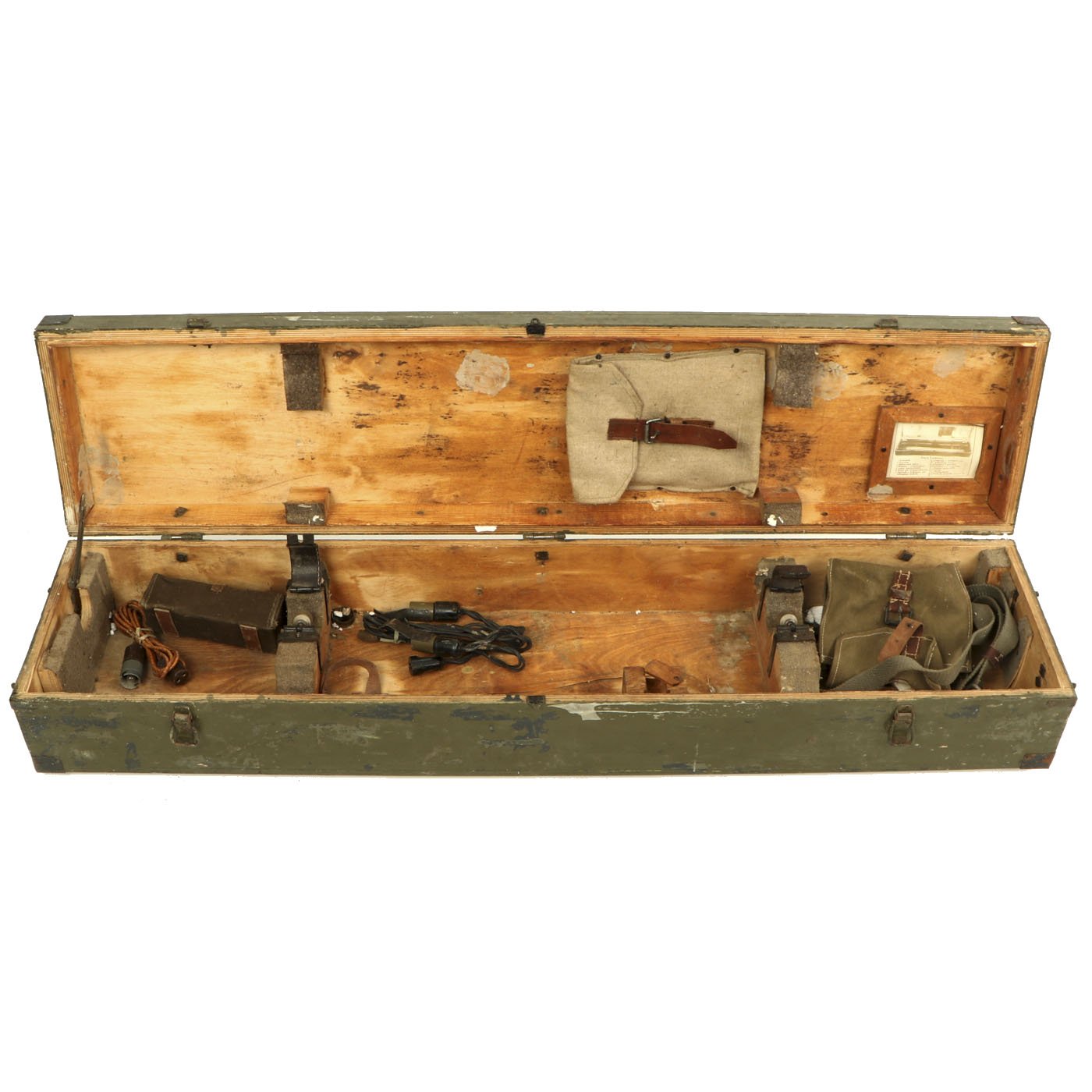 Original Item: Only One Available. This is a fantastic Cold War era rangefinder produced for the Soviet military. It measures approximately 44" in length and has a wood tripod with legs that measure approximately 40". Features original data plates, one with a hammer and sickle and original wood transit chest.