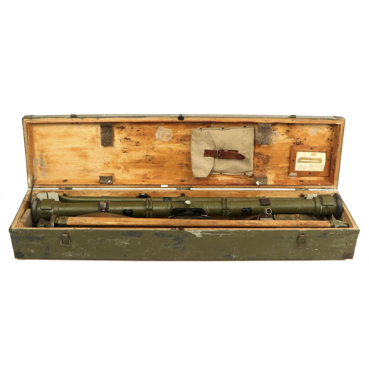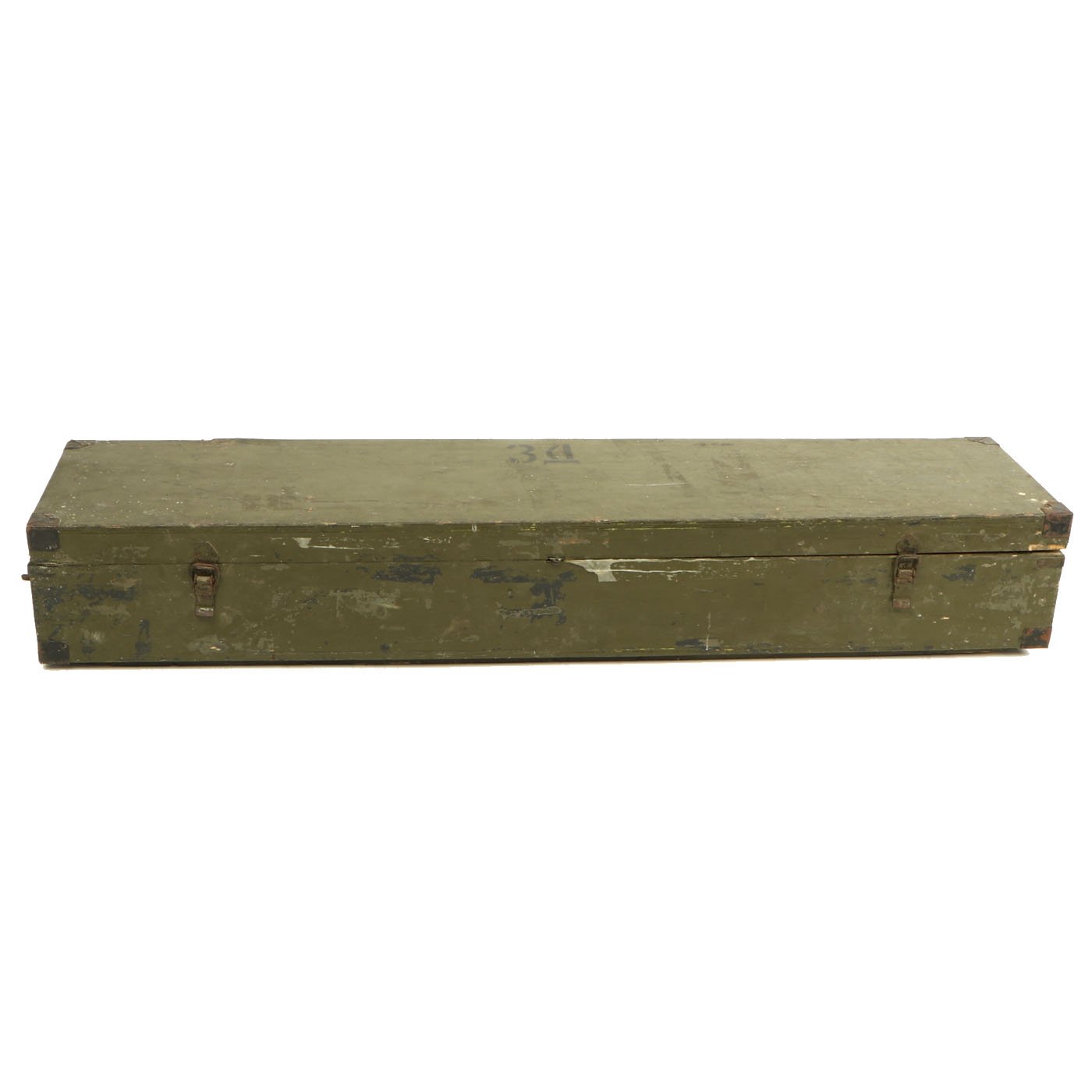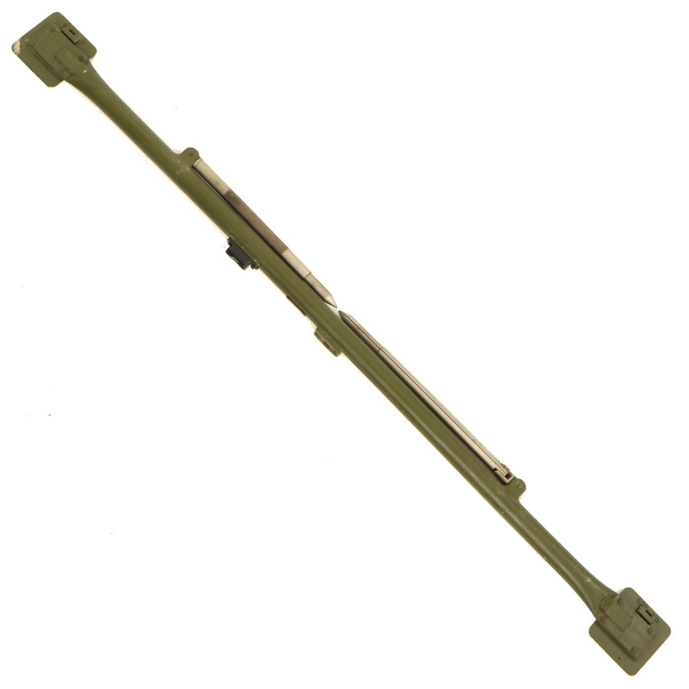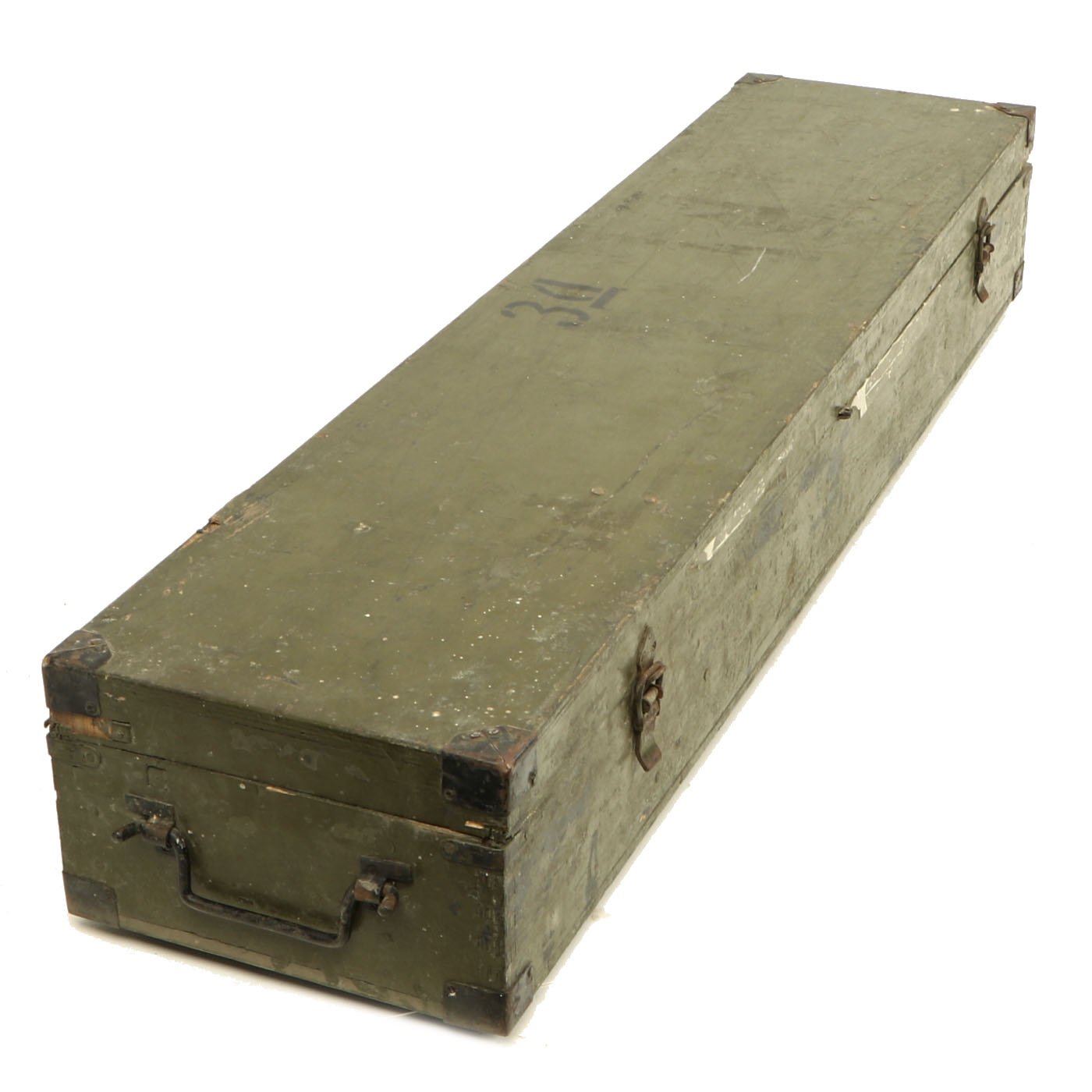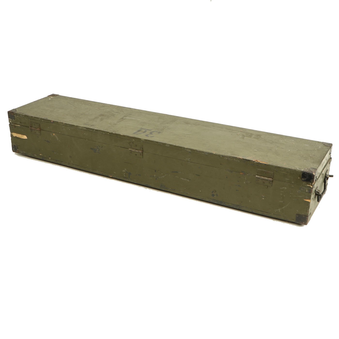 Original Item: Only One Available. This is a fantastic Cold War era rangefinder produced for the Soviet military. It measures approximately 44" in length and has a wood tripod with legs that measure approximately 40". Features original data plates, one with a hammer and sickle and original wood transit chest.