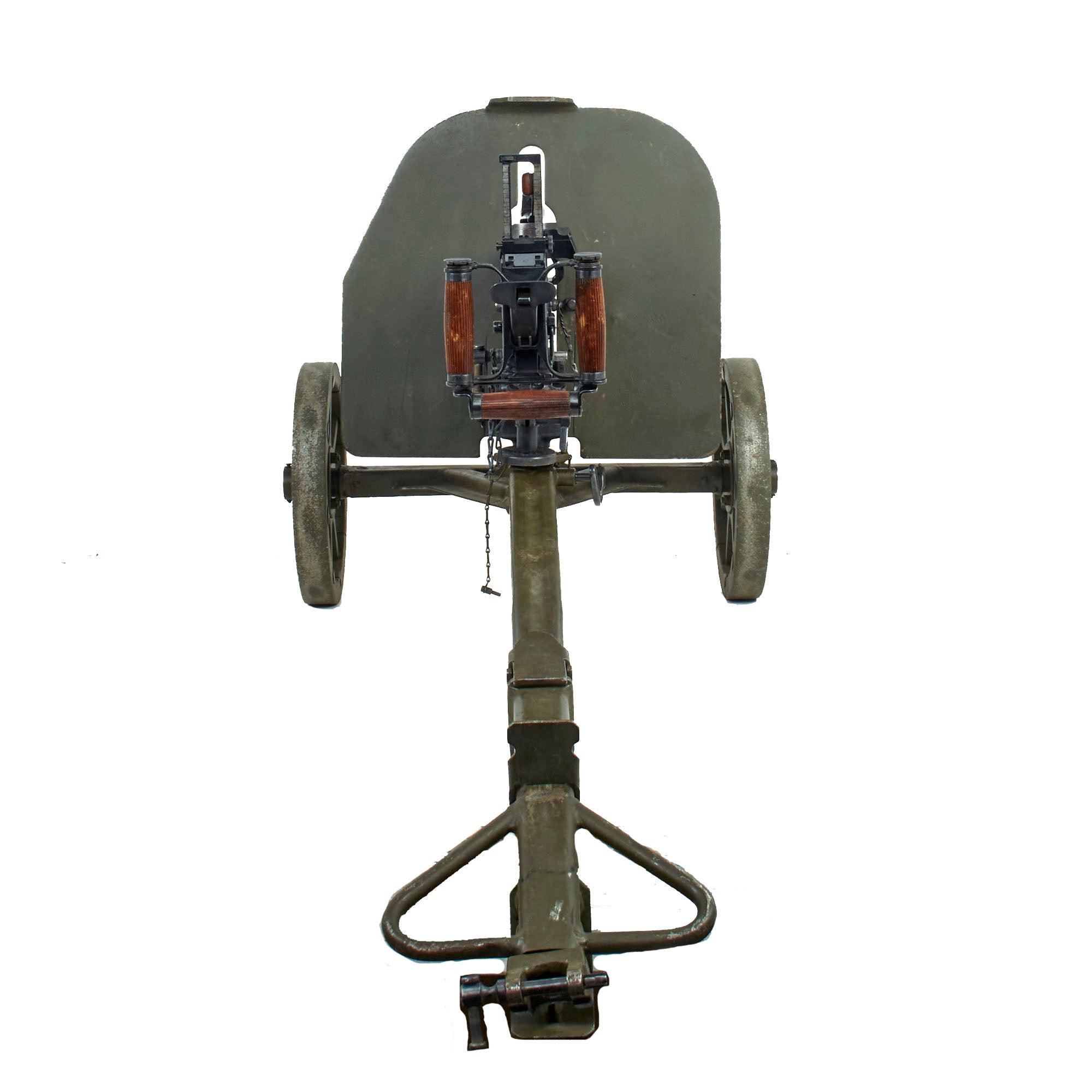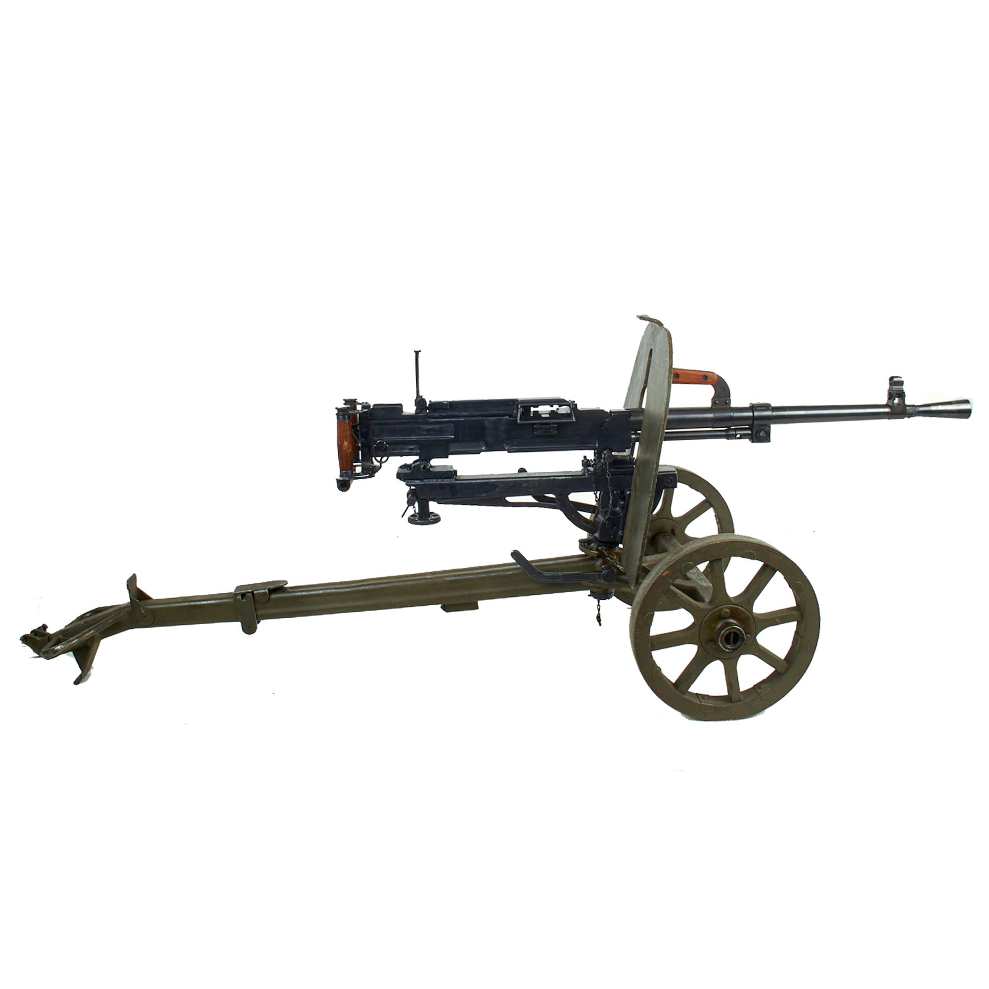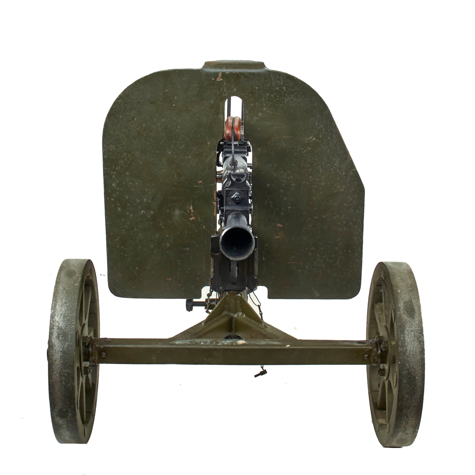 Original Item: Only One Available. This is an incredible Soviet Polish SGM wz.43 Goryunov Display Machine Gun, built from all original parts on an original BATF compliant inert non-firing display receiver, making this a 100% legal display Machine gun. This receiver was created by using portions of the original torch cut receiver, including the barrel bushing, combined with some new made steel portions. It has properly had a 25% section of the total length completely replaced entirely with solid steel bar stock. Meaning a 1/4 length section of the display receiver is solid steel, making this totally legal to own without a license of any kind. It is dated 1953 on the top cover receiver but also could contain some WWII era parts. It comes complete with shield and wheeled mount. The top cover is marked: