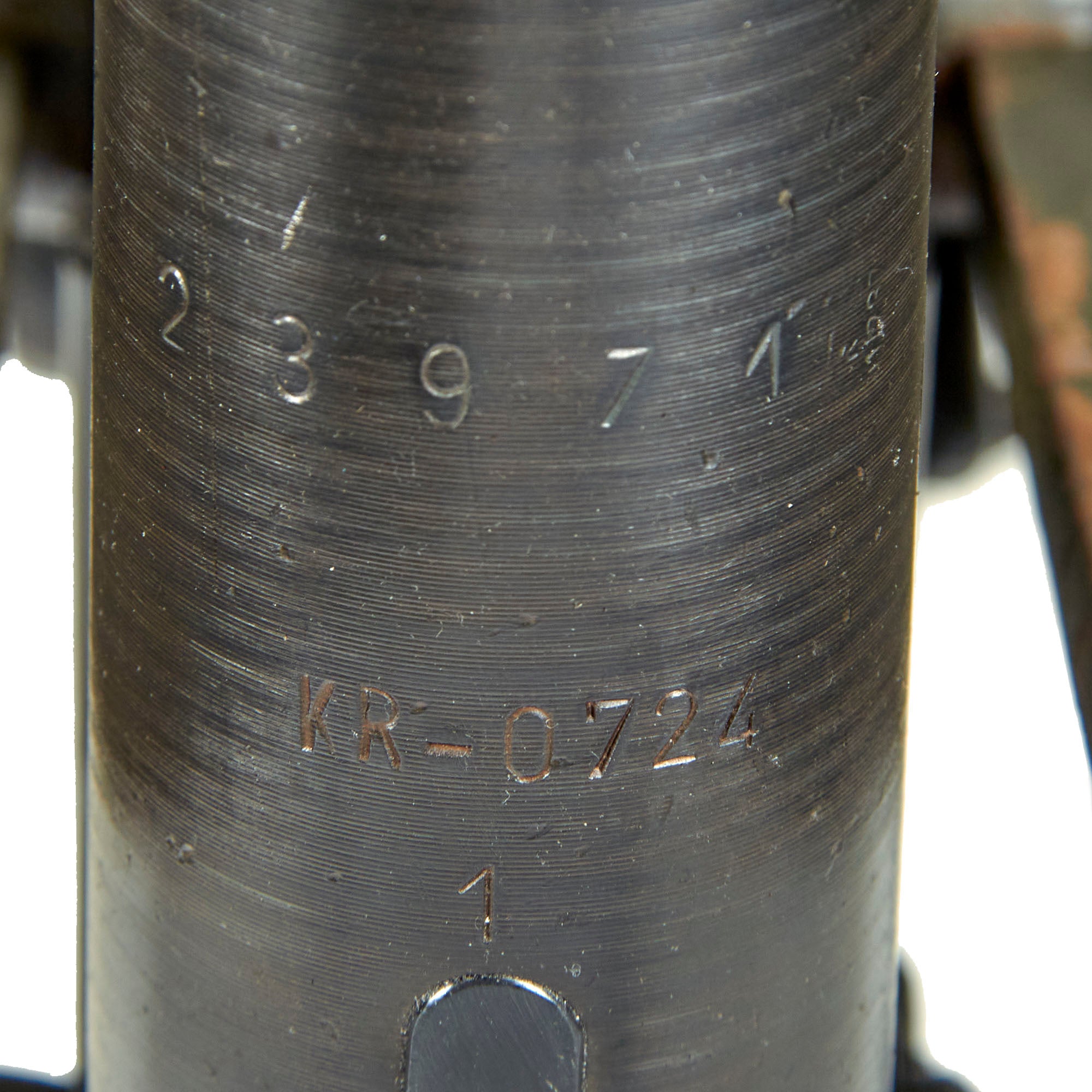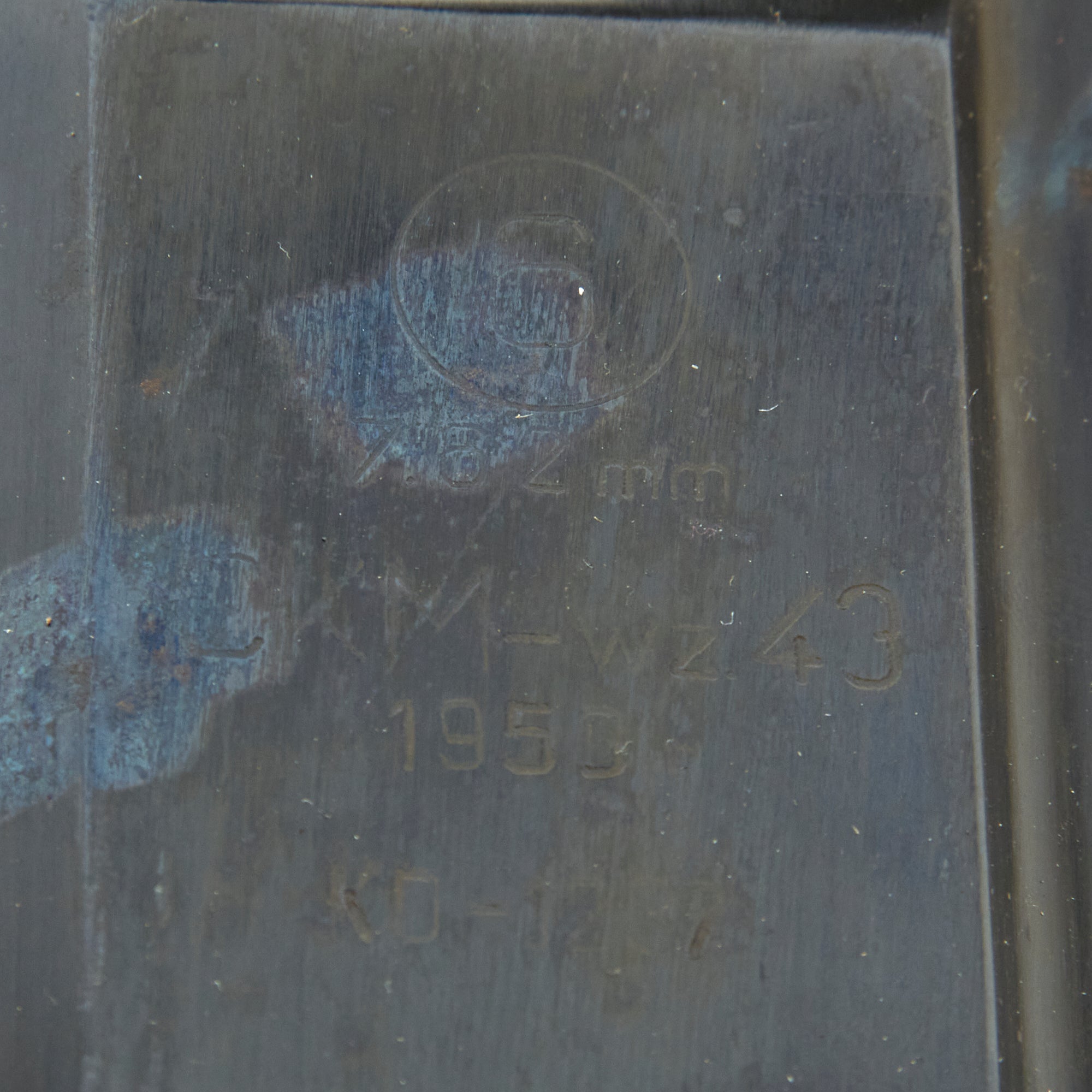 This markings indicate that it is definitely a Polish-made example of the SGM, as "CKM - wz. 43" is the Polish designation. At the top of the markings is 6 in a circle, indicating manufacture by H. Cegielski in Poznań, who previously used the "HCP" monogram, but switched to the Soviet bloc style number system after WWII. There are other markings stamped on the barrel and on the mount, however we are not really able to decipher what they mean. Most likely they are stock and production numbers.