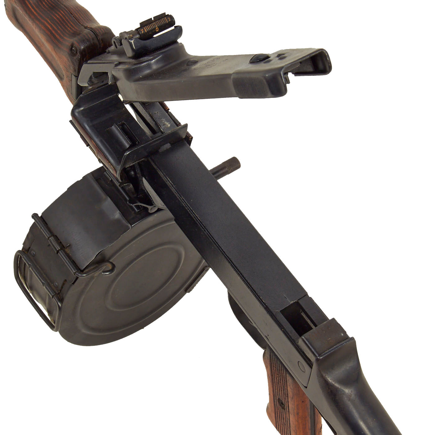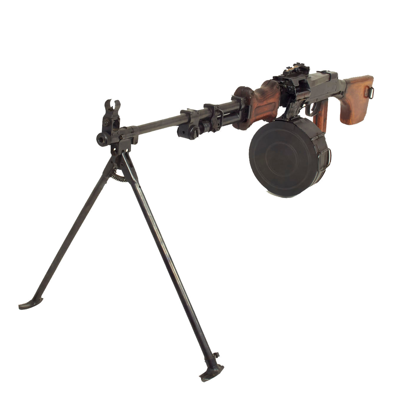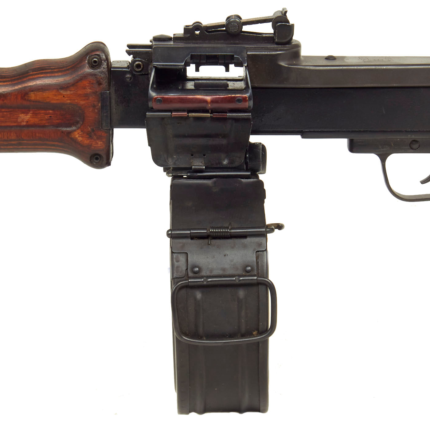 Original Item: Only One Available. While the RPD began production in 1944 this example is a post WWII RPD Soviet Machine gun. It is marked with ПС303 / B on the top cover with a date of 1953. The arsenal marking is too faint to be recognized.
