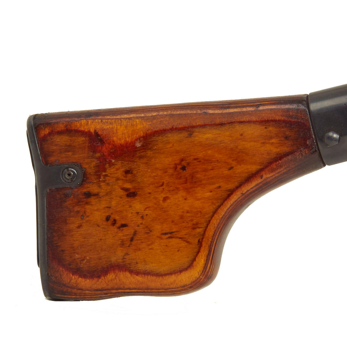 Offered as a BATF non-gun compliant non-firing display, built on a rewelded dummy receiver with over 50% completely replaced with solid bar stock. The bottom plate and top cover are original parts as are all other parts on this gun with the exception of the steel added to the receiver.