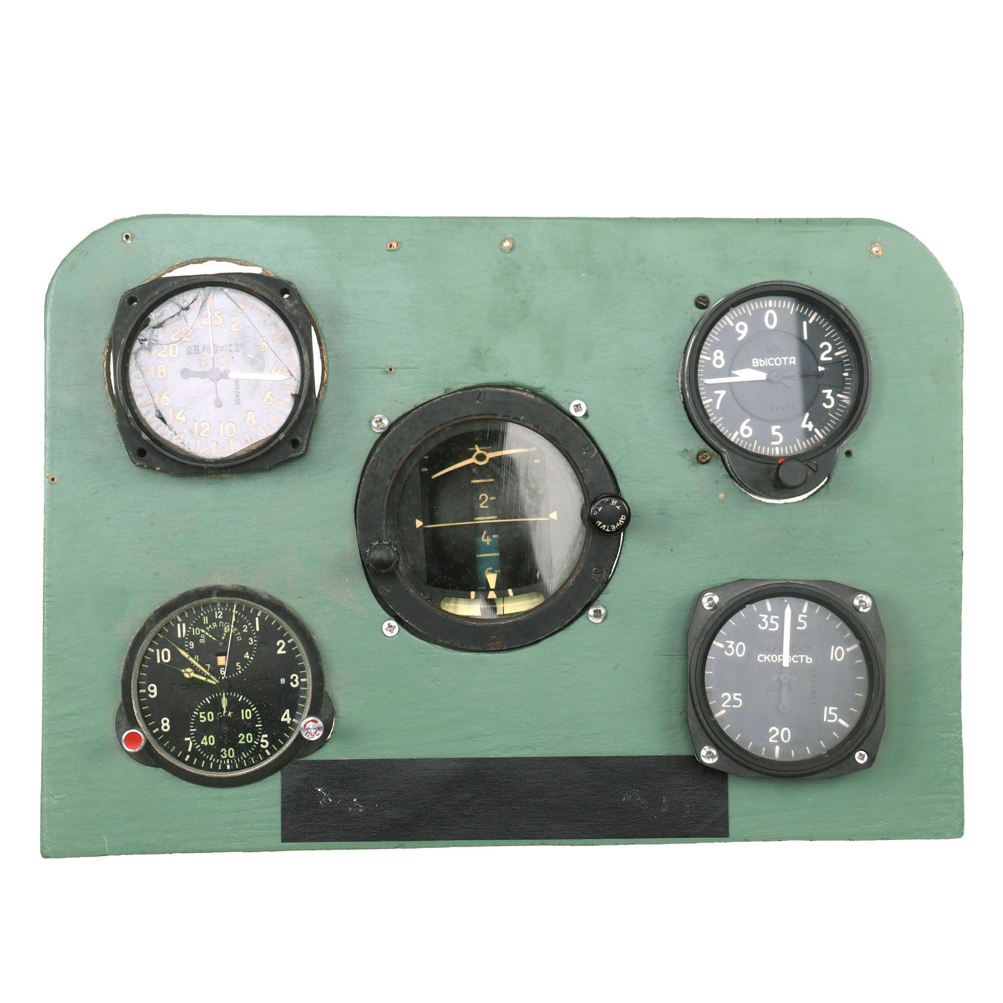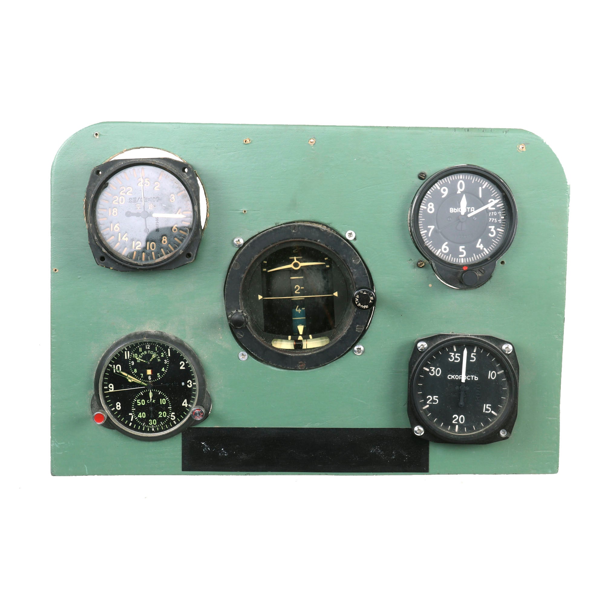 Original Items. Only One Lot Available. This is a great lot of five aircraft gauges, four Soviet & one Chinese, used during the Post-WWII/Cold War Era. Two of the gauges are removable but the other three are fastened to the board. One of the gauges has cracked glass as shown.