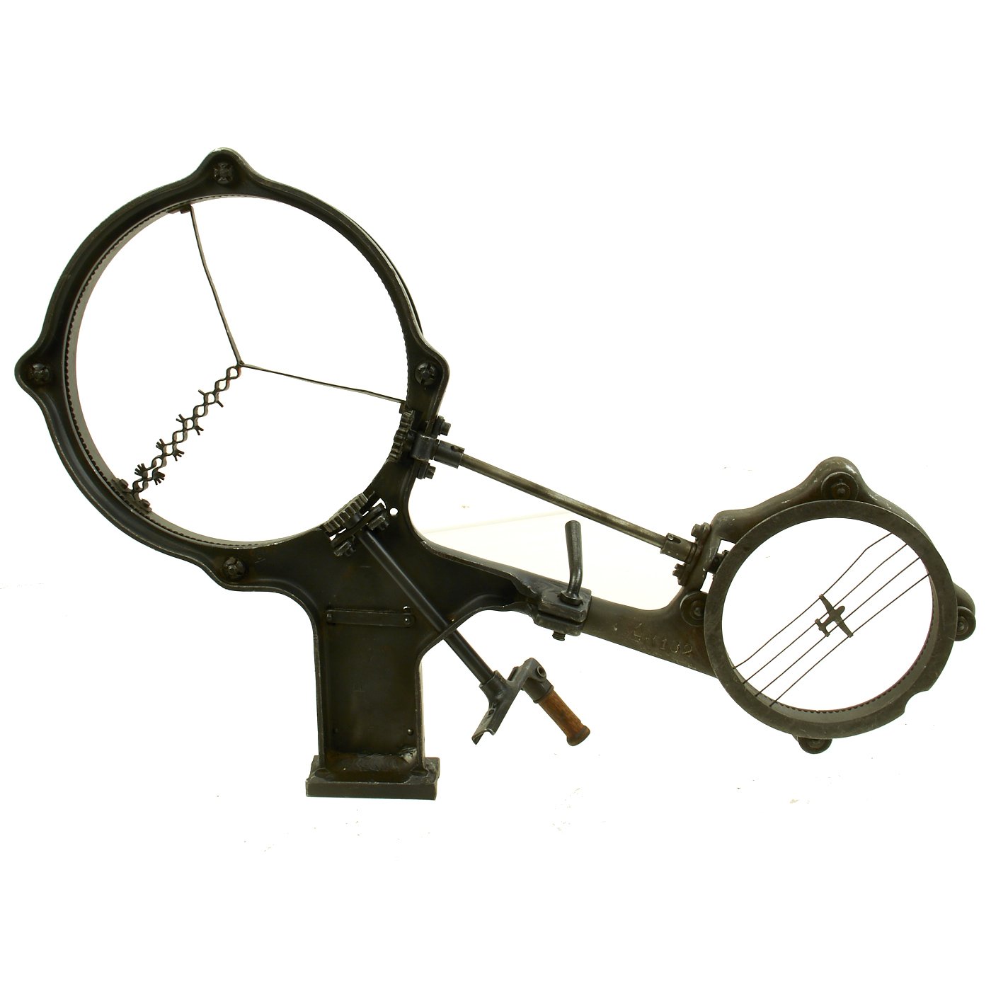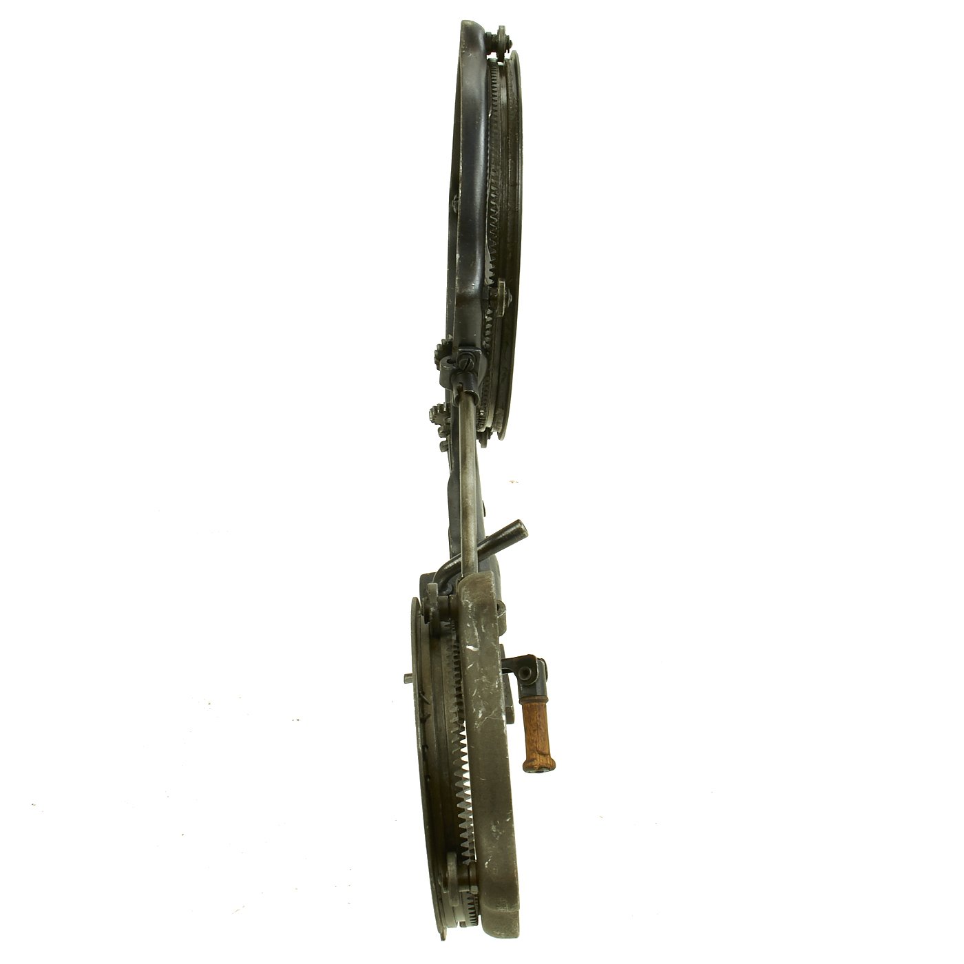 This is the exotic rear sight for the DShK 12.7mm Heavy MG, which is fully functional, with rotating crosshairs and tracking reticle, still linked with the connecting rod. The small crank on the side rotates both sides at the same time, and is fully functional. The sight also disassembles correctly using the clamp between the two sections.