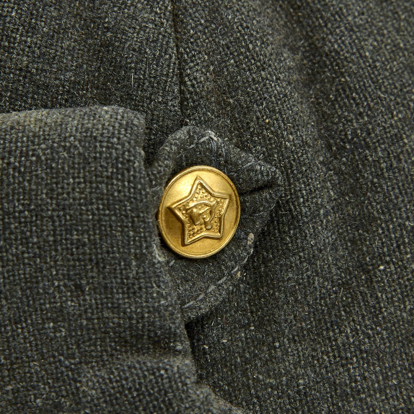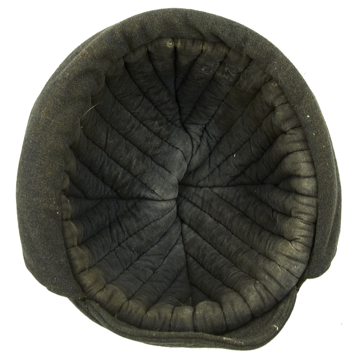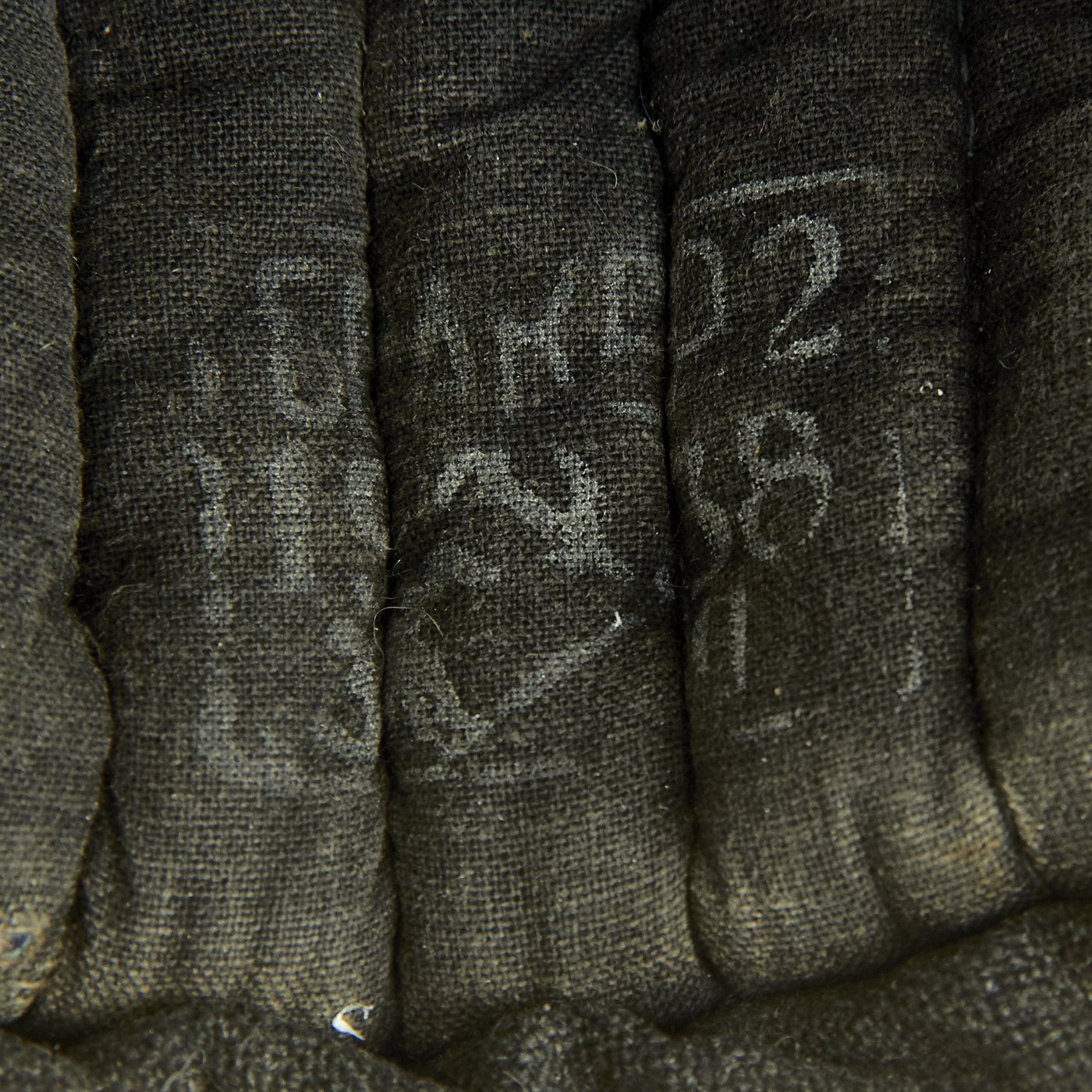 The interior is dark gray cloth, most likely cotton, with padding and insulation. There is a arsenal mark on the back, which has a "Hammer and Sickle" mark and a date of 1939.