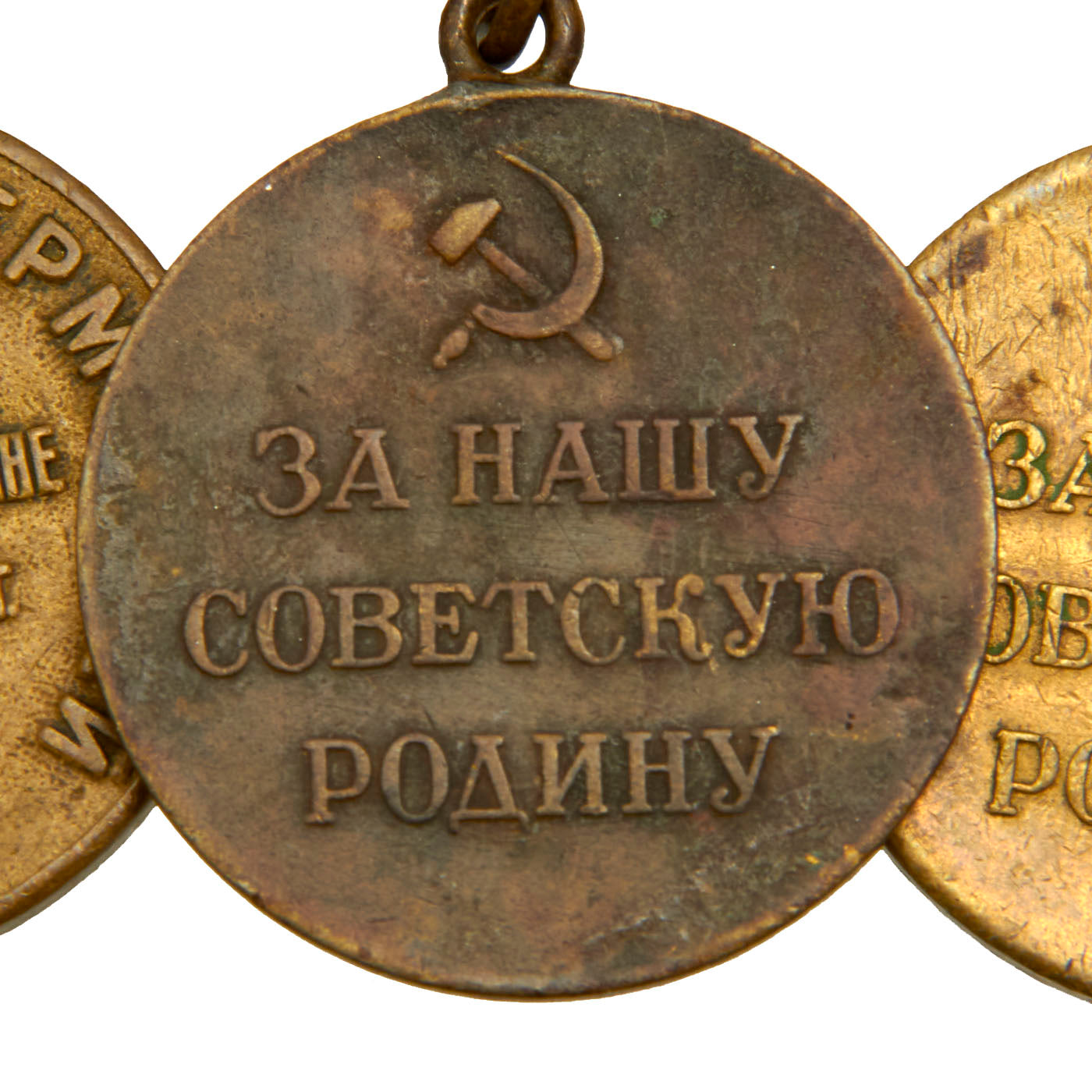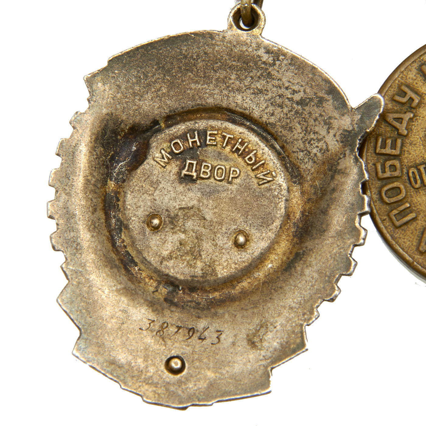 The medals are offered in excellent condition, the ribbons, however, have degraded from time and wear. There is staining and fraying present on the material, but it does not take away from the beauty of the individual award. Comes ready to display in your WW2 Soviet Union displays!