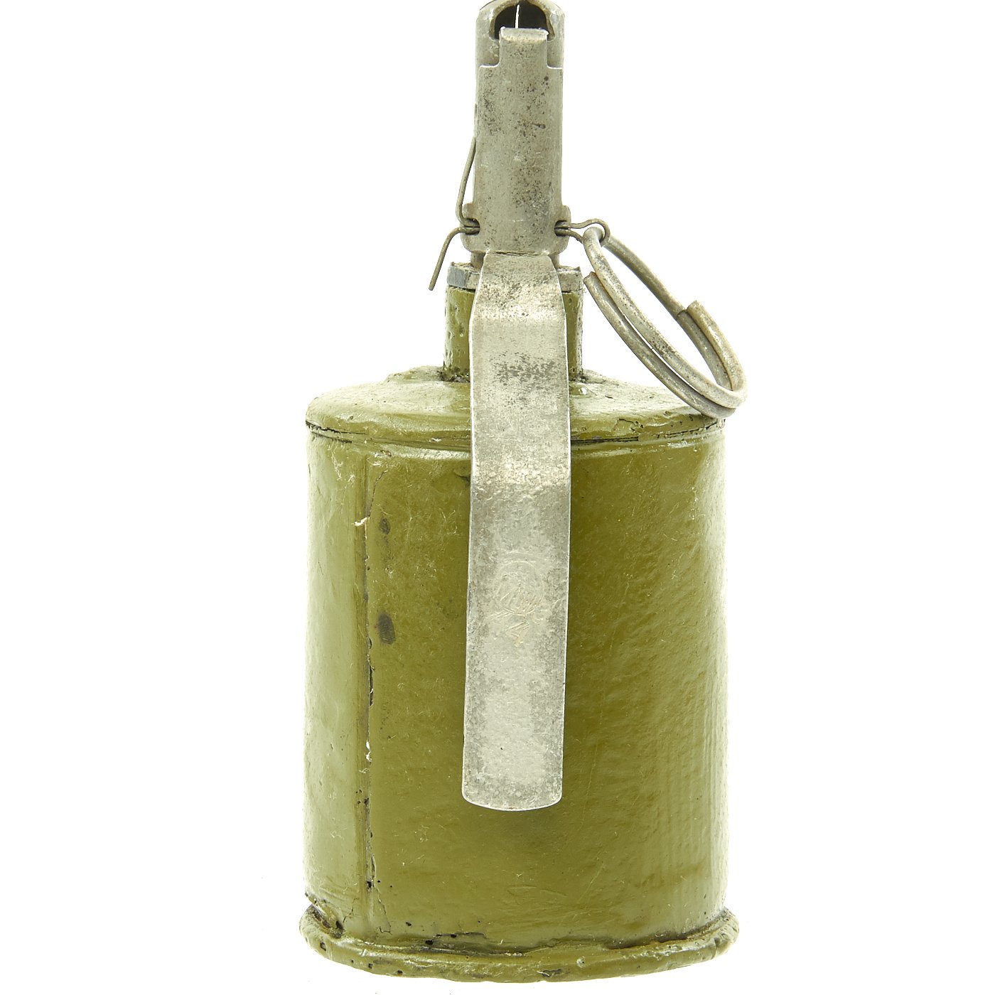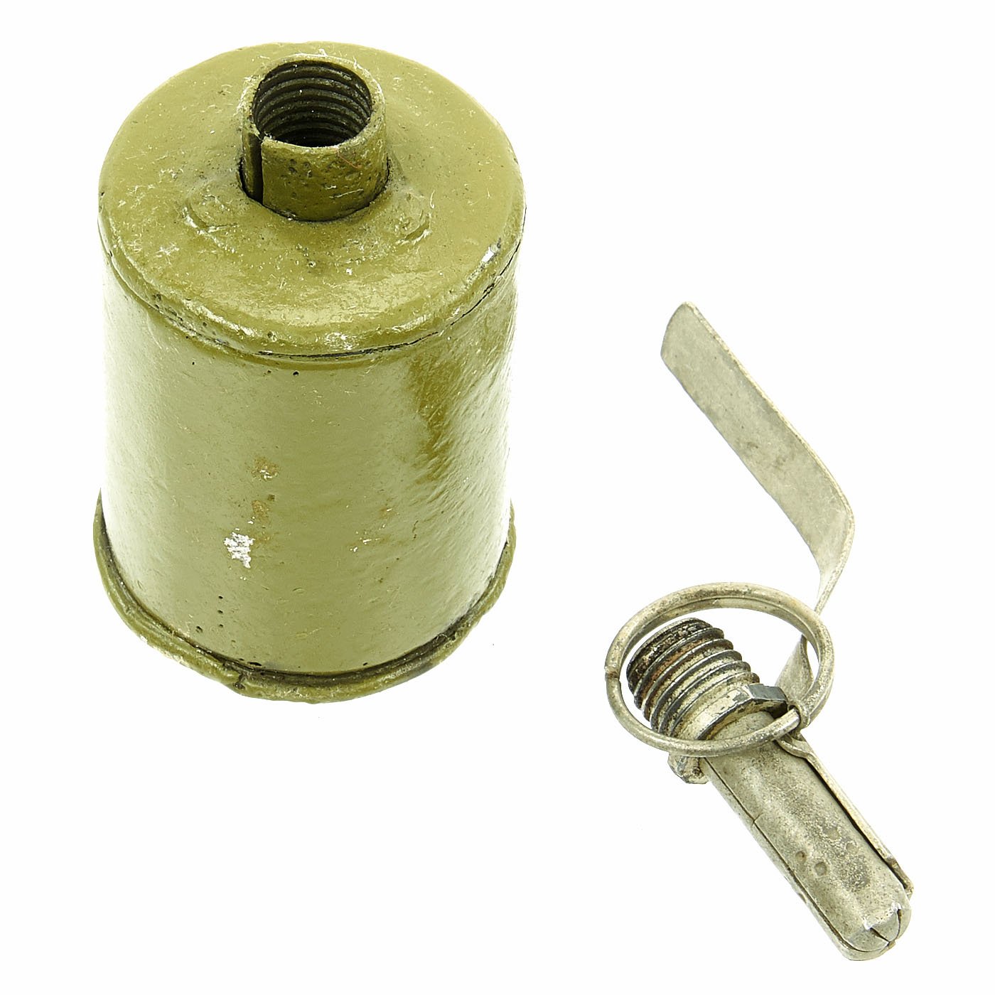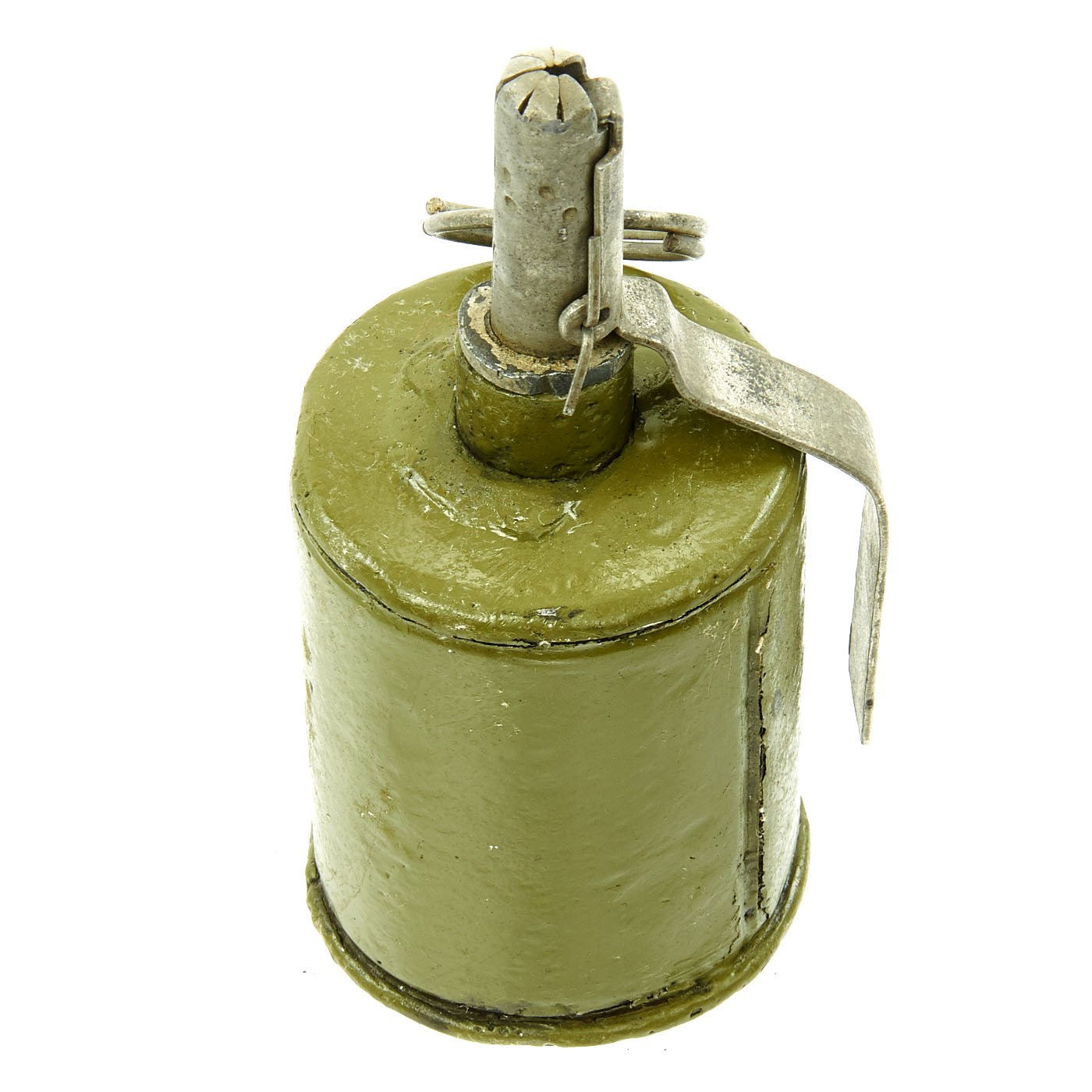 This WW2 example is offered in very good condition,though the body has been repainted post deactivation. It still has the original pull pin and spoon, and the fuze assembly unscrews from the body. A great example of a Russian RG-42 Hand Grenade, ready to display!