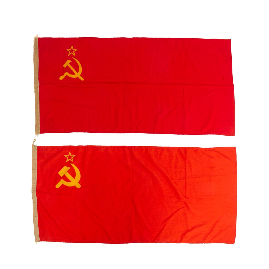 Original Items: Only One Lot of 2 Available. The State Flag of the Union of Soviet Socialist Republics, commonly known as the Soviet flag, was the official state flag of the Union of Soviet Socialist Republics (USSR) from 1922 to 1991. The flag's design and symbolism are derived from several sources, but emerged during the Russian Revolution. The flag is also an international symbol of the communist movement as a whole.
