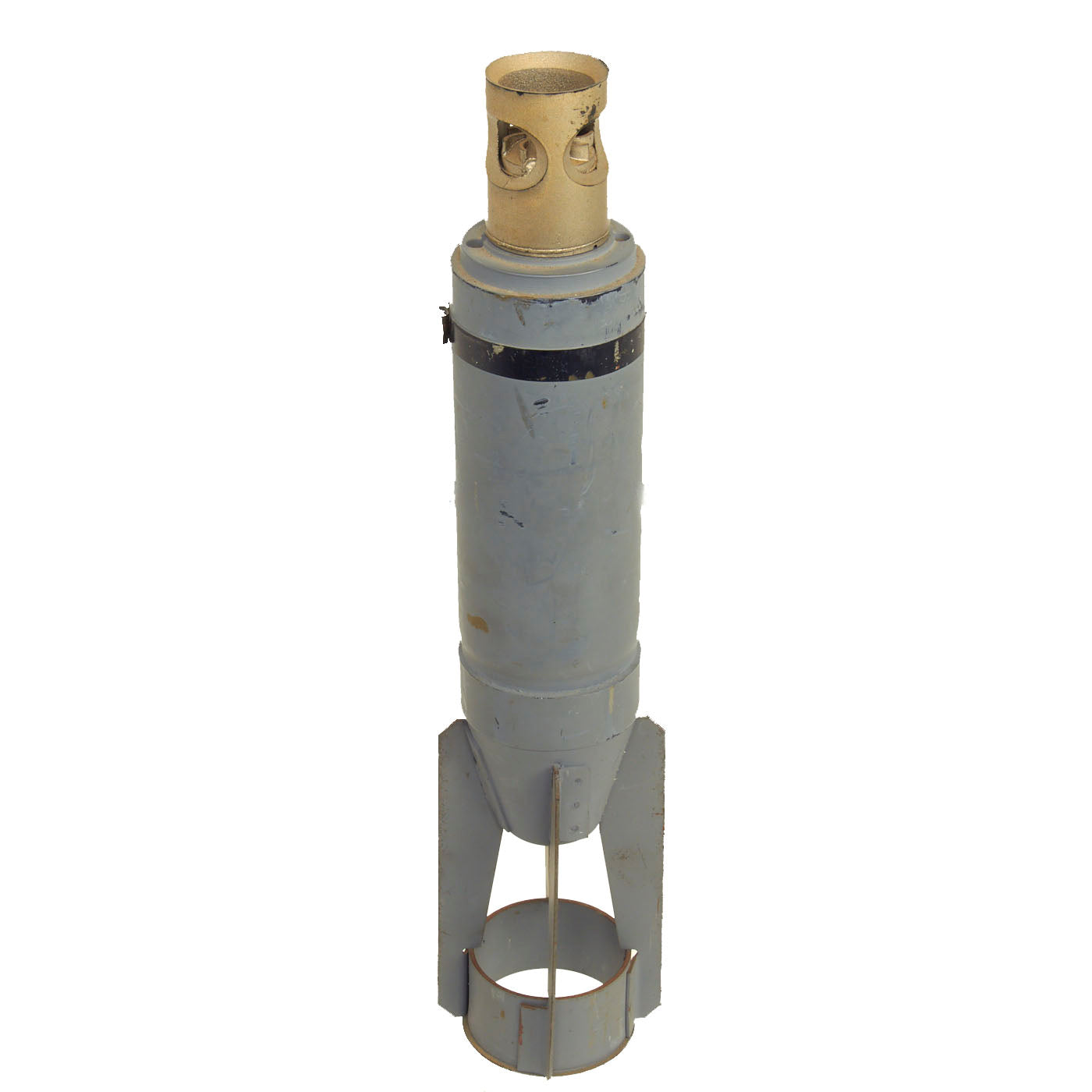 This example stands at 13.5” and retains almost all of the original paint and the ПТАБ - 2.5 designator painted in black on the front. The tail fins appear without damage and there are no dents or damage to the main body. The tail fin and cone assembly are still able to be removed to inspect the inside.