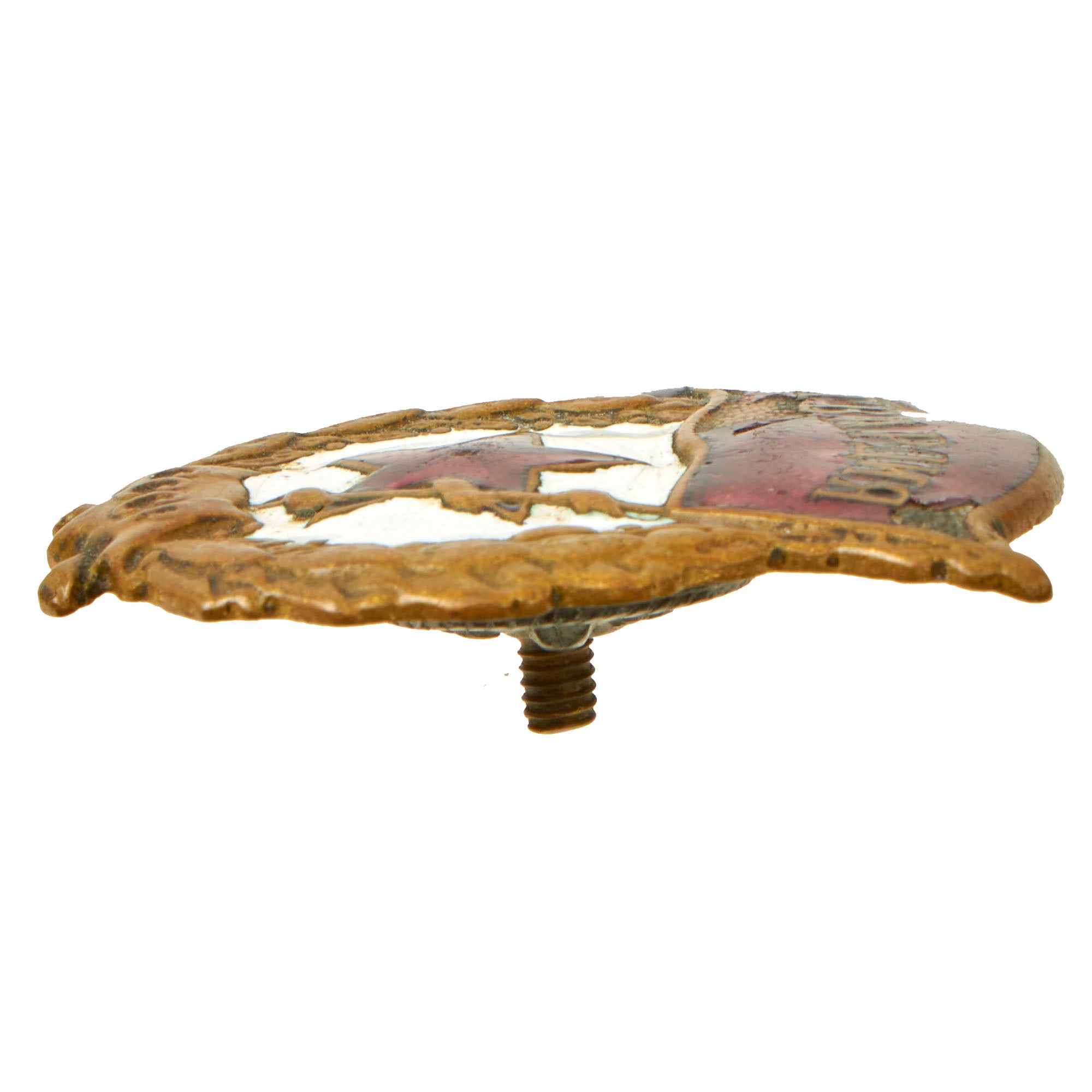 Original Item. Only One Available. This is a great example of a Soviet Guards Badge from World War II. The only flaw with this piece is the loss of enamel on the flag as shown. The badge retains its original backing which is maker marked. The badge measures roughly 2¼ x 1⅝”.