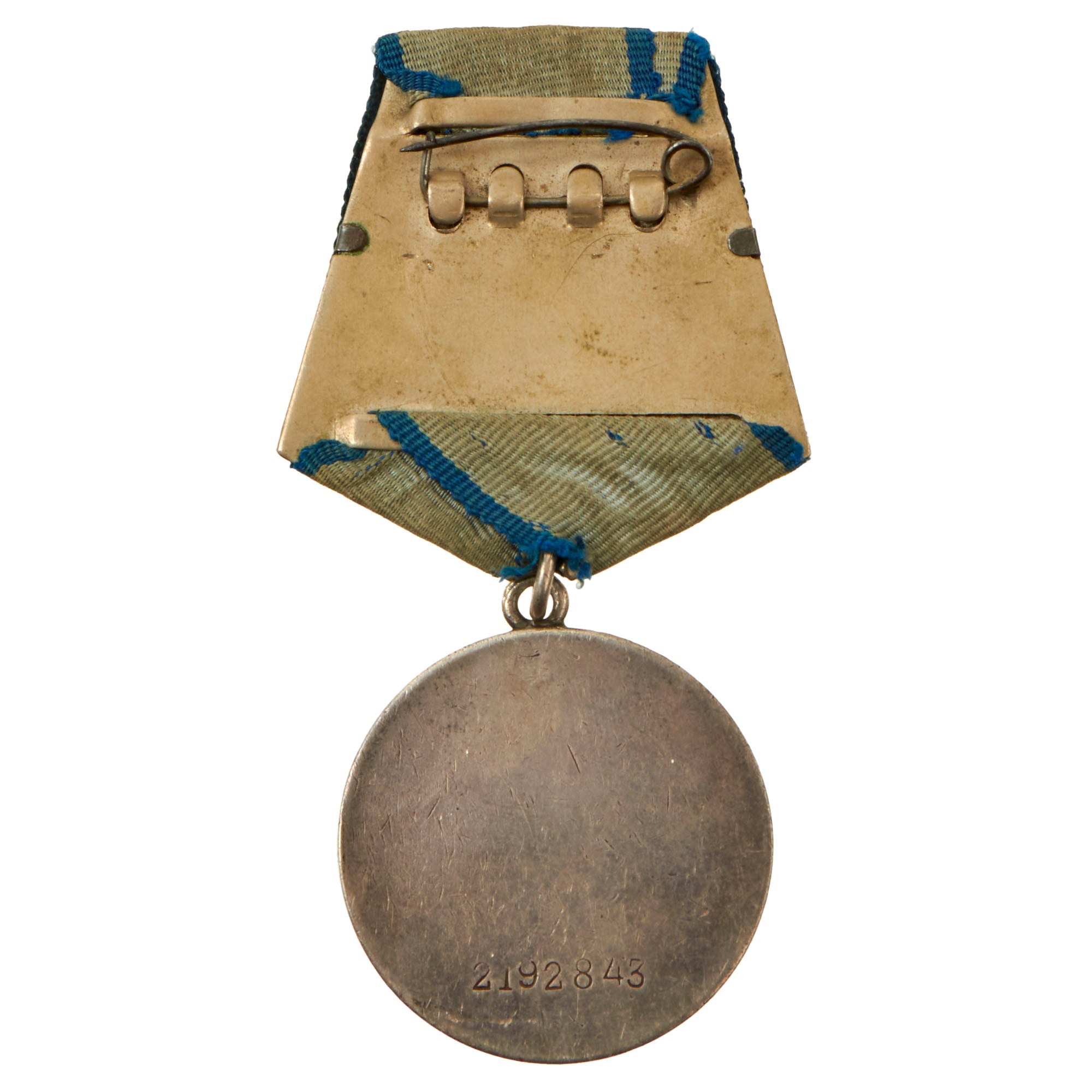 This is a good service-worn example marked on the back with award number 2192843, which denotes a 1945-award. The first three Medals for Courage were awarded only three days later to three border guards for acts of bravery during the Battle of Lake Khasan. More than 4.2 million were awarded during the Great Patriotic War. From its creation in 1938 to the fall of the Soviet Union in 1991, 4,569,893 medals were awarded, many posthumously.