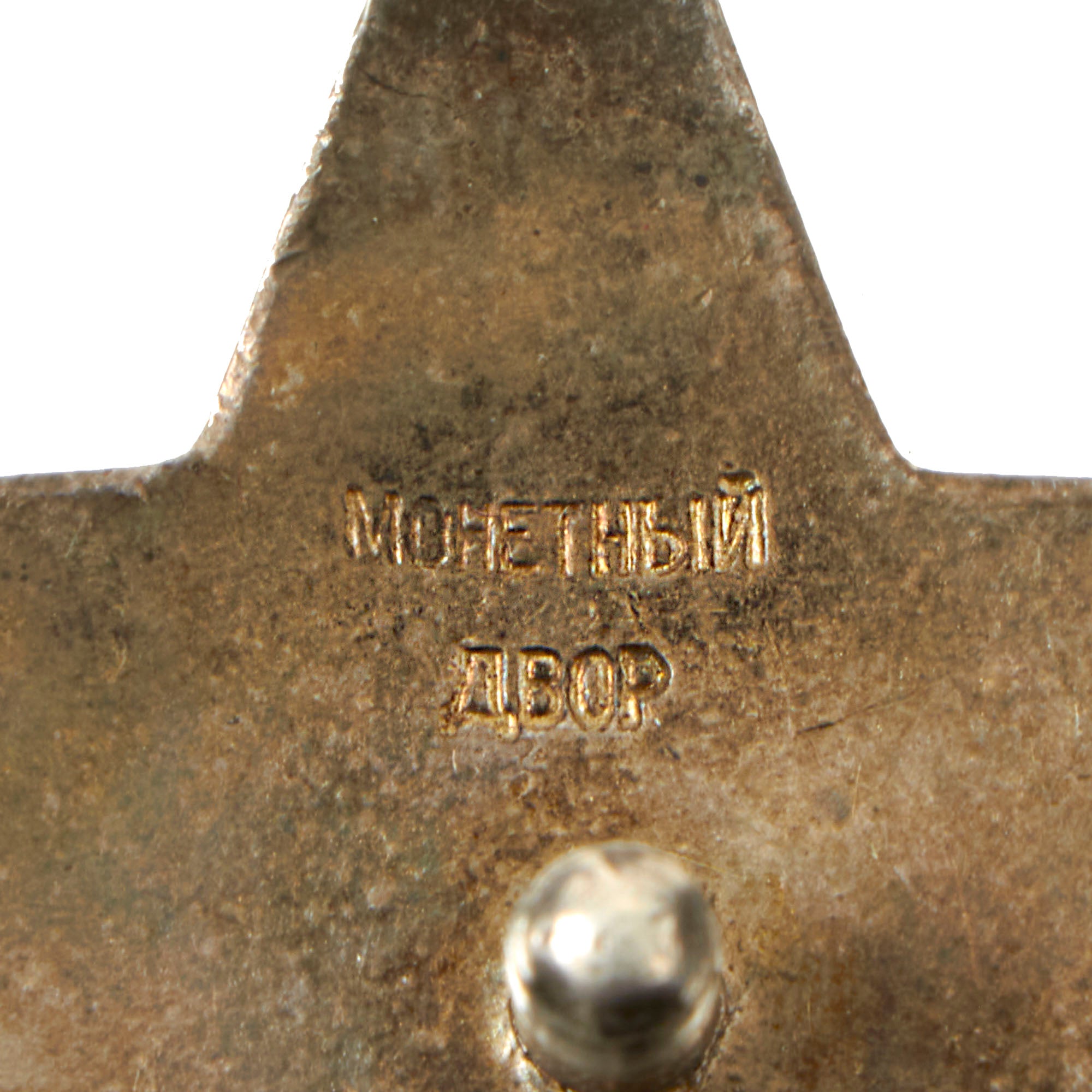 Original Item. Only One Available. This is a great WWII Russian Order of the Red Star Medal. This example is vaulted with a screwback and a great maker’s mark stamped on the reverse. The serial number on this example is 588832. The badge is in great condition overall with almost no flaws.