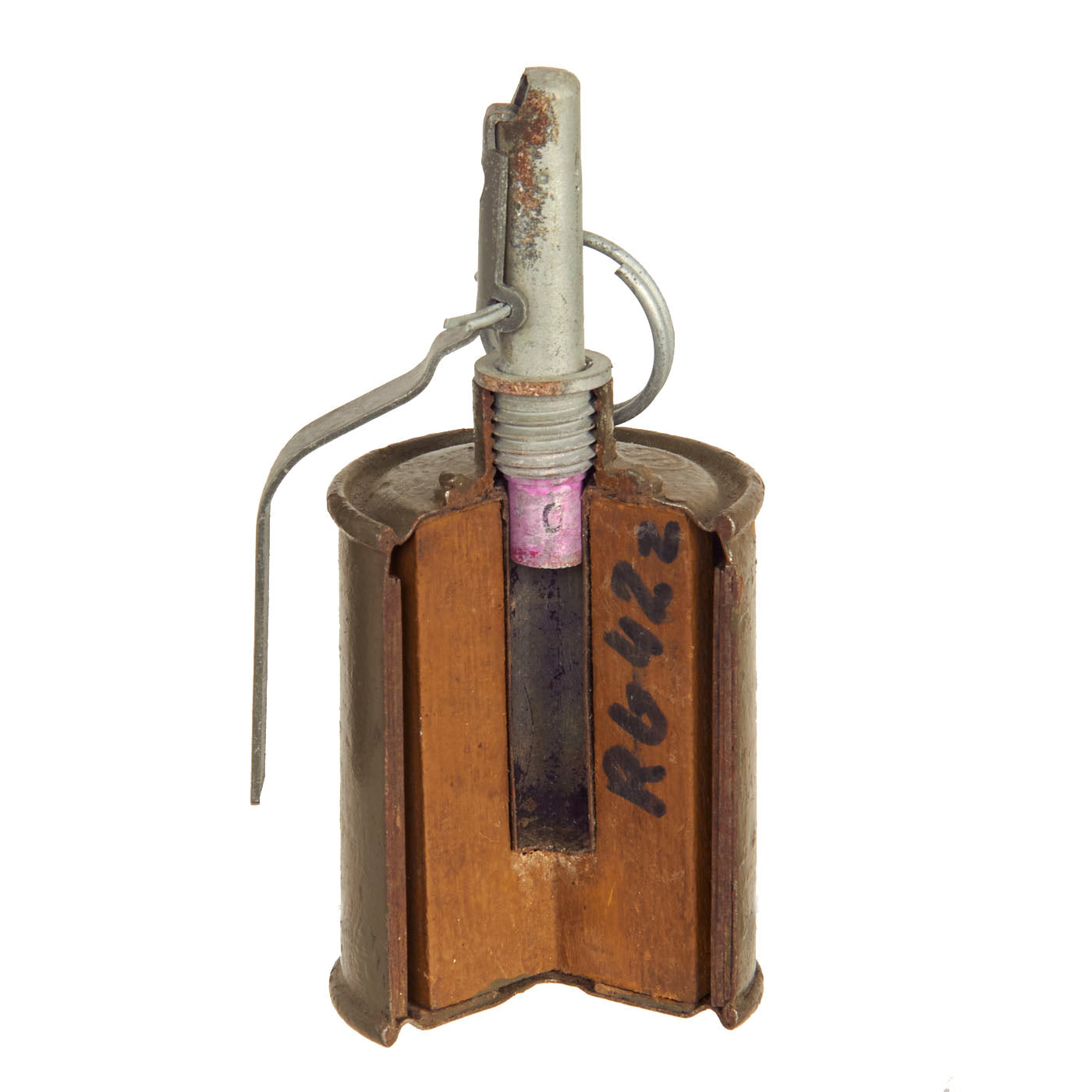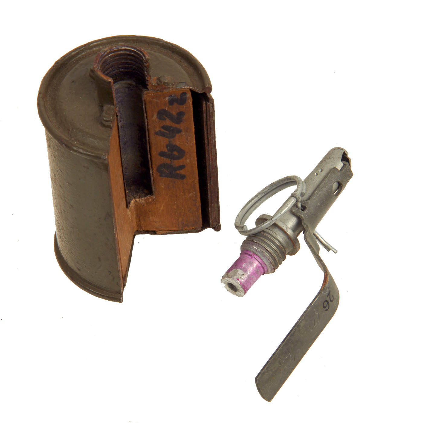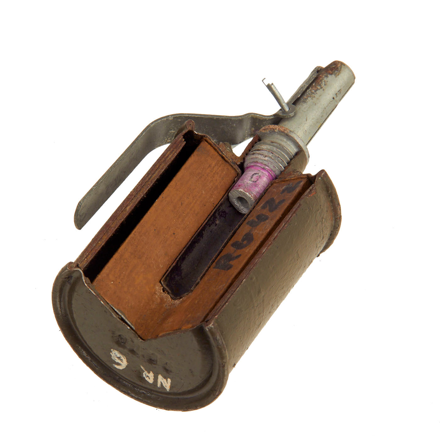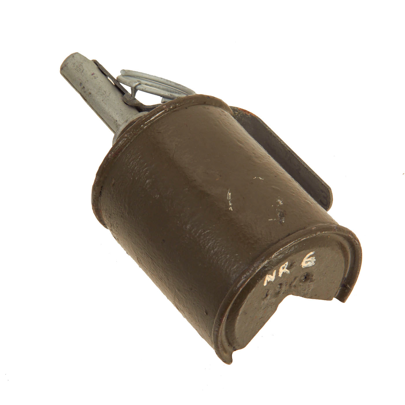 Original Items: Very Few Available. All training grenades are completely inert and are void of any explosive content. These were designed and intended for classroom use and not for field use. They are all complete with spoon, original pin, guide plate and primer base. They are all in compliance with the current BATF standards.