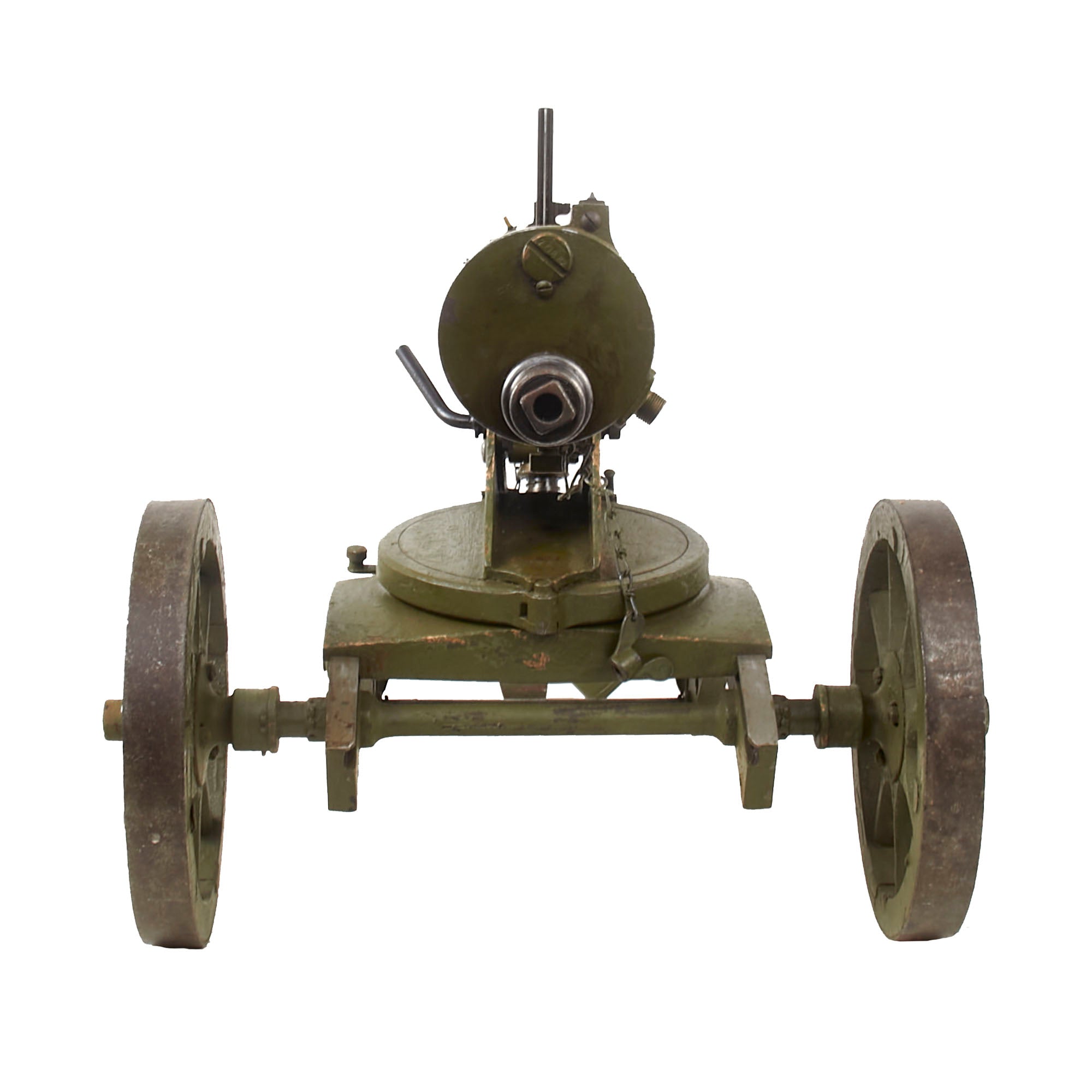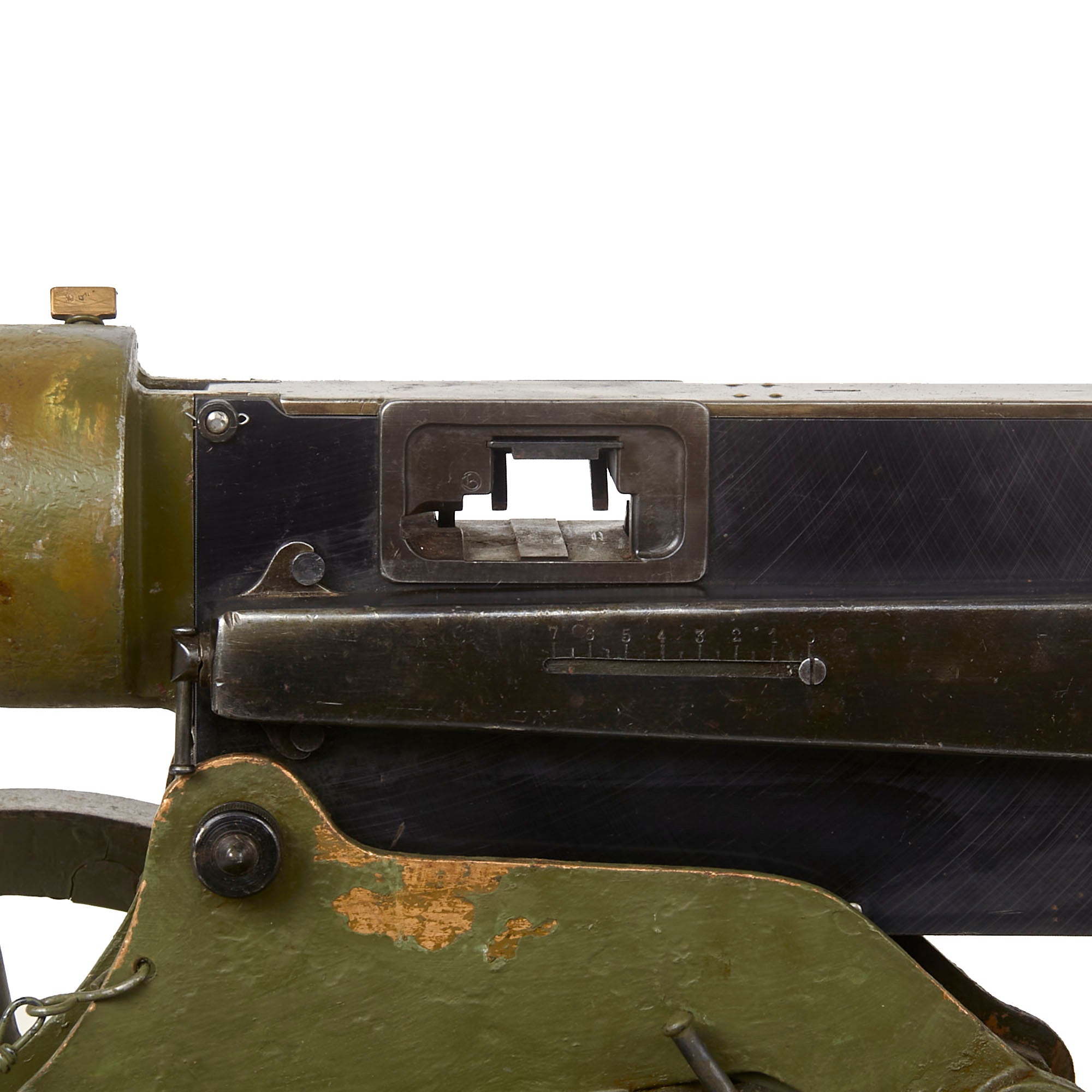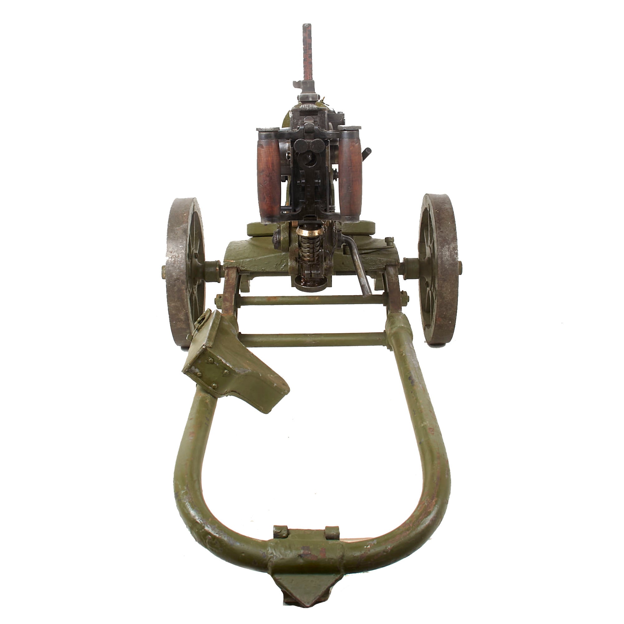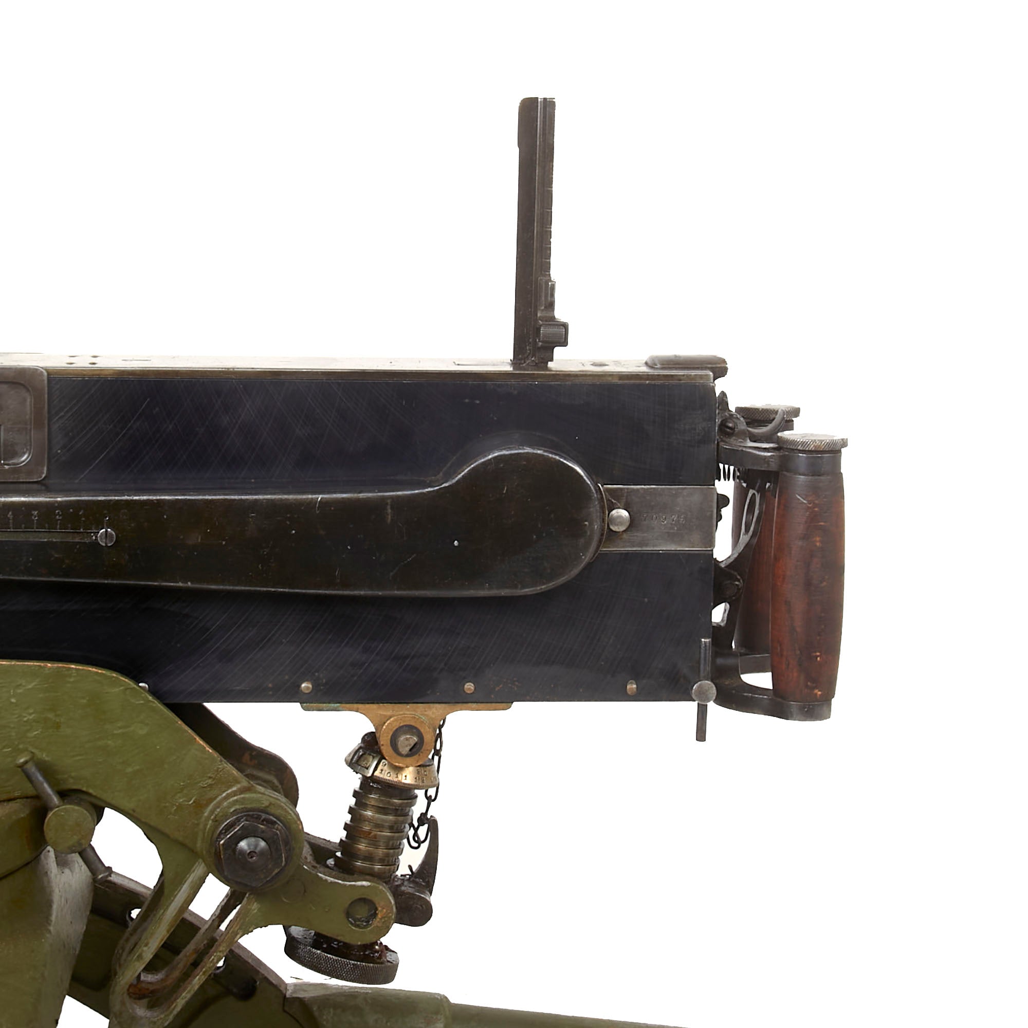 Original Item: Only One Available. One of the first we have had in some time! This fantastic original WWII issue Russian M-1910 Maxim Display Machine Gun was built to BATF specifications using an all original Russian Maxim parts sets assembled on a BATF compliant inert non-firing dummy receiver. Both the left and right side plate are BATF compliant and completely inert, newly made from steel several times as thick as the originals, which makes it impossible to insert unaltered original components. They lack any type of functional cams or protrusions, and as they are new made inert pieces this display "non-gun" is totally legal to own without any federal restrictions or license as it is no longer legally considered a firearm.