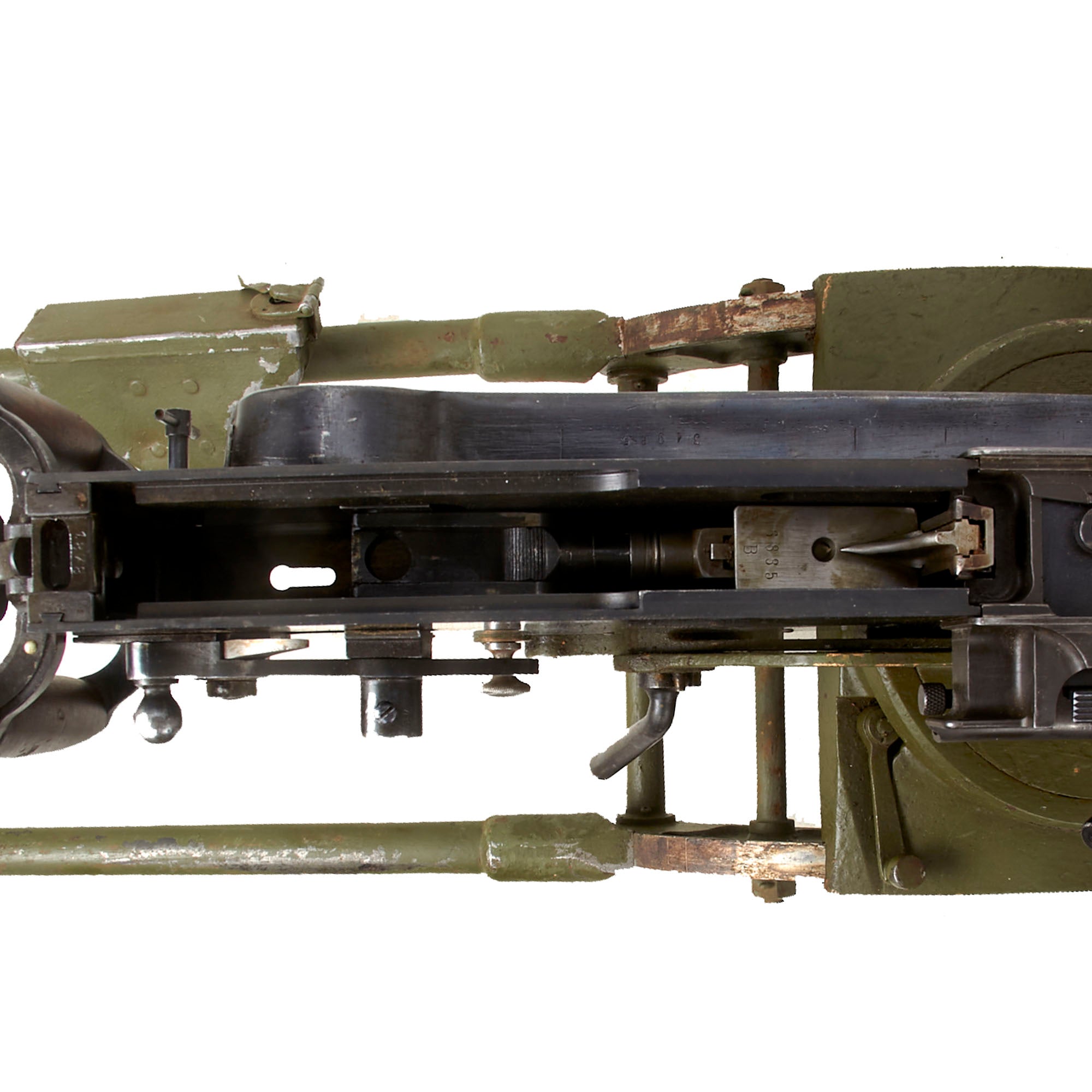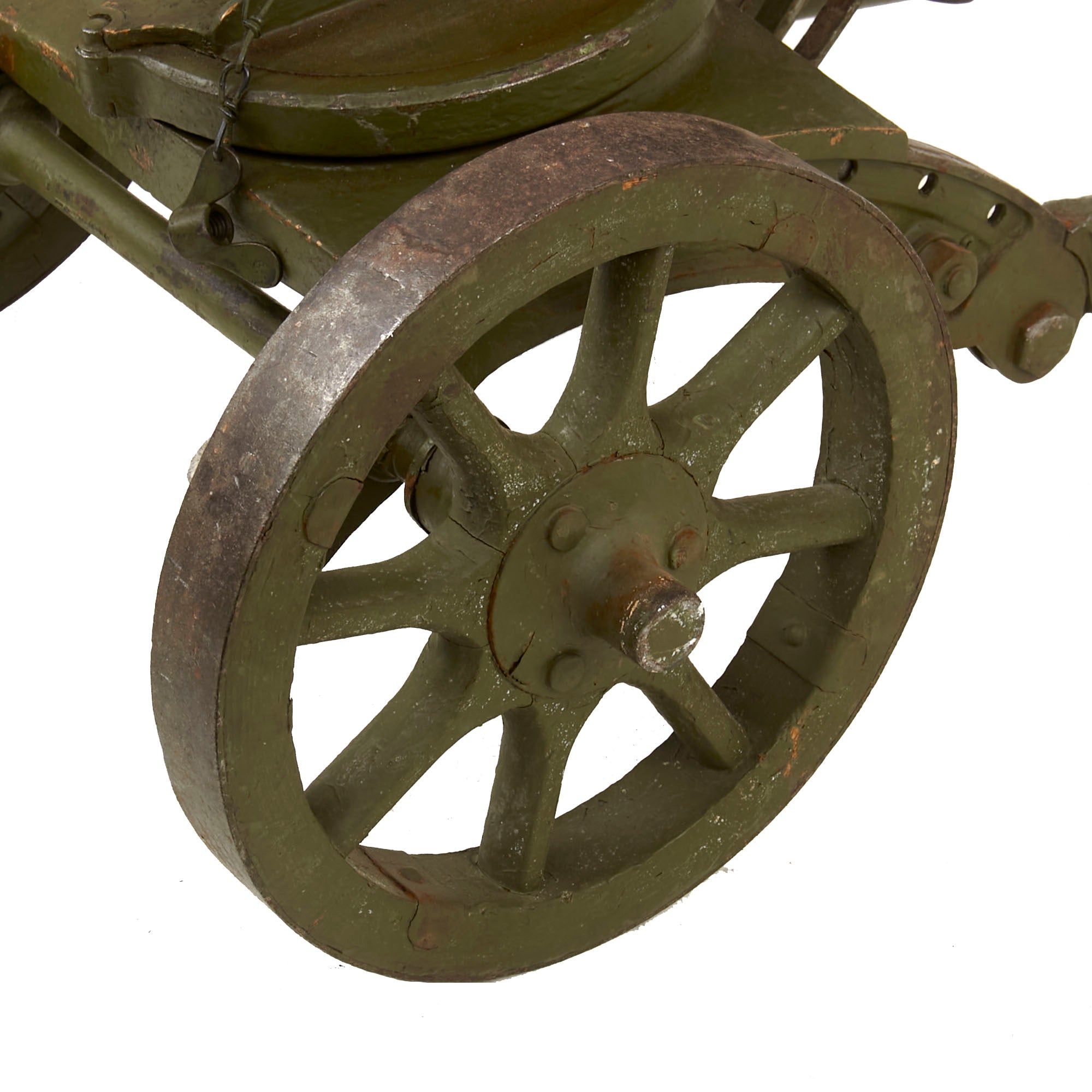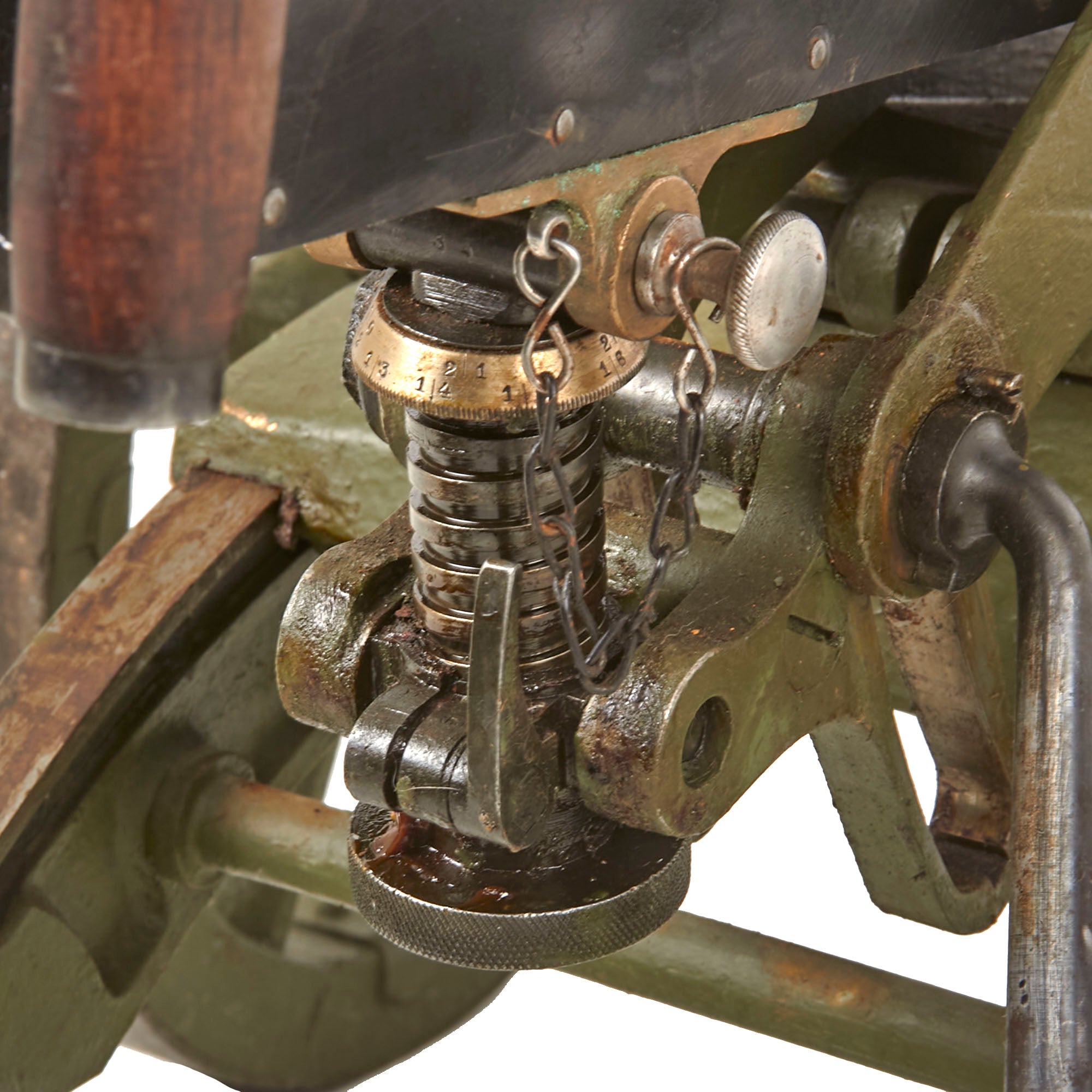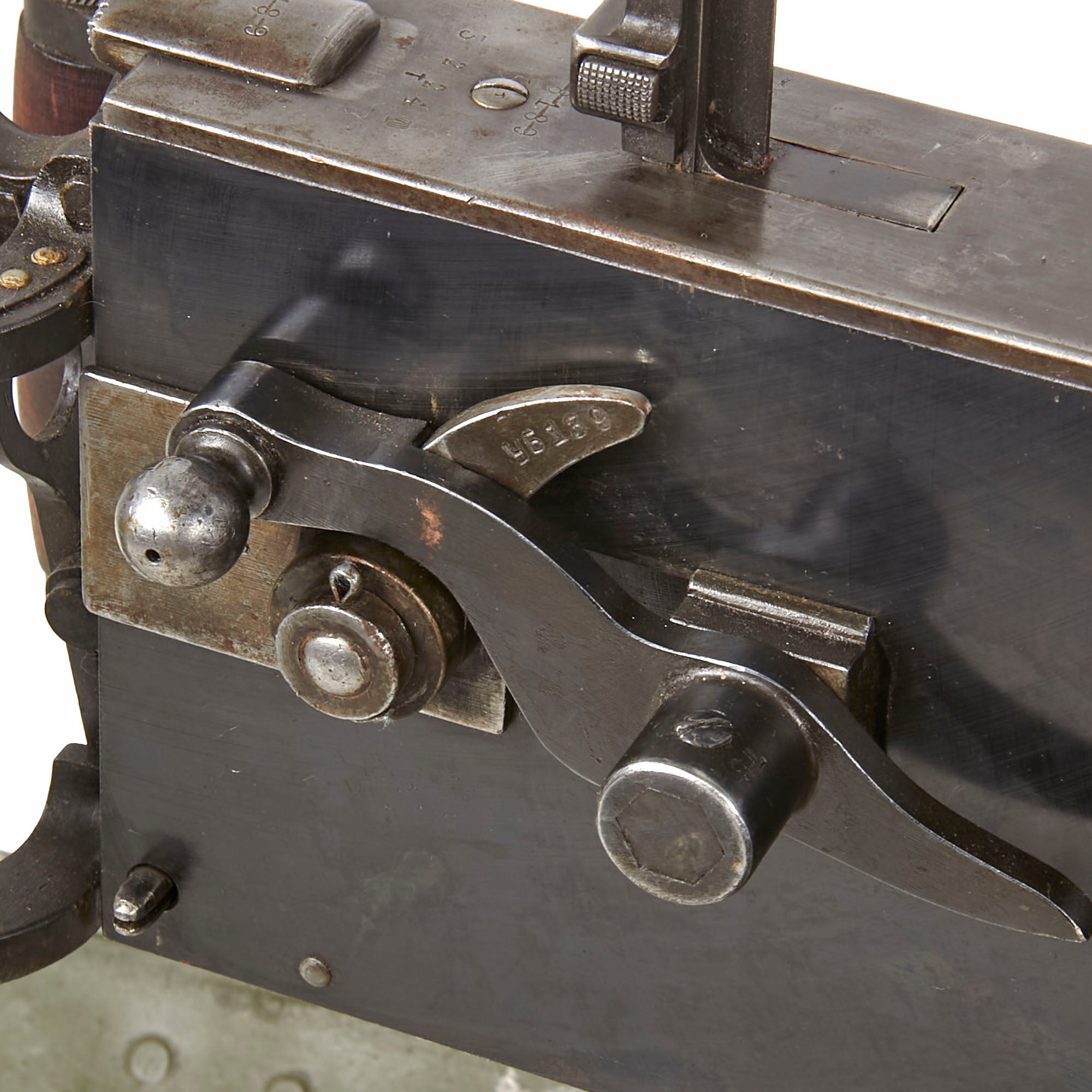Original Item: Only One Available. One of the first we have had in some time! This fantastic original WWII issue Russian M-1910 Maxim Display Machine Gun was built to BATF specifications using an all original Russian Maxim parts sets assembled on a BATF compliant inert non-firing dummy receiver. Both the left and right side plate are BATF compliant and completely inert, newly made from steel several times as thick as the originals, which makes it impossible to insert unaltered original components. They lack any type of functional cams or protrusions, and as they are new made inert pieces this display "non-gun" is totally legal to own without any federal restrictions or license as it is no longer legally considered a firearm.