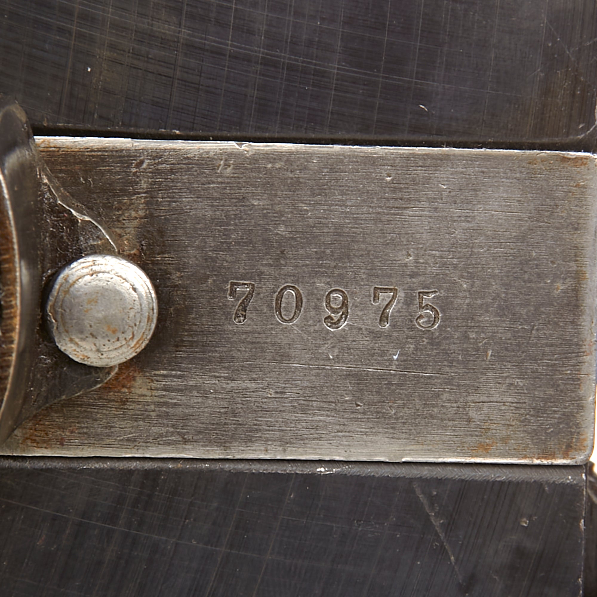 Condition is really great, showing a lovely patina of age. We did not notice any major condition issues, and the top cover can be open and closed easily. The feed block still has the original latches and feed pawls, so a belt could be attached if desired.