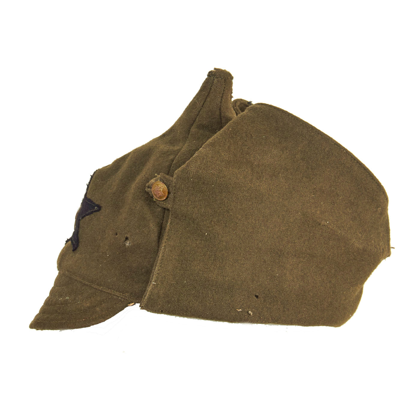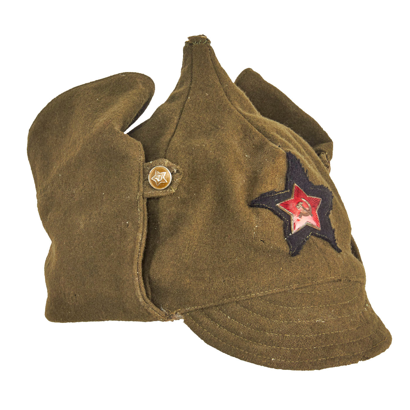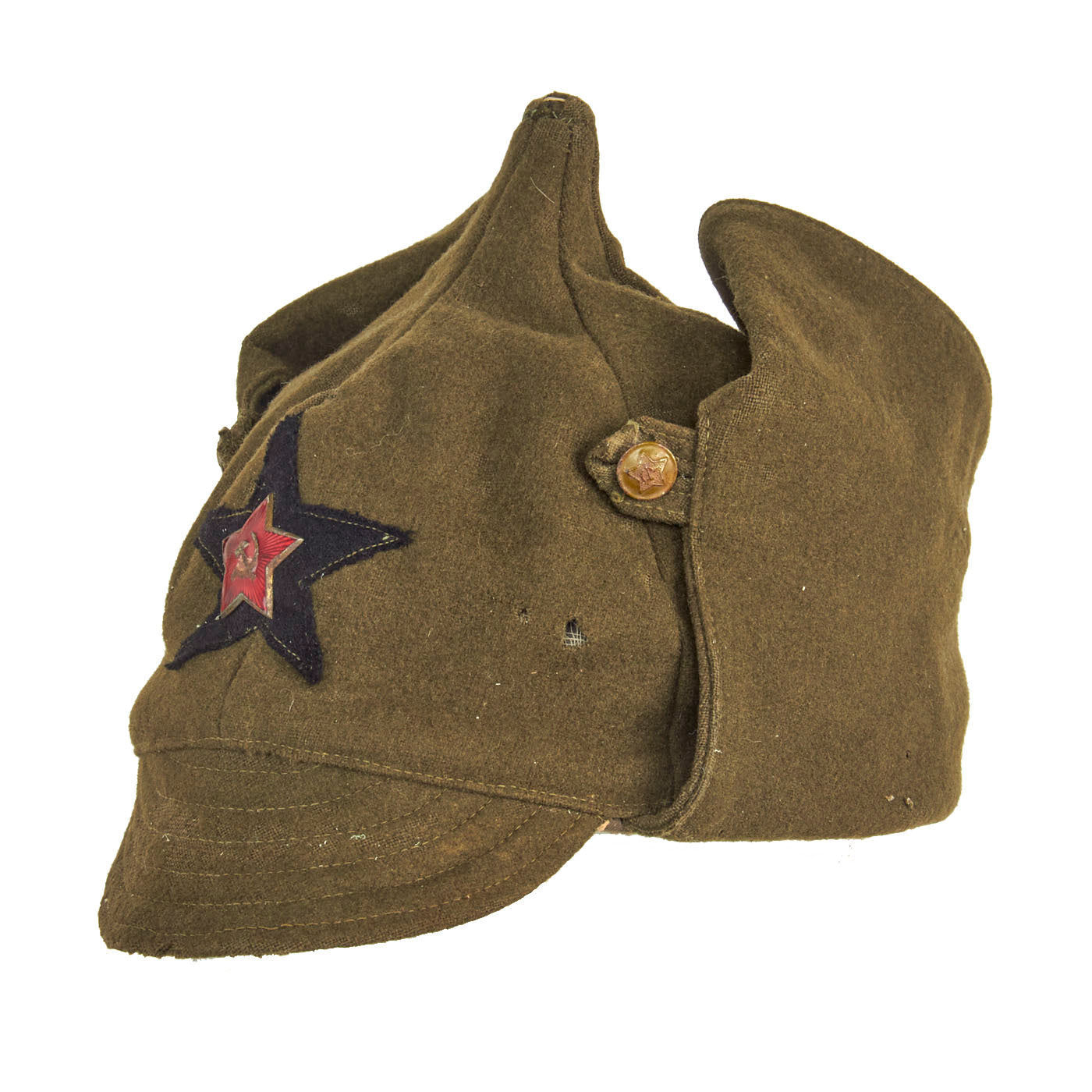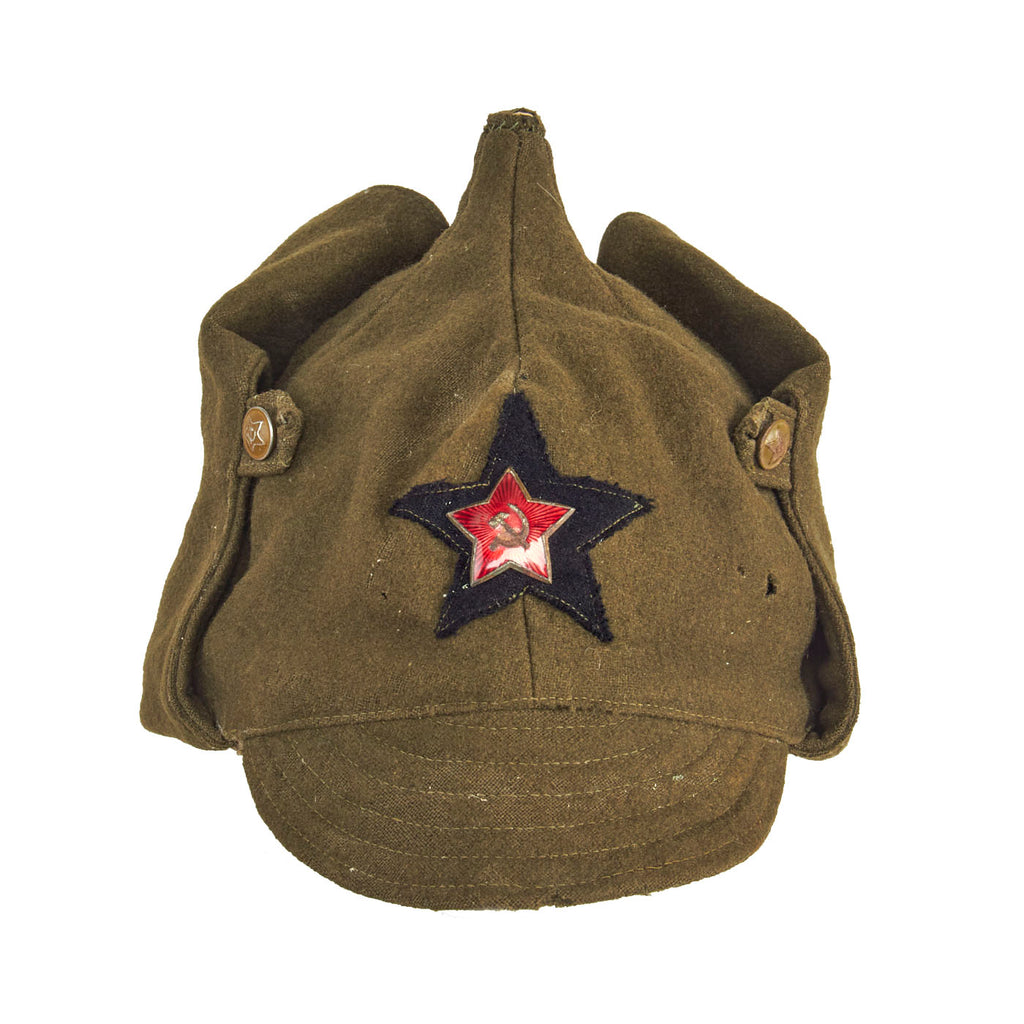 Original Item: Only One Available. A budenovka is a distinctive type of hat, an archetypal part of the Communist military uniforms of the Russian Civil War (1917-1922) and later conflicts. Its official name was the "broadcloth helmet" (шлем суконный). Named after Red cavalry commander Semyon Budyonny, it was also known as the "frunzenka" after the Commissar Mikhail Frunze. It is a soft, woolen hat that covers the ears and neck. The cap features a peak and folded ear flaps that can be buttoned under the chin.