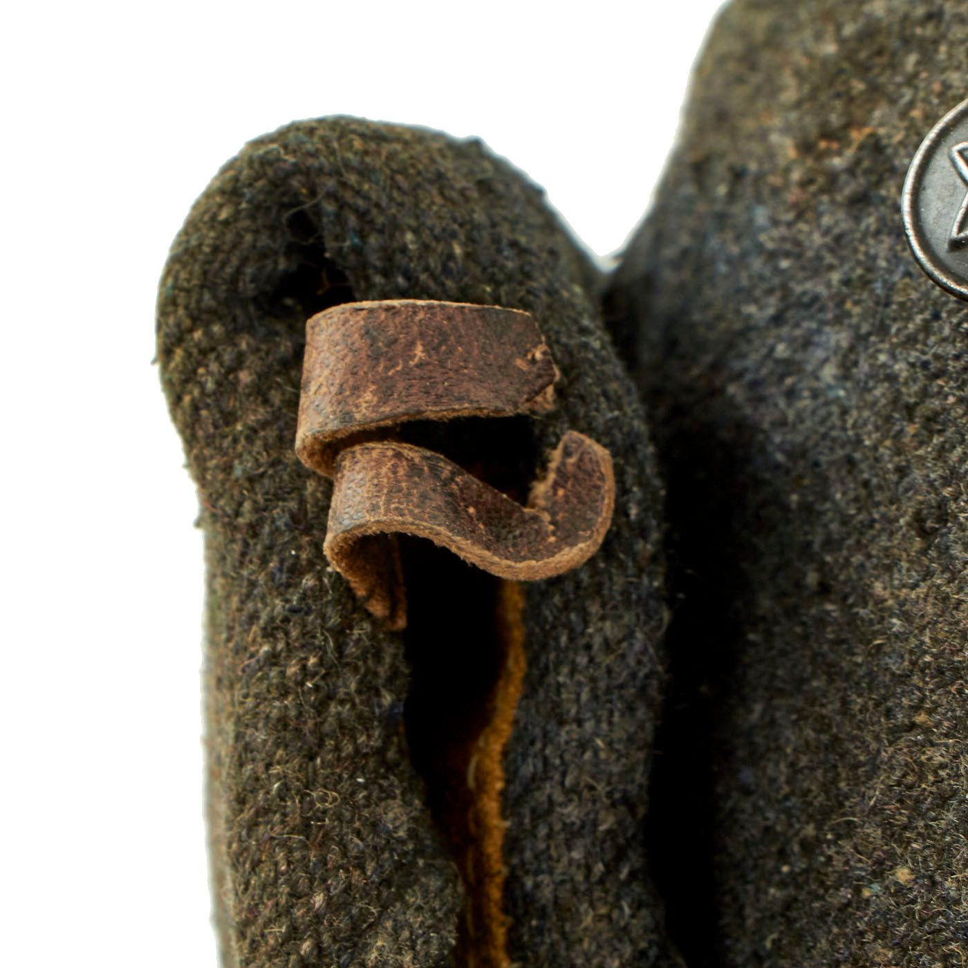 This is a very nice example of a WWII Issue Model 27 Budenovka Winter Cap, which is in very nice, service used condition. The exterior is made from dark gray wool, and it has a small fabric visor on the front. It has a raspberry colored star sewn on the front, which has a Soviet Red Star pinned in place. The star shows intact enamel and is made of non-ferrous metal.