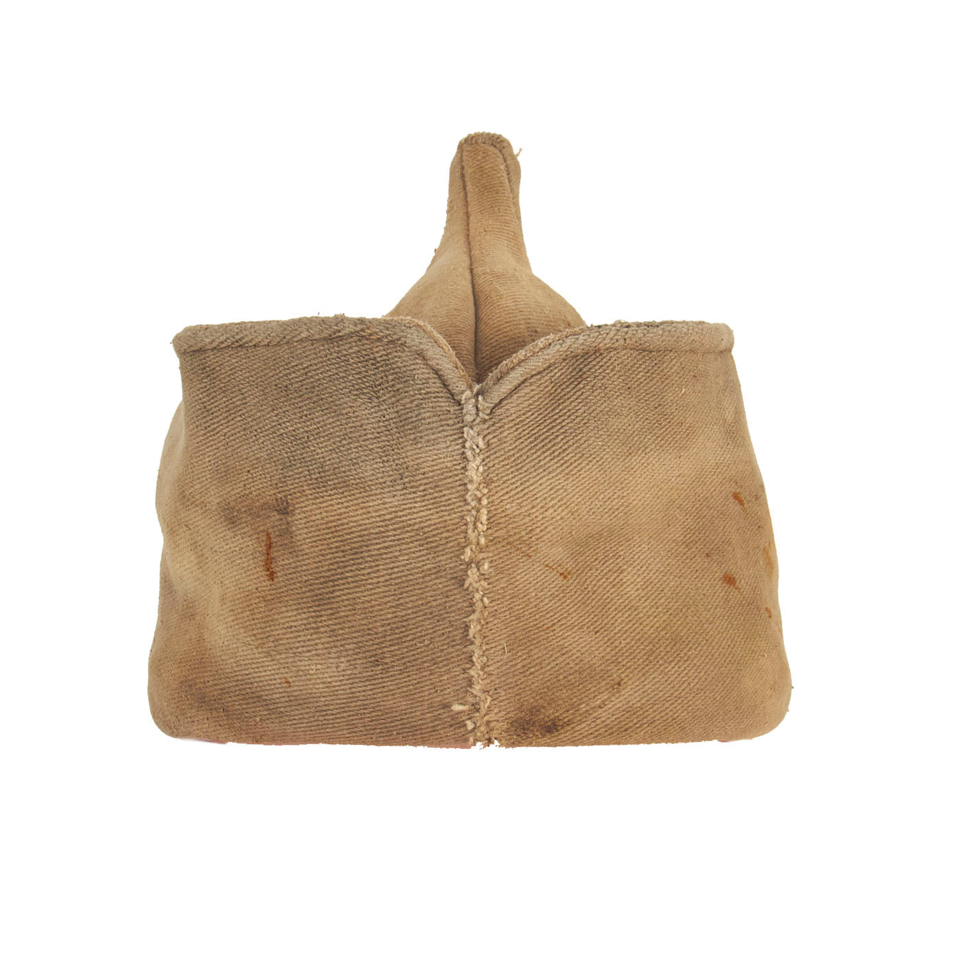 Original Item: Only One Available. A budenovka is a distinctive type of hat, an archetypal part of the Communist military uniforms of the Russian Civil War (1917-1922) and later conflicts. Its official name was the "broadcloth helmet" (шлем суконный). Named after Red cavalry commander Semyon Budyonny, it was also known as the "frunzenka" after the Commissar Mikhail Frunze. It is a soft, woolen hat that covers the ears and neck. The cap features a peak and folded ear flaps that can be buttoned under the chin.