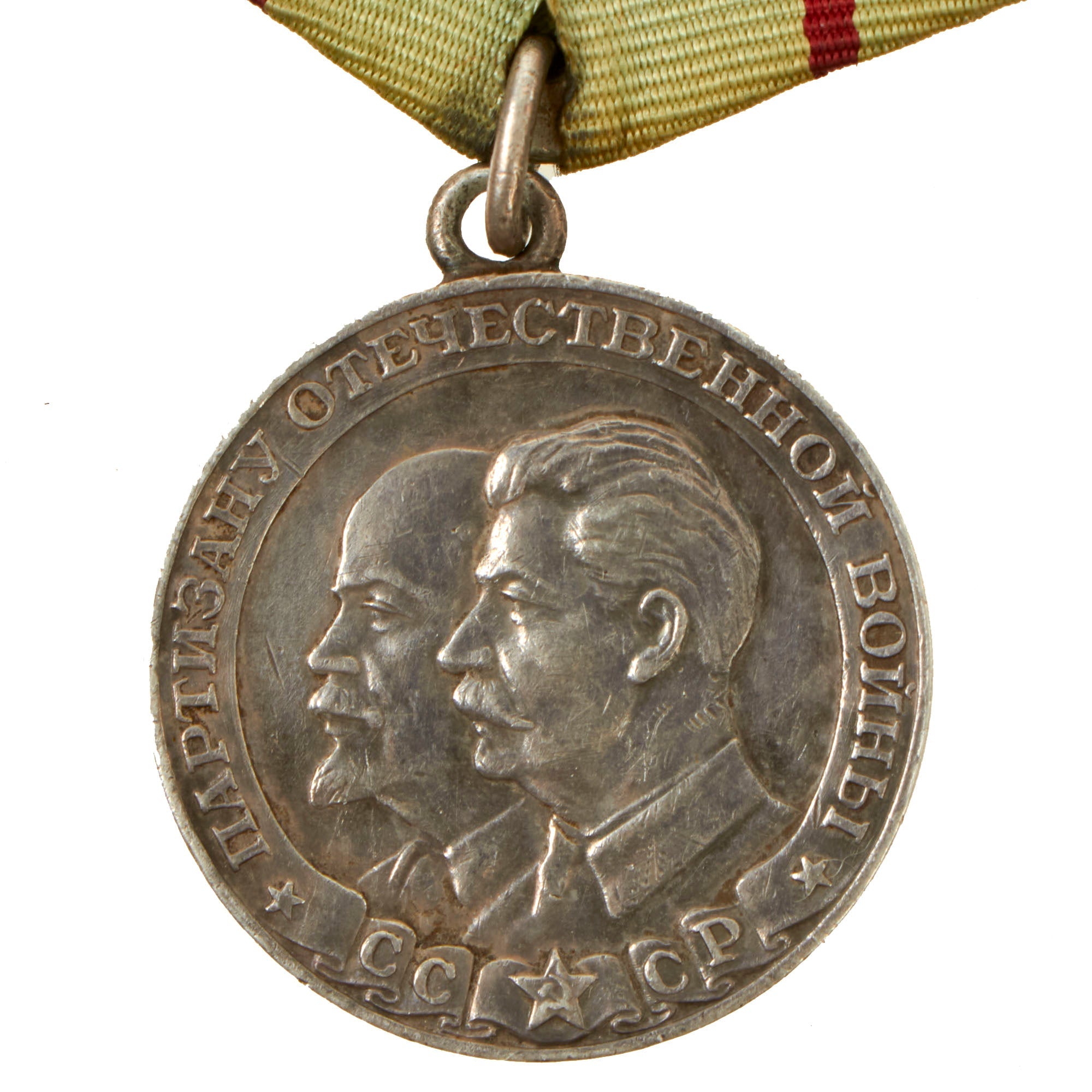 Original Item. Only One Available. The Medal “To a Partisan of the Patriotic War” (Russian: Медаль Партизану Отечественной войны) was a World War II Soviet award established in two classes. This was done on February 2, 1943, by decree of the Supreme Soviet of the USSR. It recognized the courage of the partisans in their struggle to free the Soviet Motherland behind enemy lines. Its statute was amended by a further decree of the Supreme Soviet of the USSR in 1947.