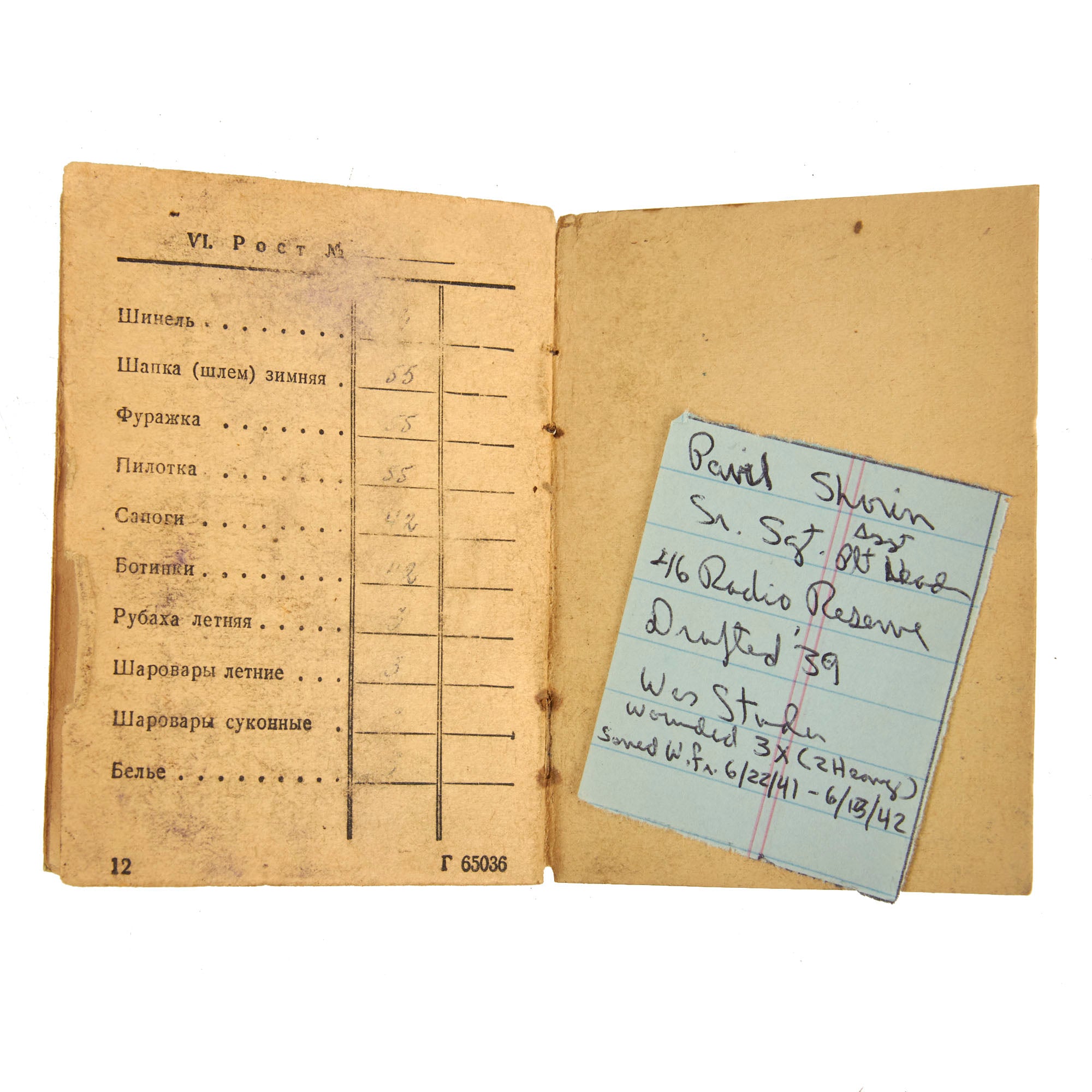 The items in this lot range from a beautiful brown leather shoulder holster with straps, wire cutters, various pouches, an identification booklet, leather belt, messkit items, newspaper clippings and more. This is a fantastic “starter” kit for the young collection looking to start of Soviet display.