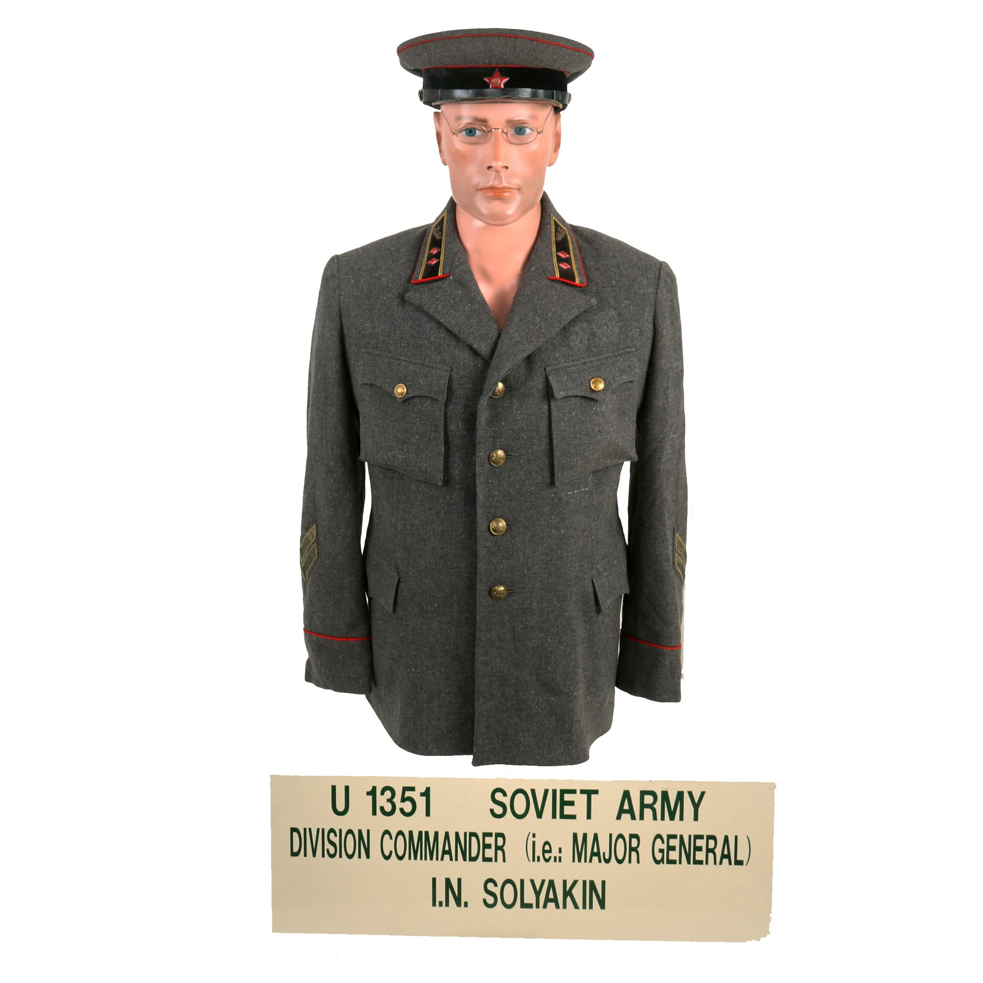 Original Item: Only One Available. Now this is an incredible, attributed uniform set for Soviet Armored Troops Major General Yegor Nikolaevich Solyankin, Commander of the 2nd Tank Division. The uniform set itself is in wonderful condition and displays quite well, especially with the museum sign courtesy of the A.A.F. Tank Museum! Yegor Nikolaevich Solyankin was a Red Army major general. Solyankin led the 2nd Tank Division during the Battle of Raseiniai, a Soviet counterattack after the German invasion of the Soviet Union. He was killed in action during the defeat of his division.
