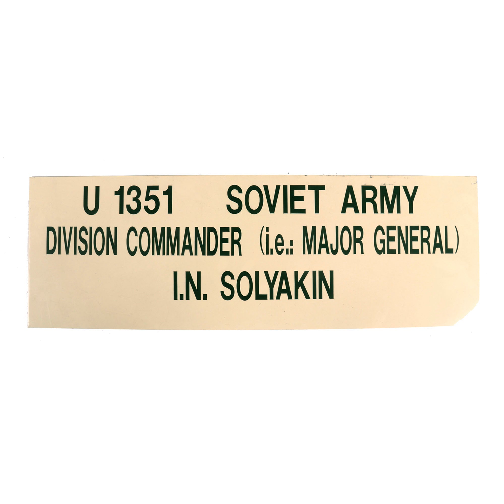 Both the jacket and the peaked visor is in fantastic condition as they would not have been worn much. There is no significant damage present and the tunic itself is quite striking with all original period applied insignia. The tunic is not named anywhere to him and as word came with it from the Tank Museum, they purchased it as belonging to “I.N. Solyankin” which was an obvious spelling mistake. Unfortunately this mistake was not corrected when the museum had the sign made but with carefulness, some mailbox numbers from a hardware store could easily correct it!
