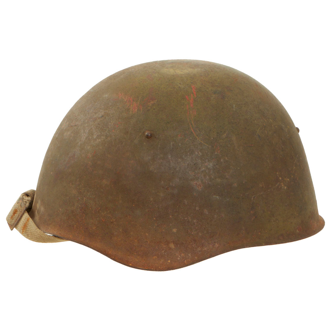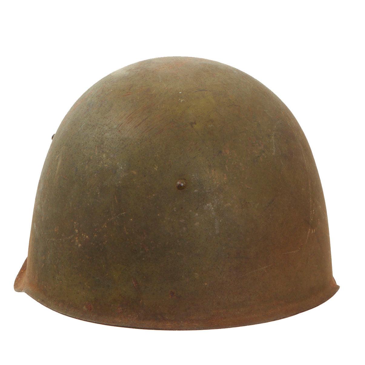Original Item: Only One Available. This is something that is rarely seen! This is a genuine Soviet Russian WWII SSh-39 Steel Helmet, sometimes known as the M39, but properly termed the Stal'noy Shlem (Steel Helmet) Model 39. This helmet model superseded the previous SSh-36 (aka “Gladiator Helmet”), which was an antiquated design by WWII Standards. The SSh-39 was produced only from 1939 until 1942, when it was replaced by the SSh-40. With an incredibly short span of production, and the high numbers of material lost on the Eastern Front during WWII, this is an INCREDIBLY rare helmet to find on the market today, especially in the western hemisphere!
