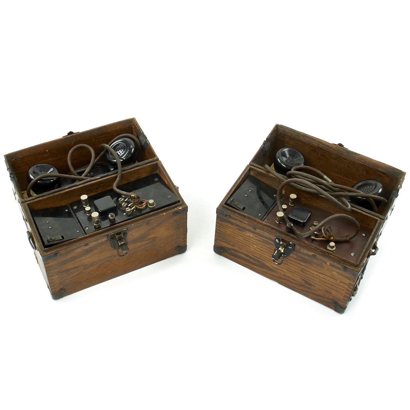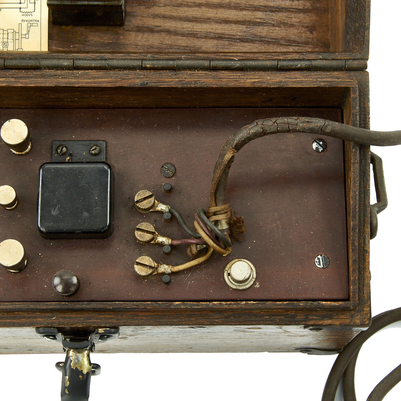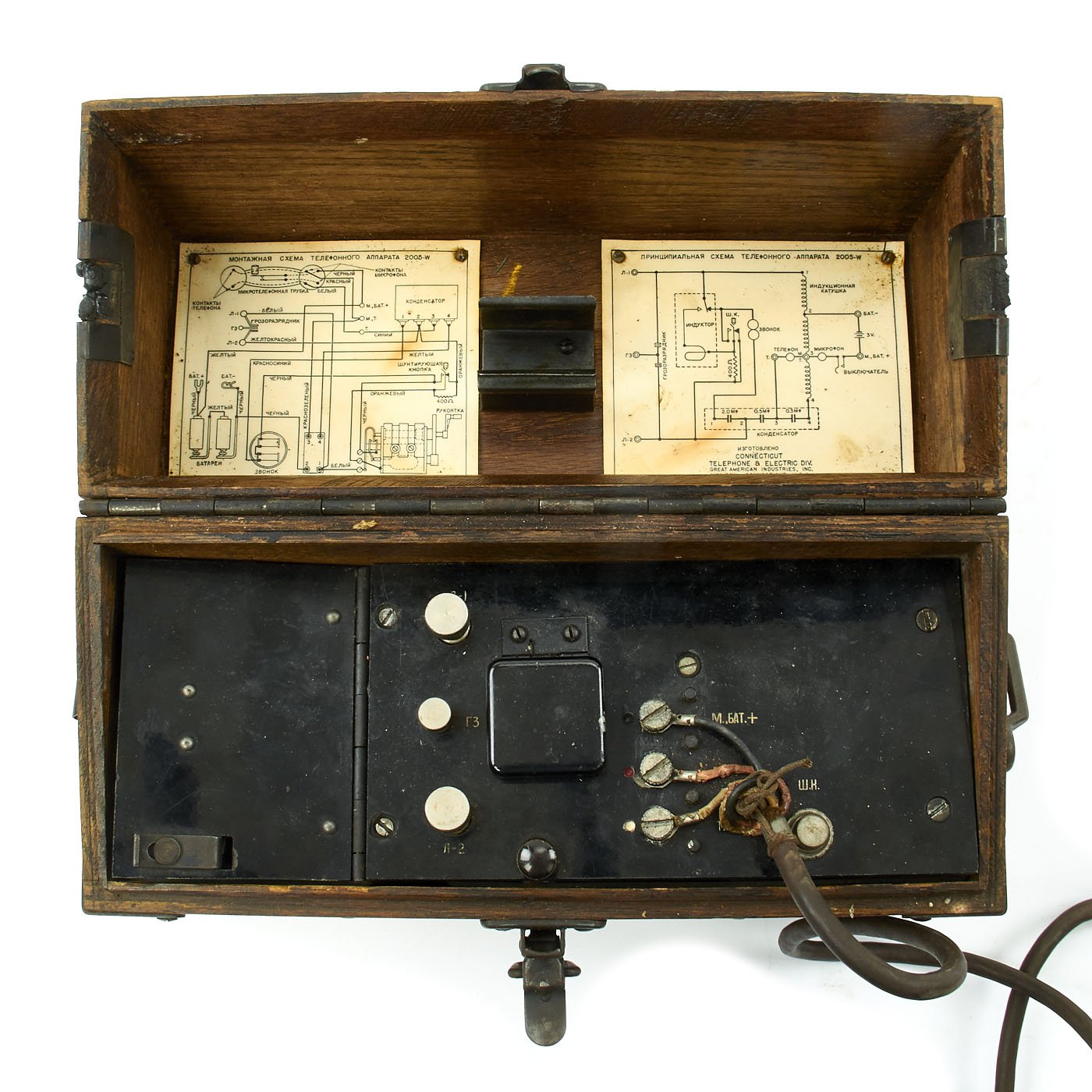 Original Items: Only One Set Available. These are the little known model 2005-W field telephone which were sent through the Lend Lease program to the Soviet Union during World War Two. The much more well known EE-8 model telephones were also sent through this program.