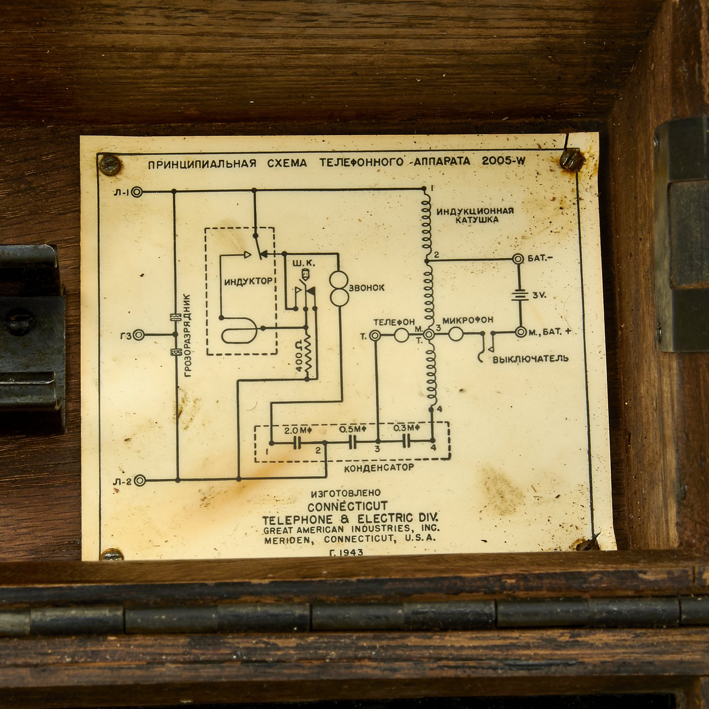 The model 2005-W is hybrid of the Soviet wartime era wood cased TAI-43 phones, with American designs internally. These were made by Connecticut telephone and electric. This pair came out of an East Coast collection, so we believe them to be samples or display models from the manufacturer, as the entirety of the contract seems to have been sent to the USSR never to return, unlike the EE-8s that flood the market.