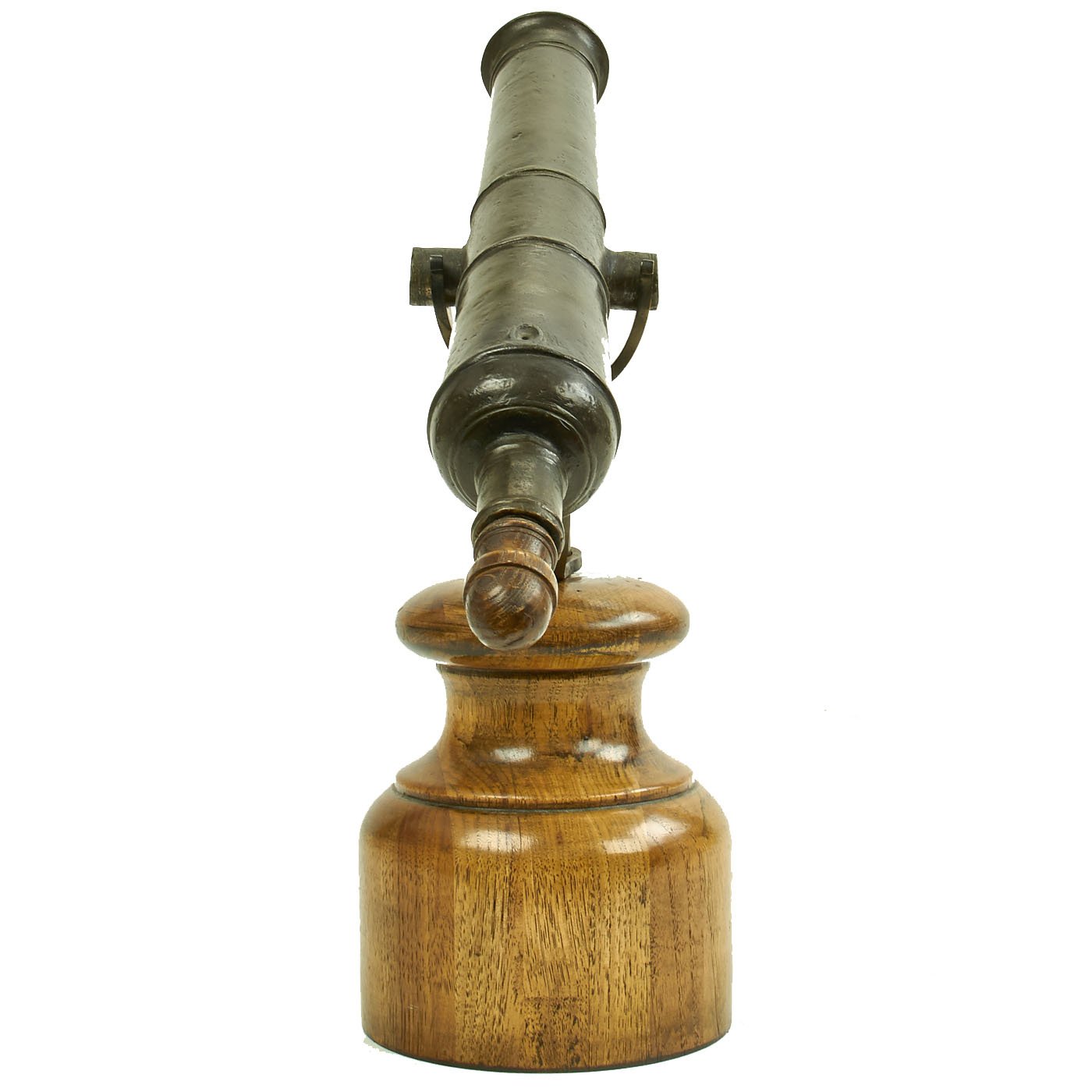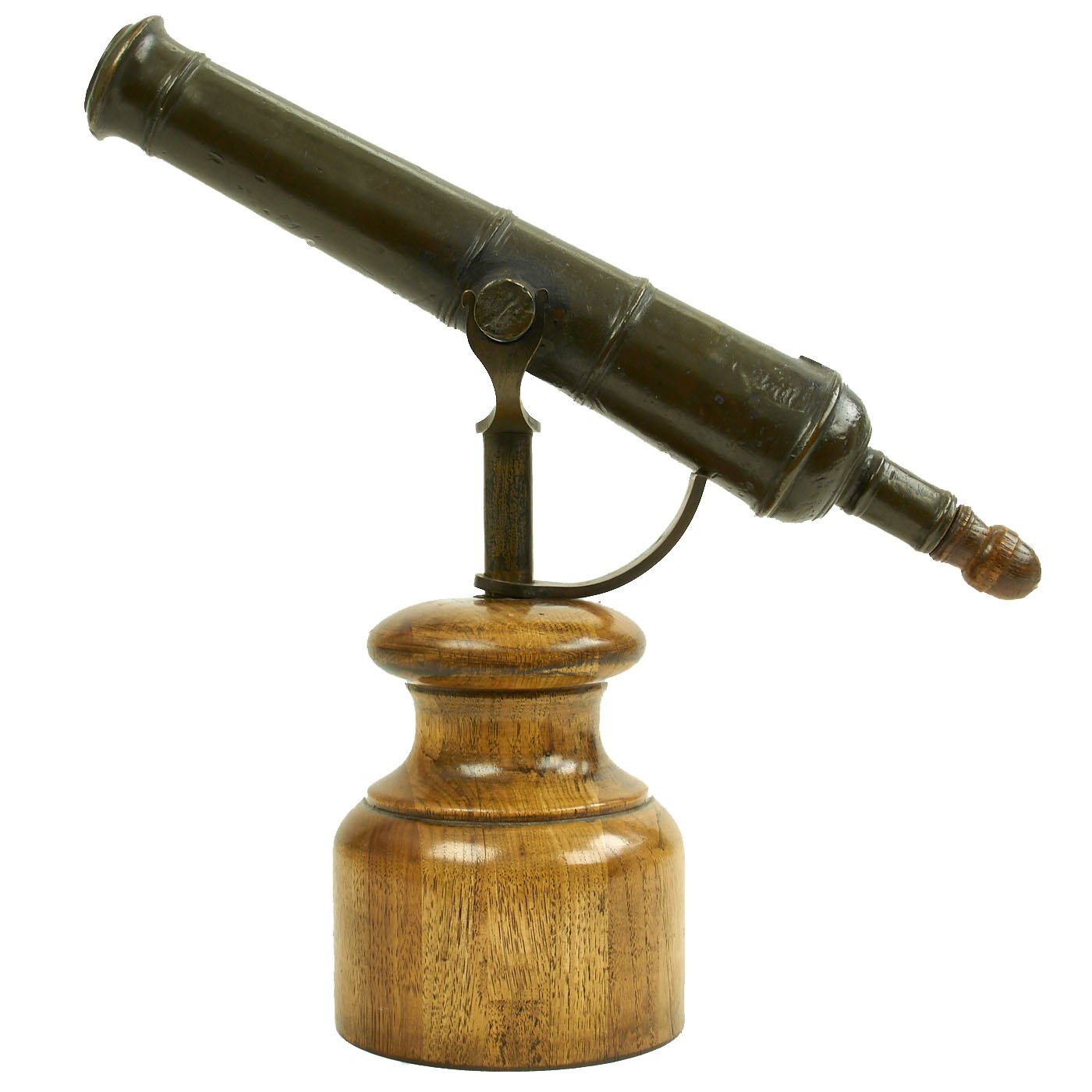 Original Item: One-of-a-kind. This is truly romantic! It is not very large but packs a dreadful punch with a 1 1/2" bore and a barrel measuring just 18 3/4" in length, it stands just 15" tall when barrel is horizontal and 18" tall with barrel fully elevated. At only 18 lbs in weight, this is ideal for an office desk.