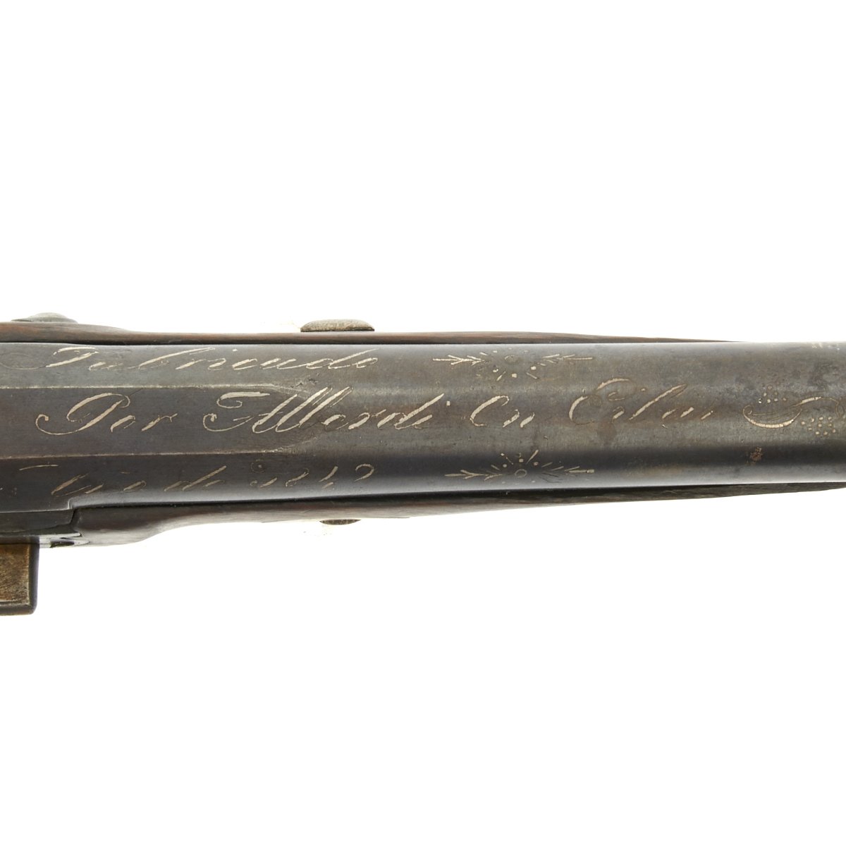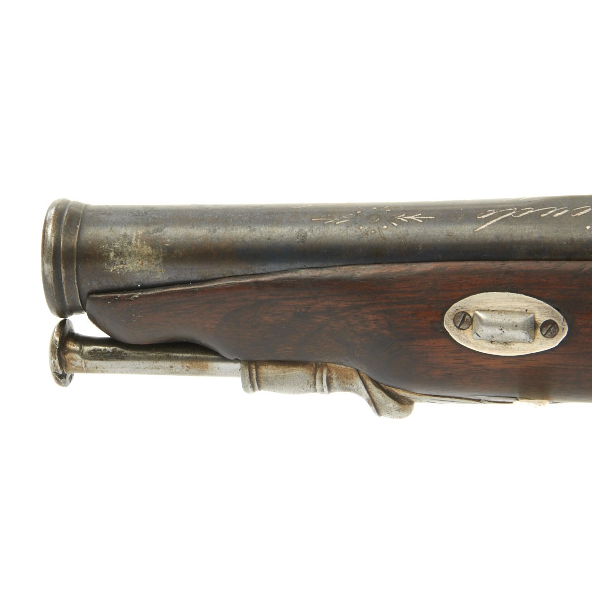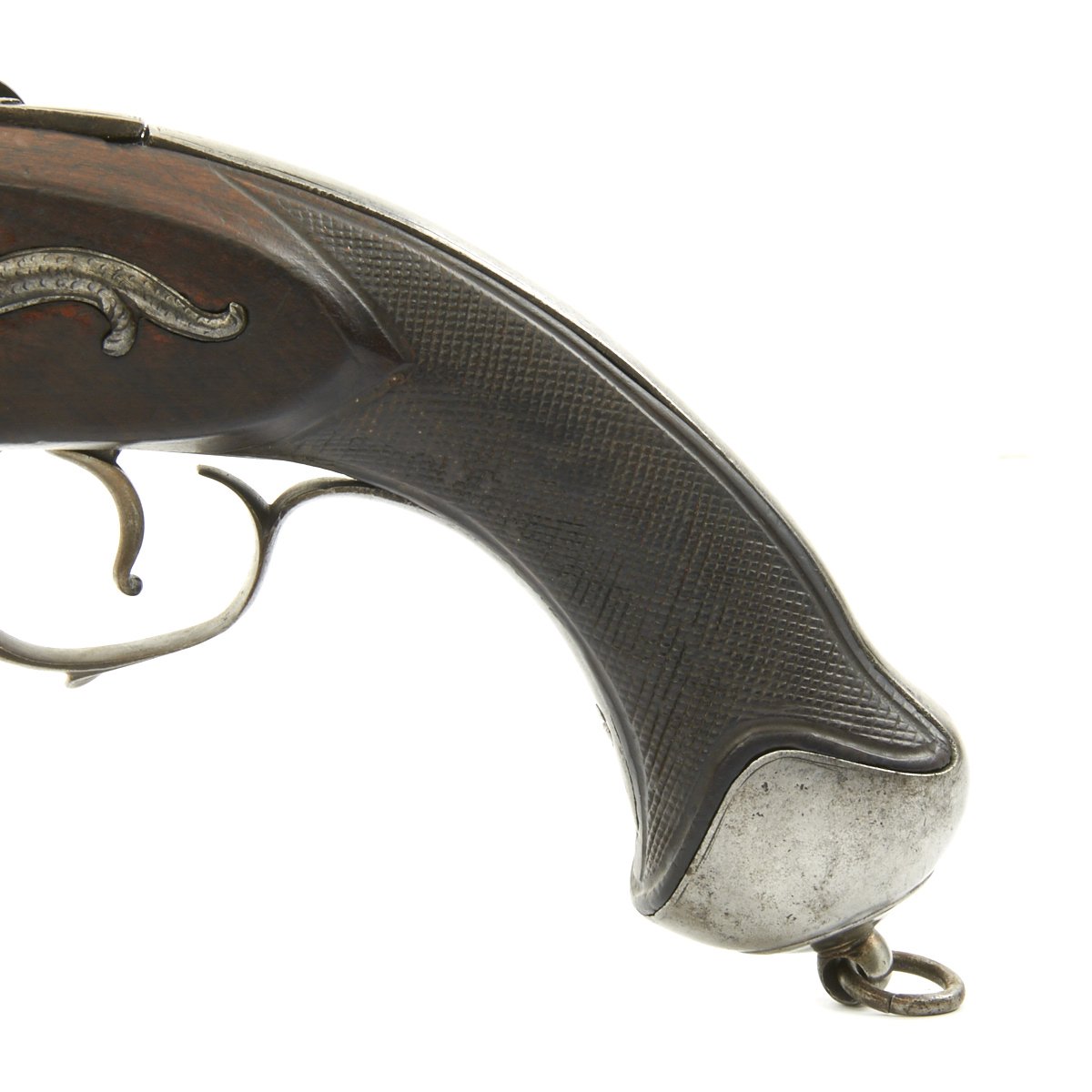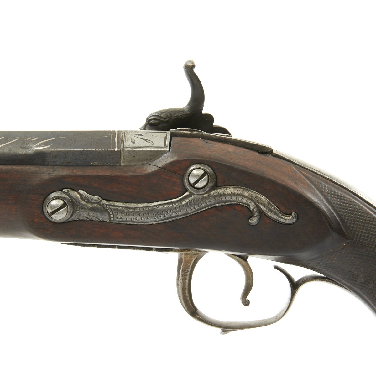 Original Item: One of a Kind. This is just in great condition, showing very very little use. The 7" octagonal barrel becomes round toward the muzzle bears the Maker's Cartouche on the breech, which appears to read :- AL / BFR / DY is also signed in silver inlay script on the barrel. We have not been able to locate this maker, but there were many during the time. The writing is unfortunately very hard to make out, but seems to say: