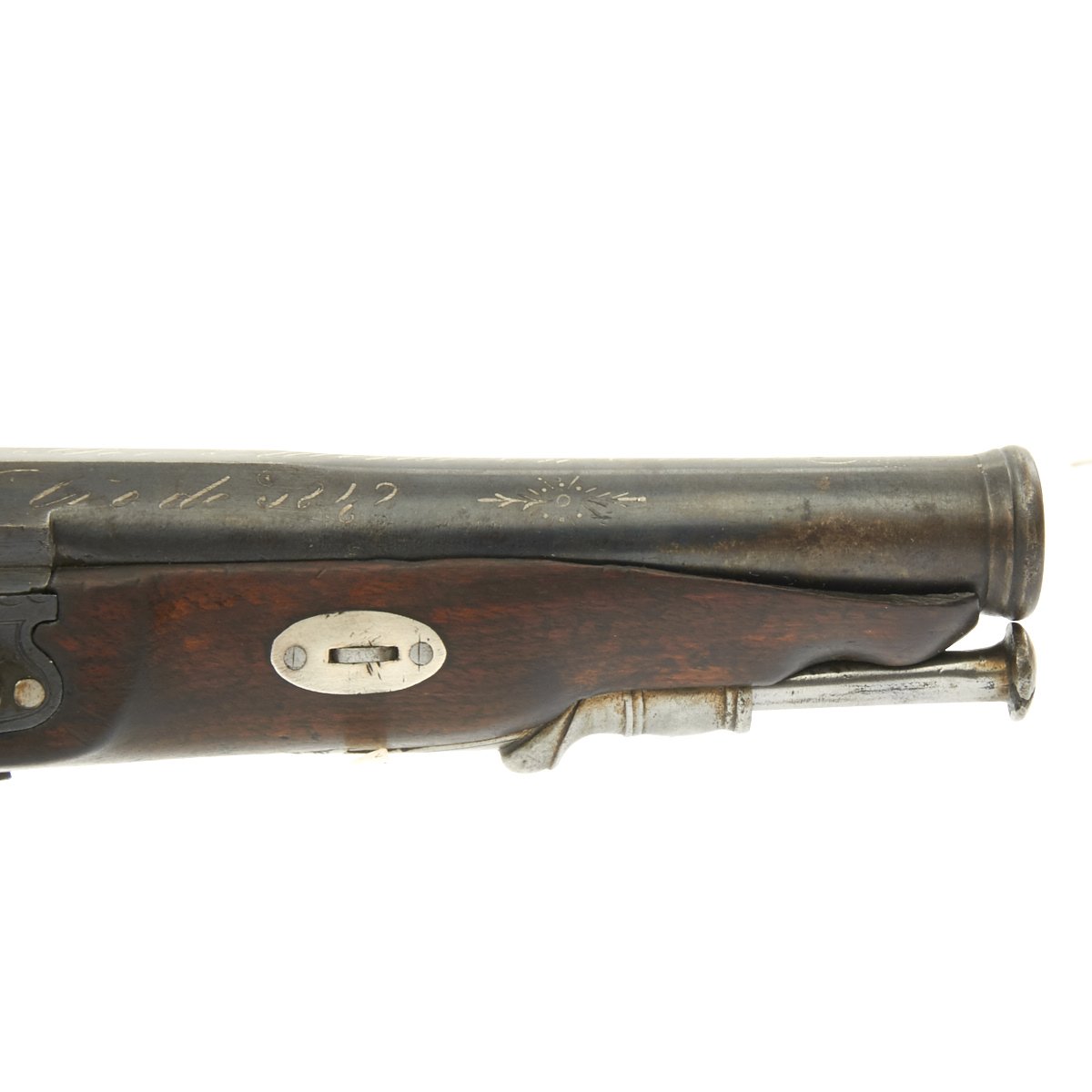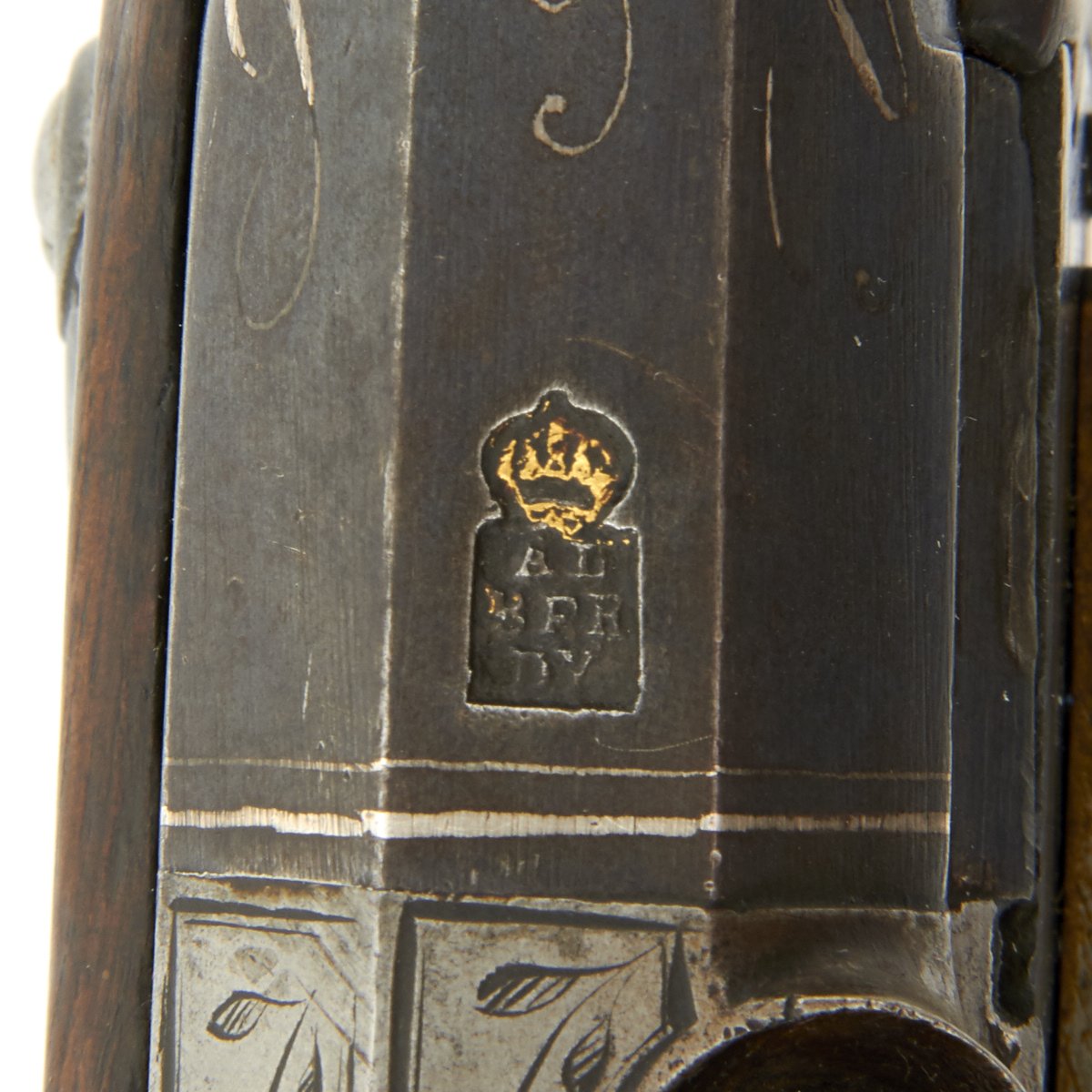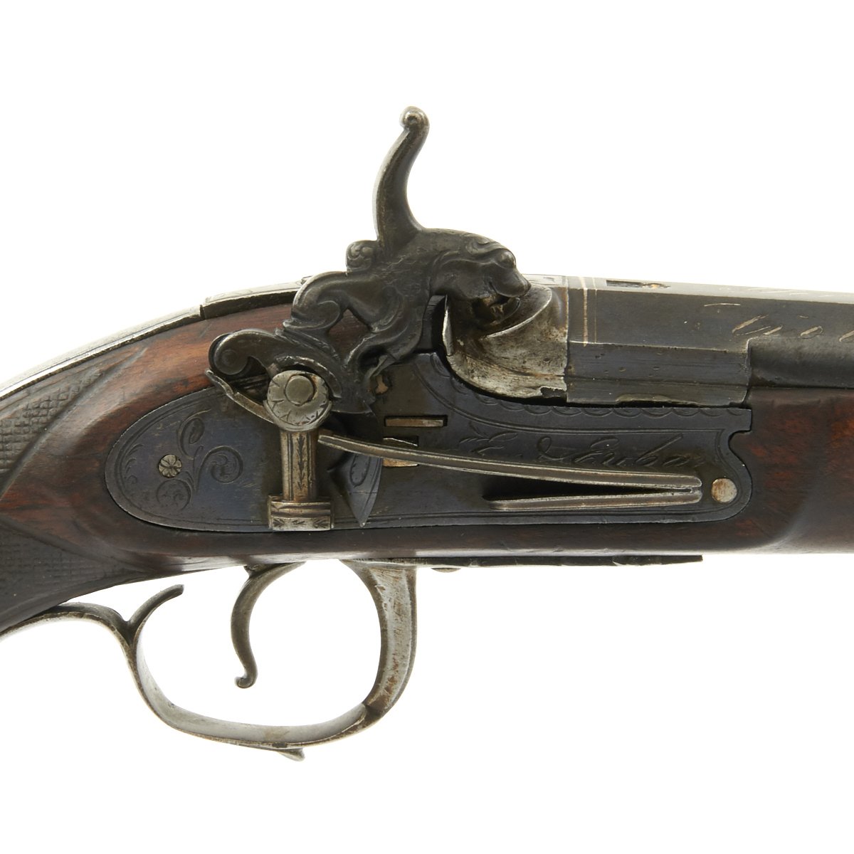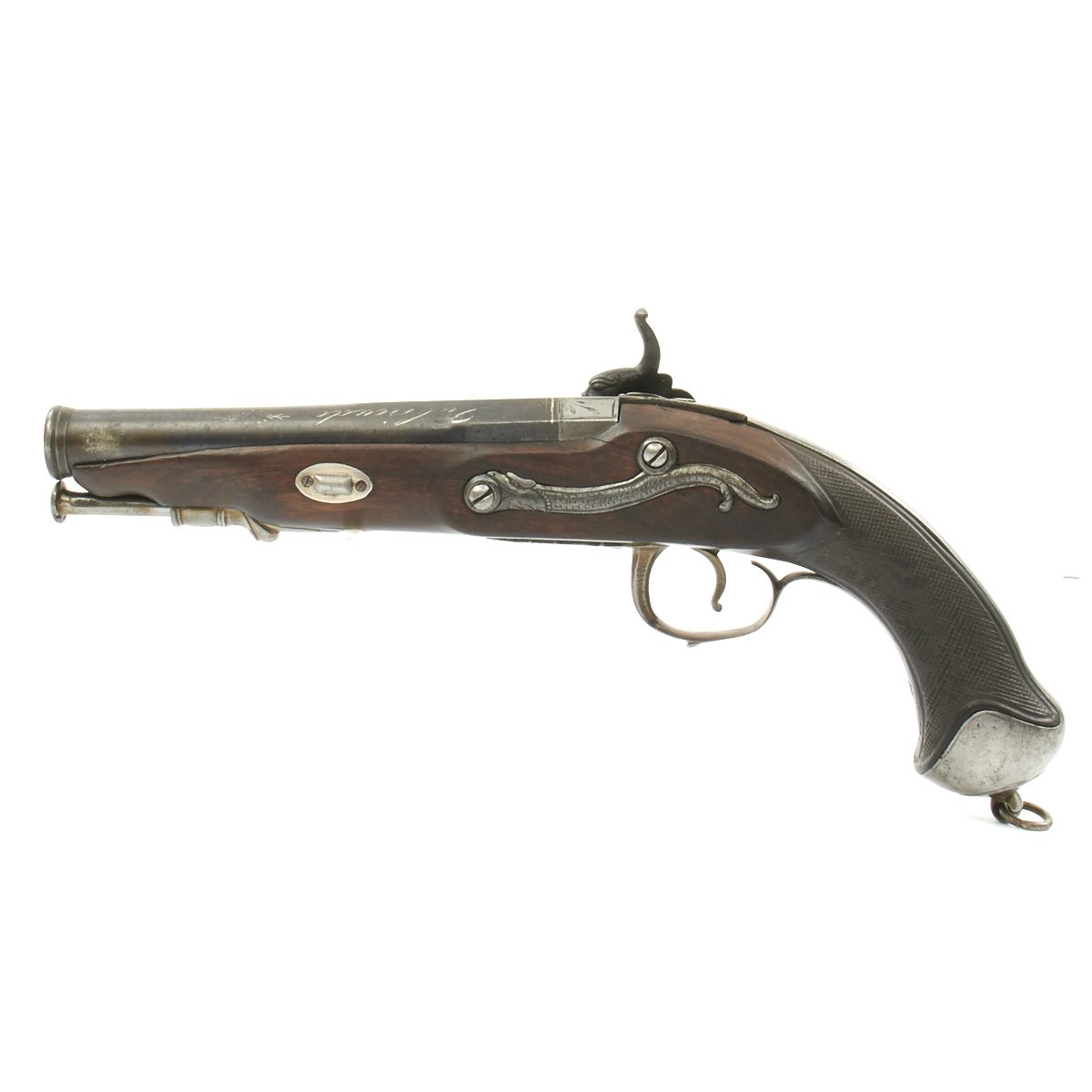 Original Item: One of a Kind. This is just in great condition, showing very very little use. The 7" octagonal barrel becomes round toward the muzzle bears the Maker's Cartouche on the breech, which appears to read :- AL / BFR / DY is also signed in silver inlay script on the barrel. We have not been able to locate this maker, but there were many during the time. The writing is unfortunately very hard to make out, but seems to say: