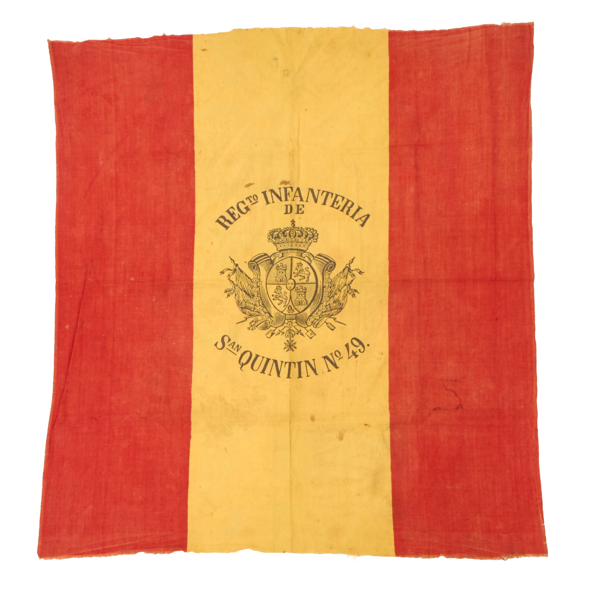 Original Spanish-American War Spanish Army San Quintin Regiment No. 49 Knapsack Flag - Fought in Cuba - 33 x 34½”