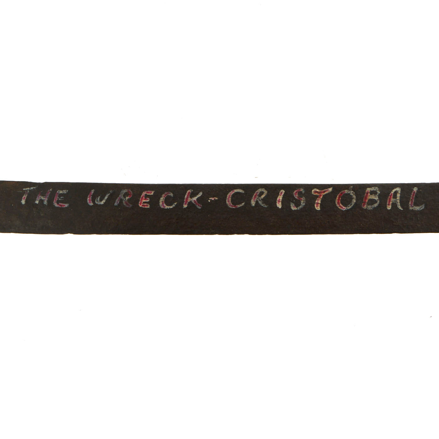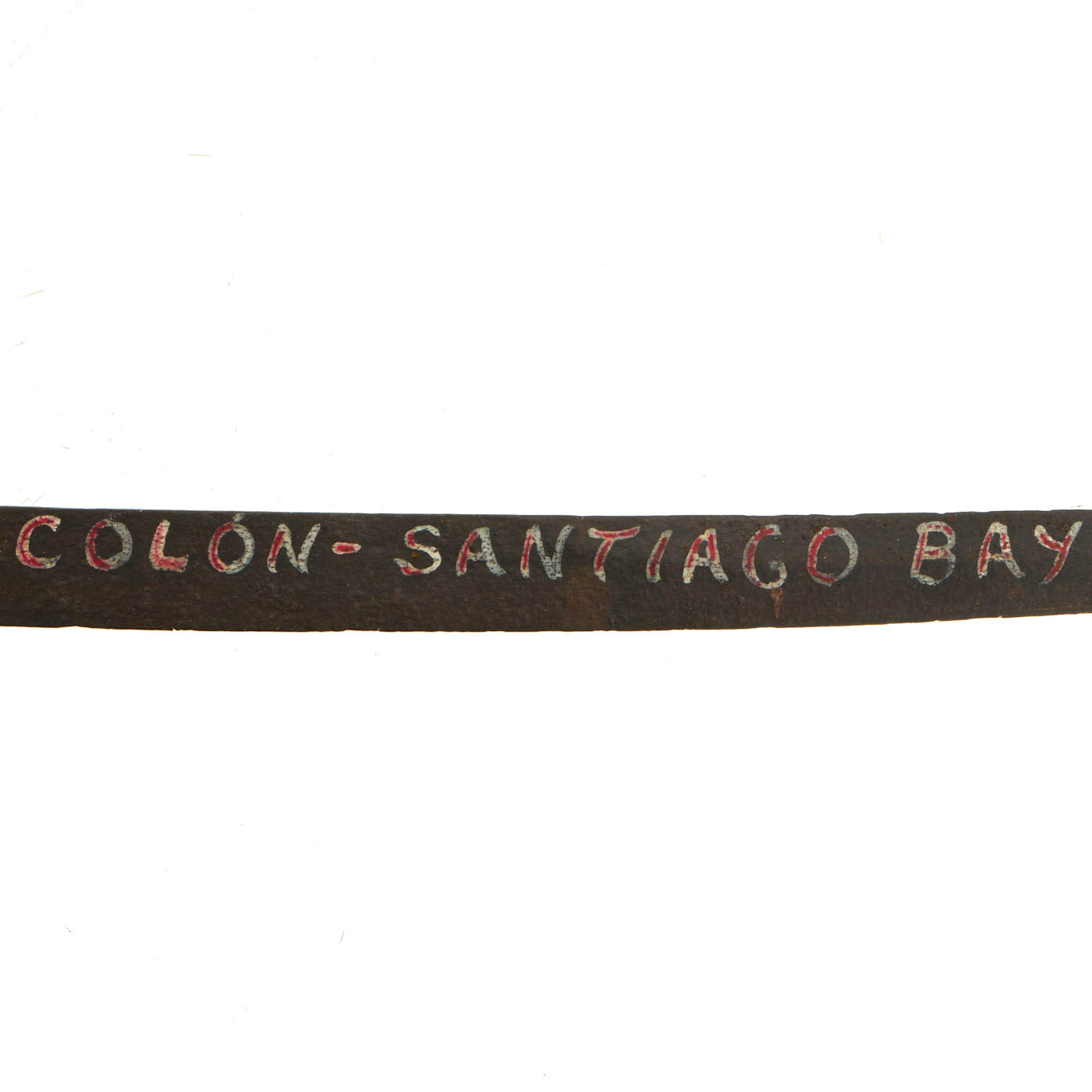 As such, the Cristóbal Colón was completely outmatched by the U.S. Navy during the Battle of Santiago Bay, Cuba, 3 July 1898. After several other ships were sunk, the cruiser tried to outrun the U.S. ships, but eventually ran out of high quality coal, and took several hits from U.S. shells. The captain then beached her at the mouth of the Tarquino River, west of Santiago, to end the battle. The U.S. attempted to salvage her, but she capsized on the Cuban coast, in easy reach of divers, which is how this was recovered.