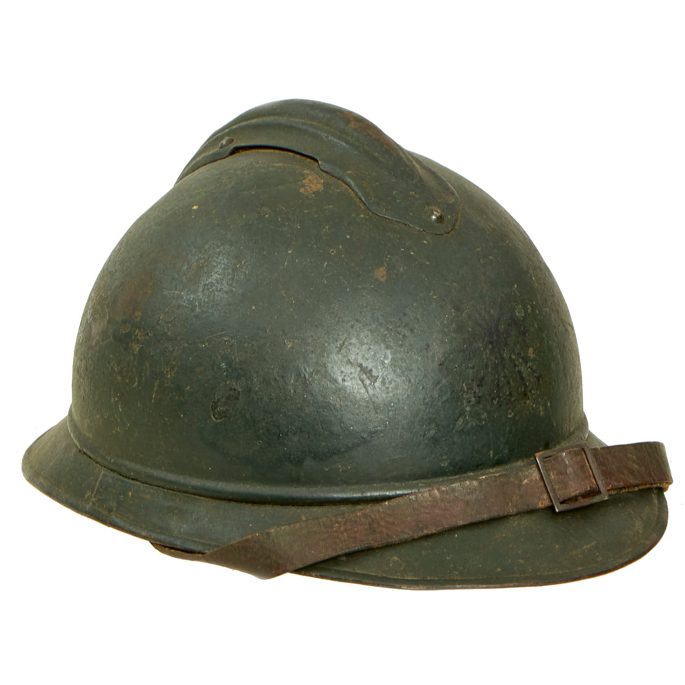 Original Items: Only One Available. The Adrian helmet (French: Casque Adrian) was an influential design of combat helmet originally produced for the French Army during World War I. Its original version, the M15, was the first standard helmet of the French Army and was designed when millions of French troops were engaged in trench warfare, and head wounds from the falling shrapnel generated by indirect fire became a frequent cause of battlefield casualties. Introduced in 1915, it was the first modern steel helmet and it served as the basic helmet of many armies well into the 1930s. Initially issued to infantry soldiers, in modified form they were also issued to cavalry and tank crews. A subsequent version, the M26, was used during World War II.