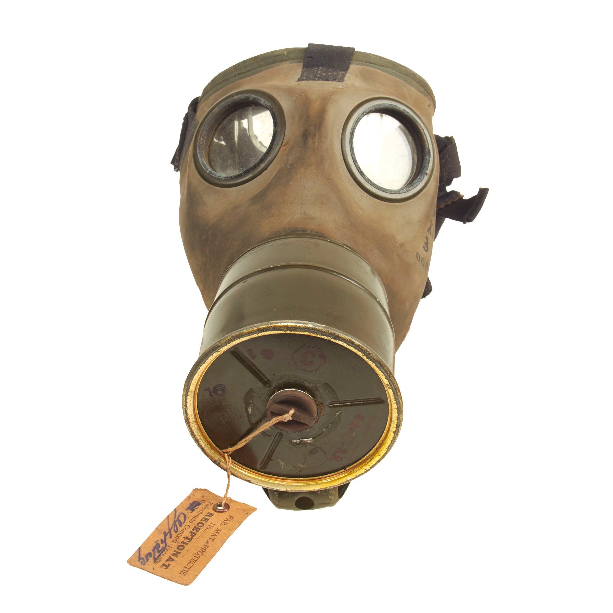 Original Item: Only One Available. This is a rather scarce gas mask model and the information on them is even scarcer. The mask is labeled as being an M35 and the canister as well, both of which are dated 1939. The mask itself appears to be a copy variant of the Italian T35 mask.