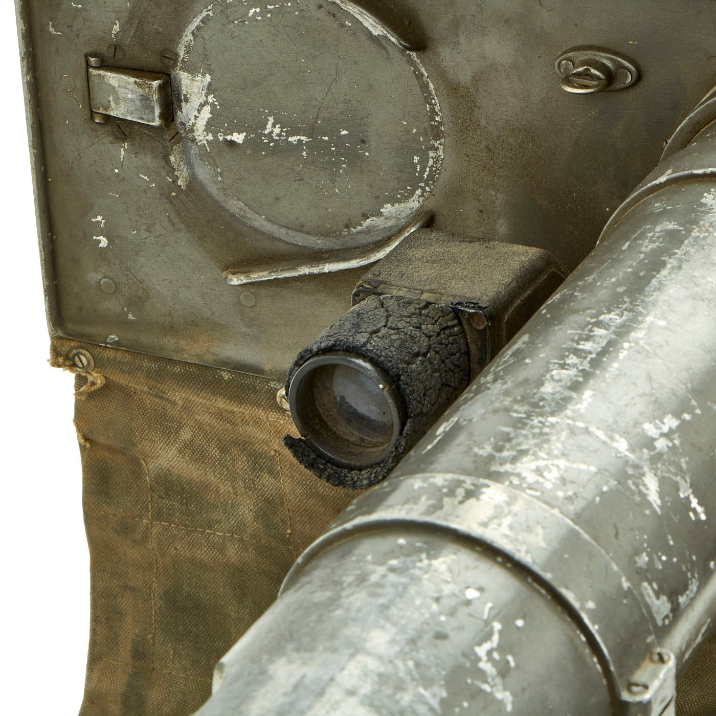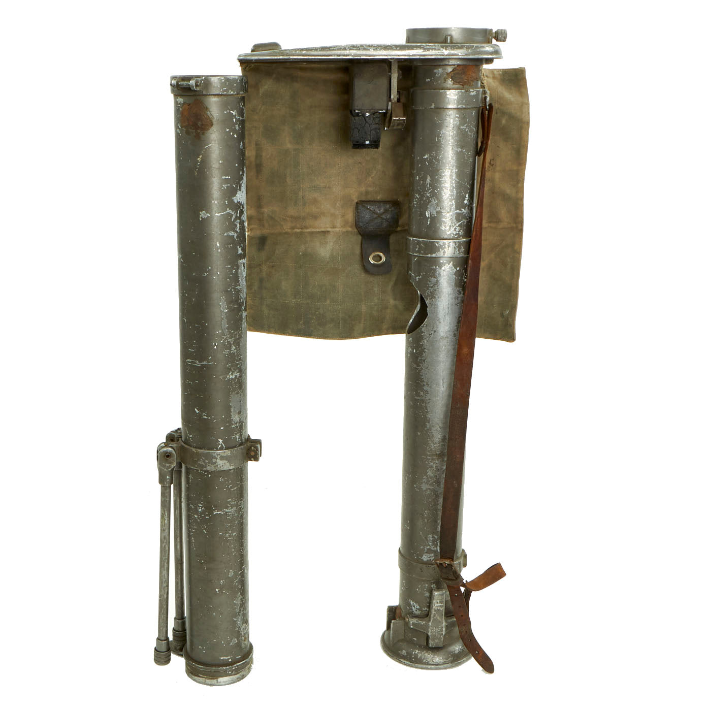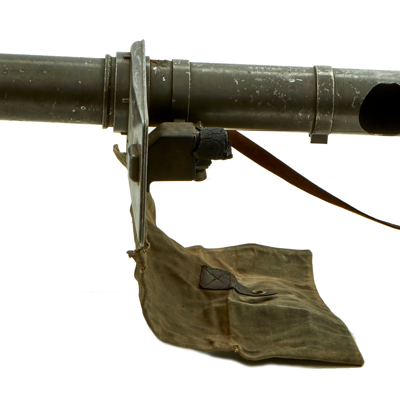This fine example still retains the original sling, and correctly sets up, with the integral Bipod and rear Monopod. The optical sight still works, though the rubber eyepiece is somewhat degraded, and it is complete with an original canvas face shield. The range measurements are listed in DECAMETROS (decimeters).