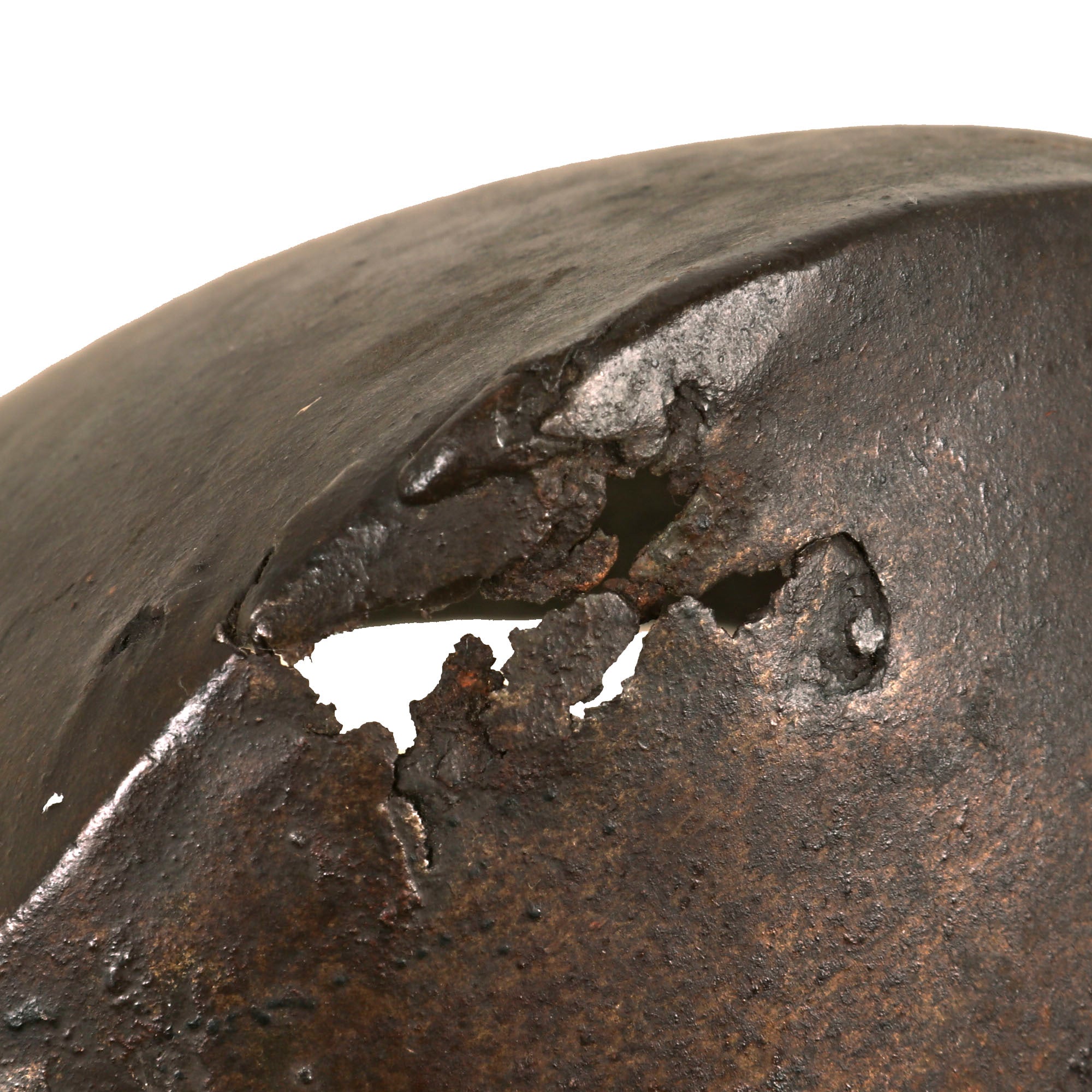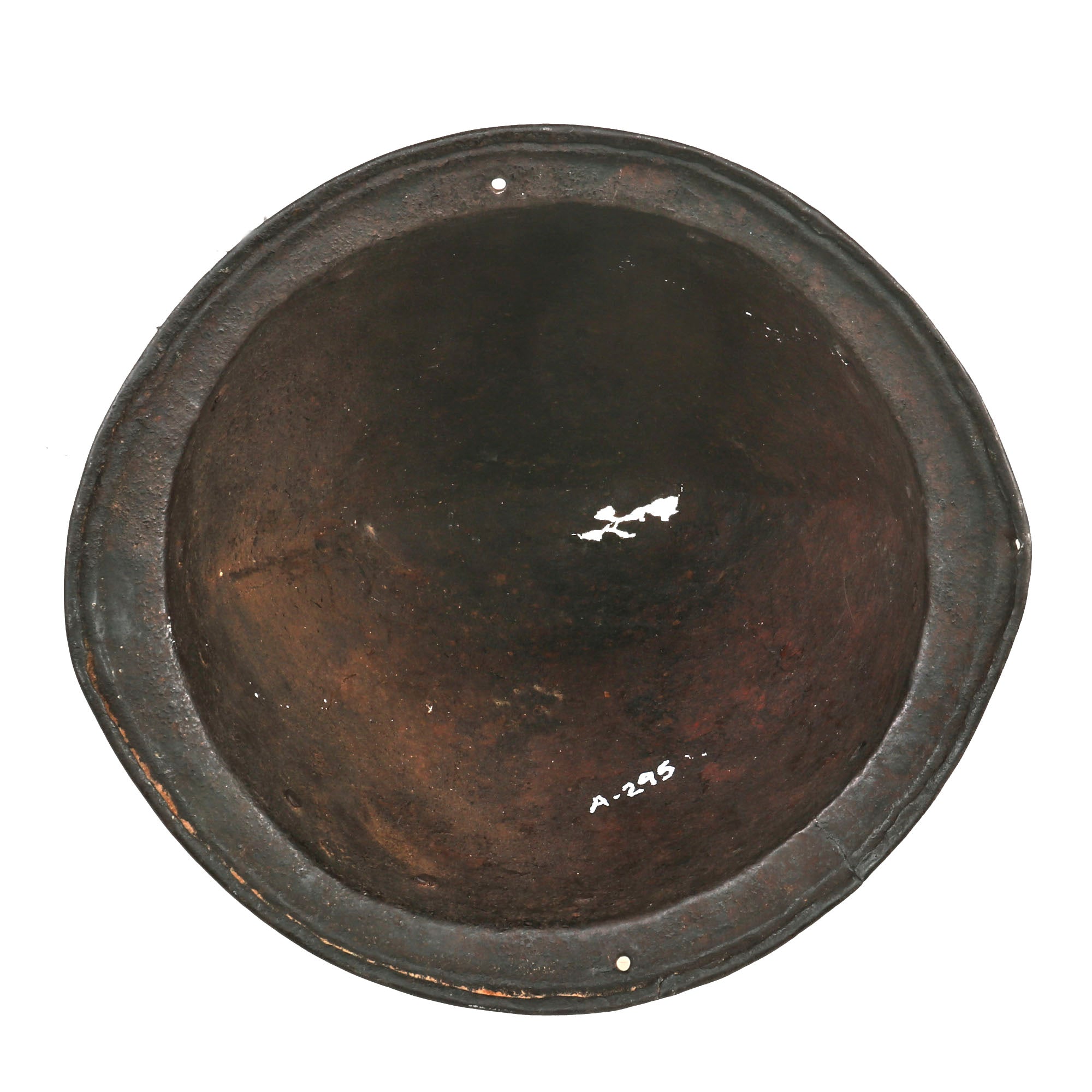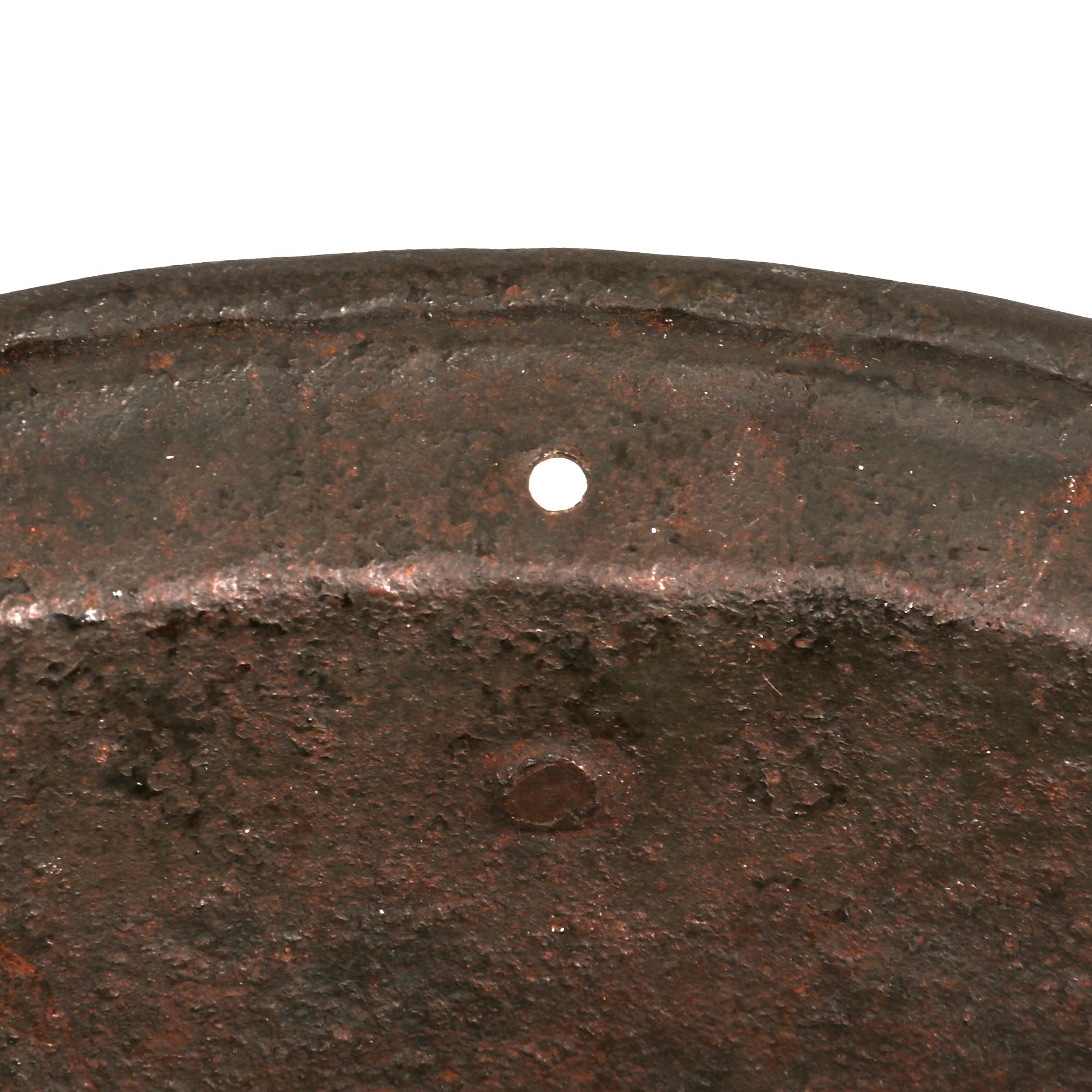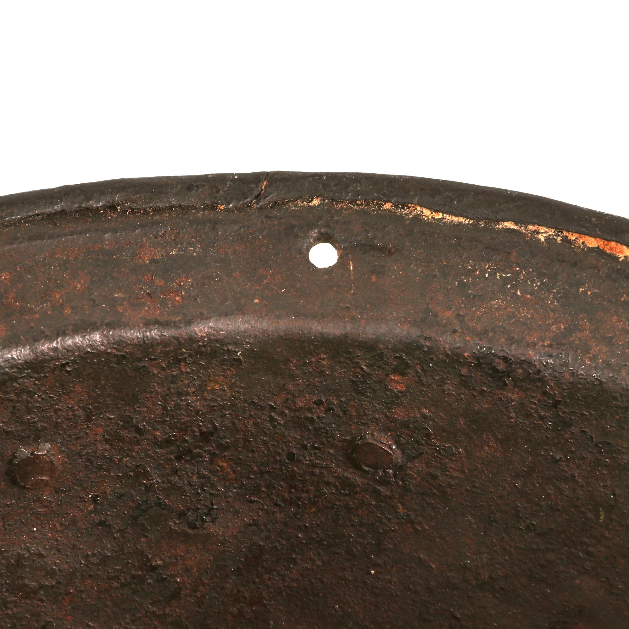 Original Item: Only One Available. This helmet was constructed of two overlapping pieces of iron which were hammered and riveted together. Along the narrow brim is a row of riveted holes that would have included a band of leather secured by said rivets. This leather band would have been stitched to a fabric helmet lining, which is no longer present.Cabasset, from the Spanish word capacete, meaning “little cap” was a light helmet similar to the Burgonet helmet, cabasset helmets were used in the 16th and 17th centuries by light cavalry and infantrymen in Europe.This helmet is in lovely condition for its age! As mentioned, there is no cloth or leather still present in this example, but the rivets are still present on the side. Since arrows weren’t really capable of piercing armor, this helmet could have fallen victim to target practice. There are also some small rusting holes near the top as shown, as is expected from helmets of this age.Comes more than ready for further research and display!