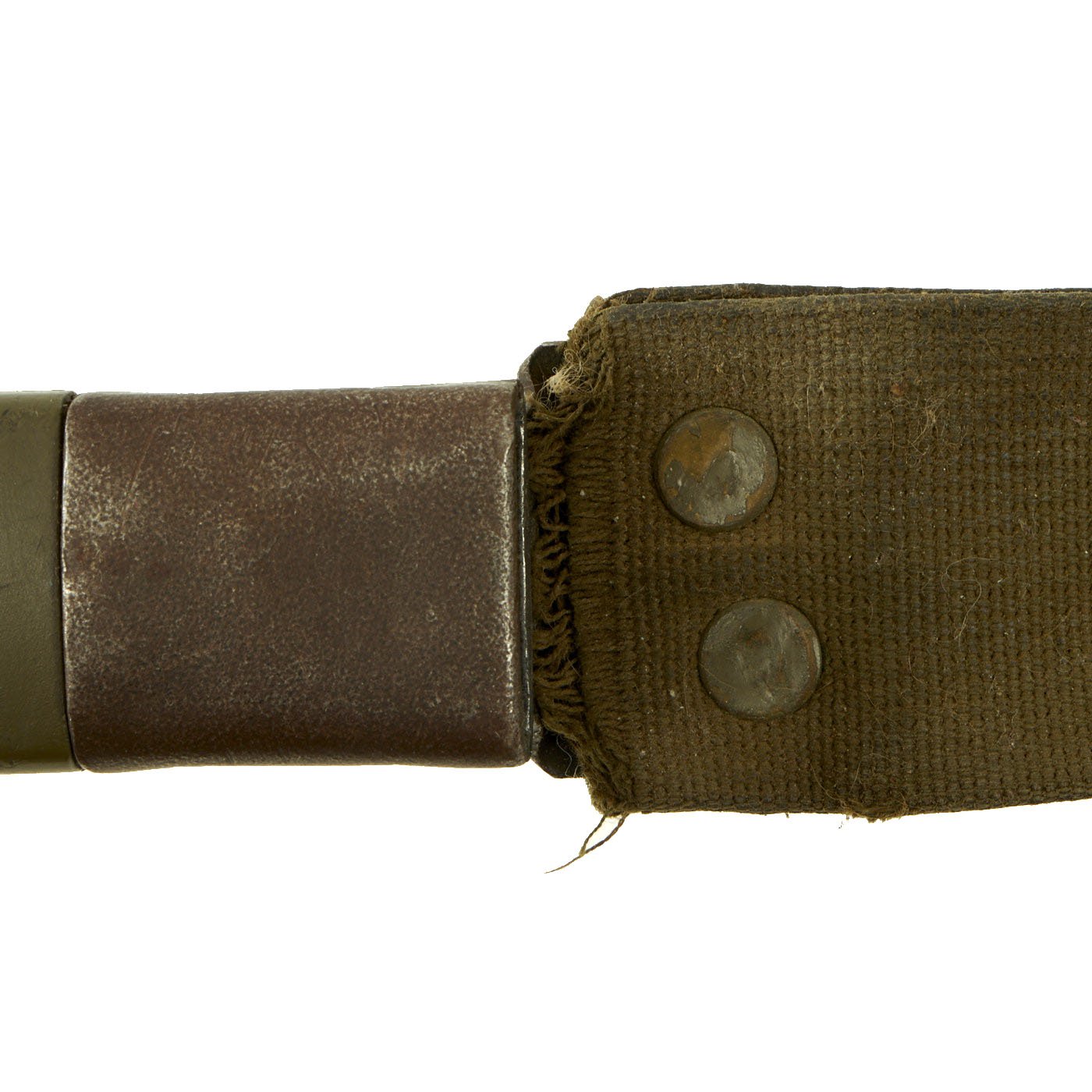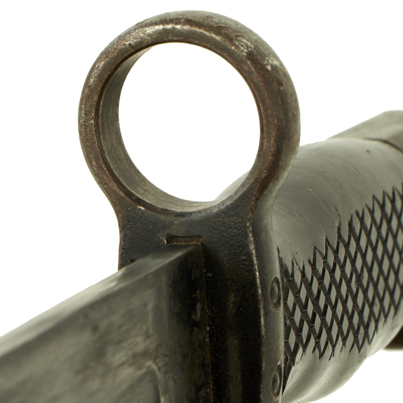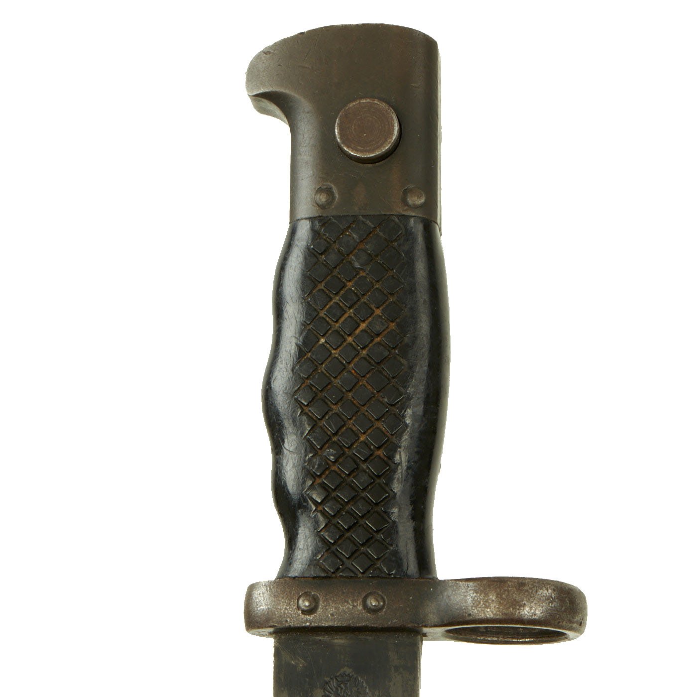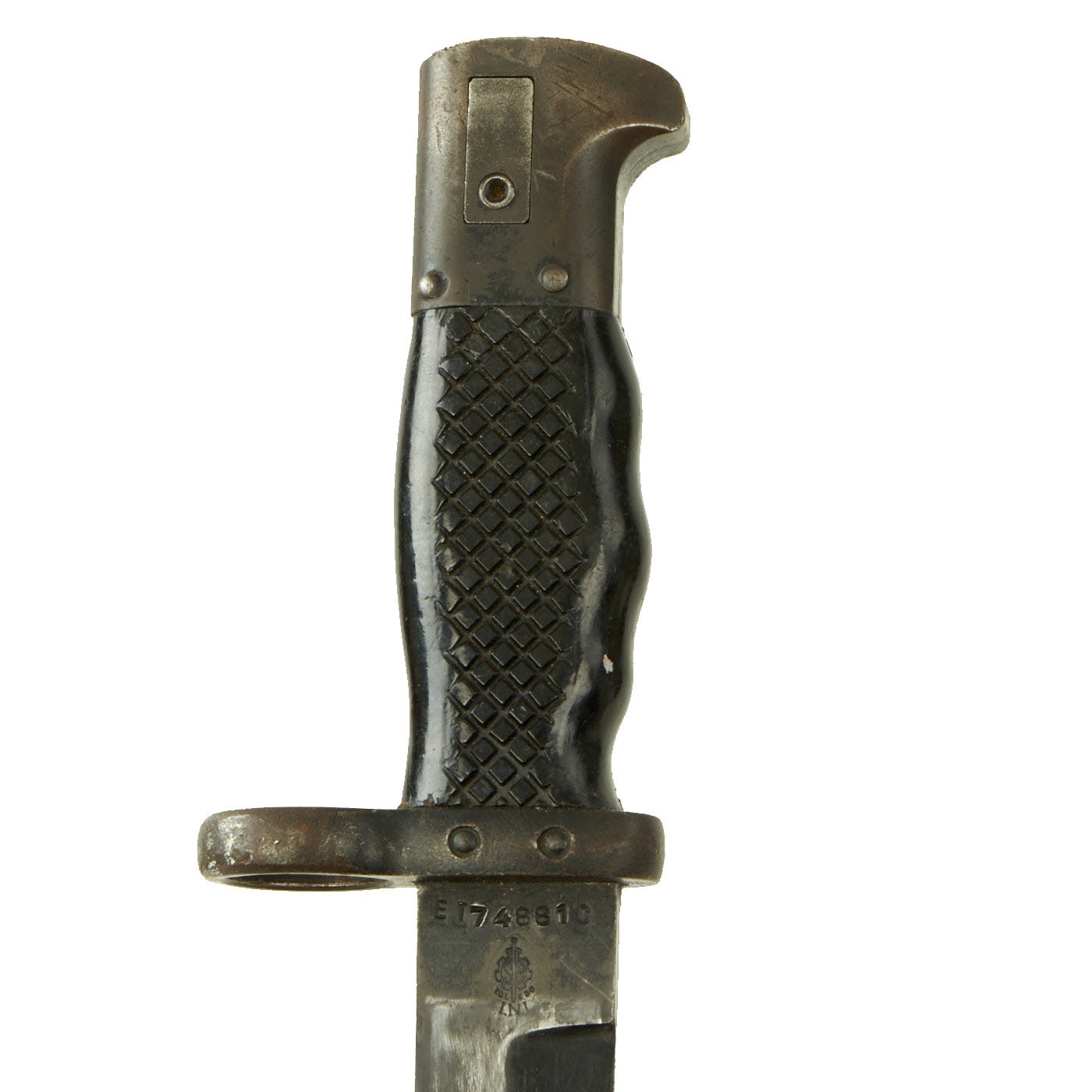 Original Item: Only One Available. This is a very nice used example of the M1964 knife bayonet for use on the Spanish 7.62 mm. NATO caliber CETME Model C selective-fire rifle. The original Model A had no provision for a bayonet, but this was later added. While the blade is not very long, it definitely has a "bolo" machete profile, and the official designation in Spanish is Machete Bayoneta Modelo 1964. For more information please see Watts & White, THE BAYONET BOOK, Page 253, Item 569.