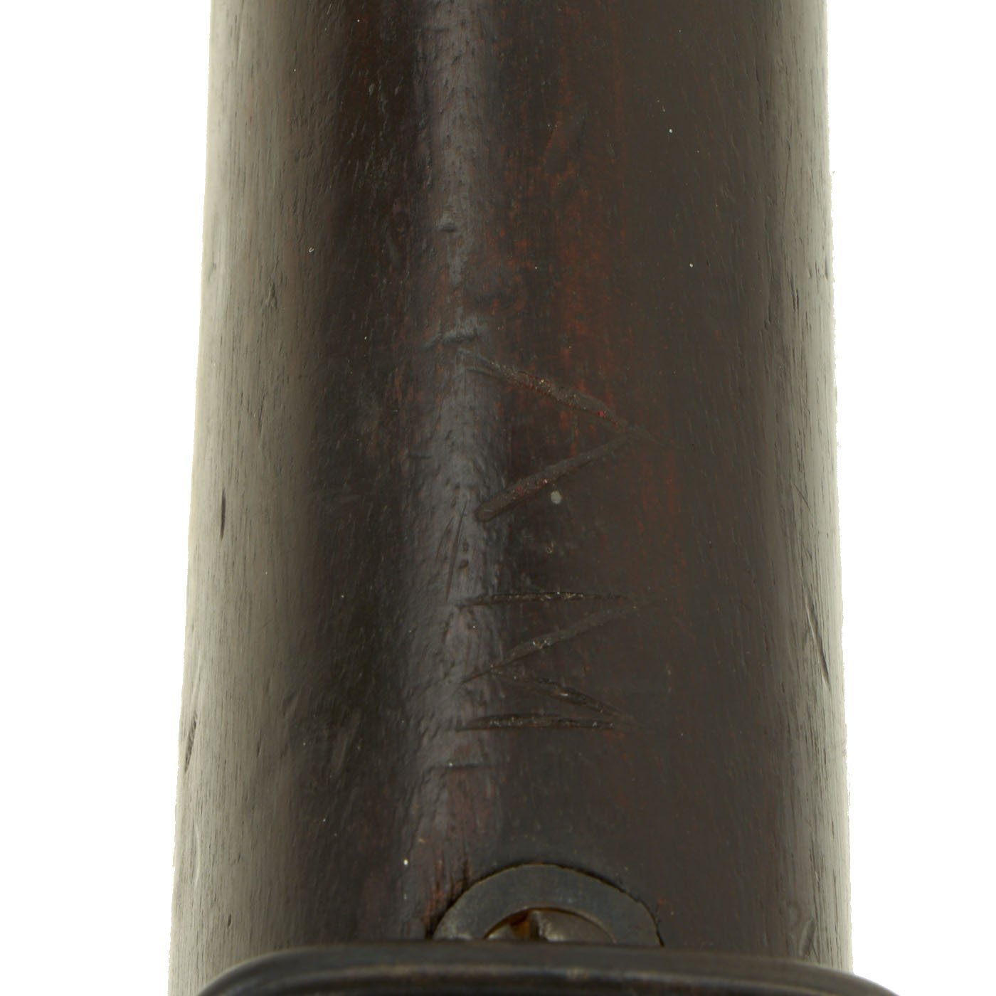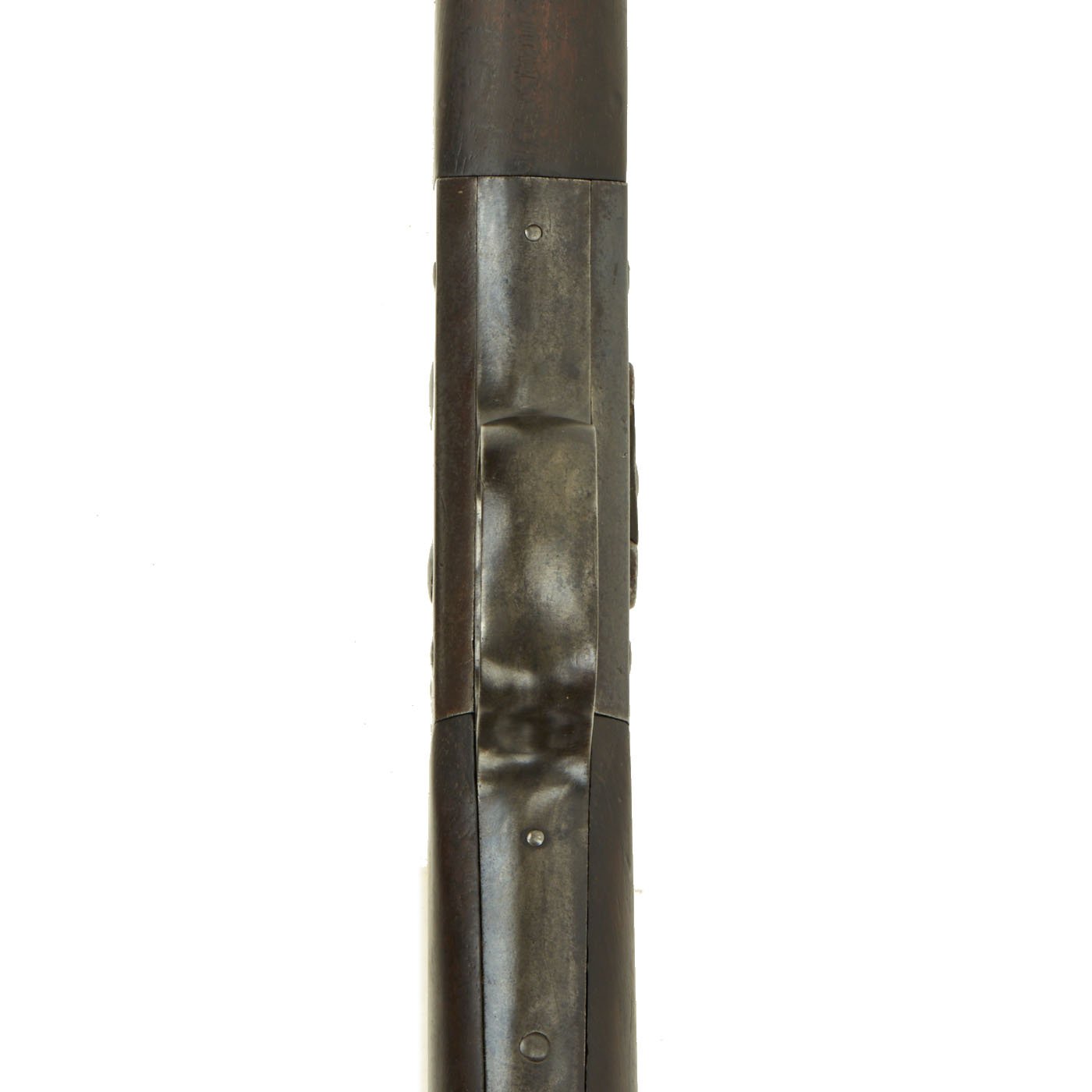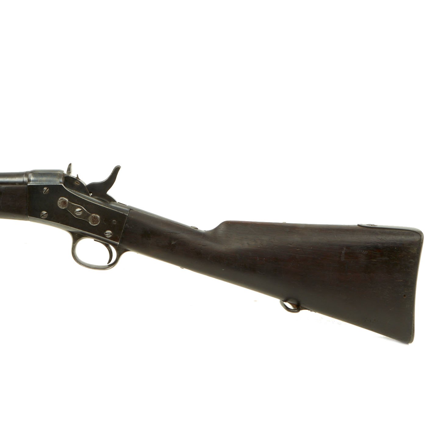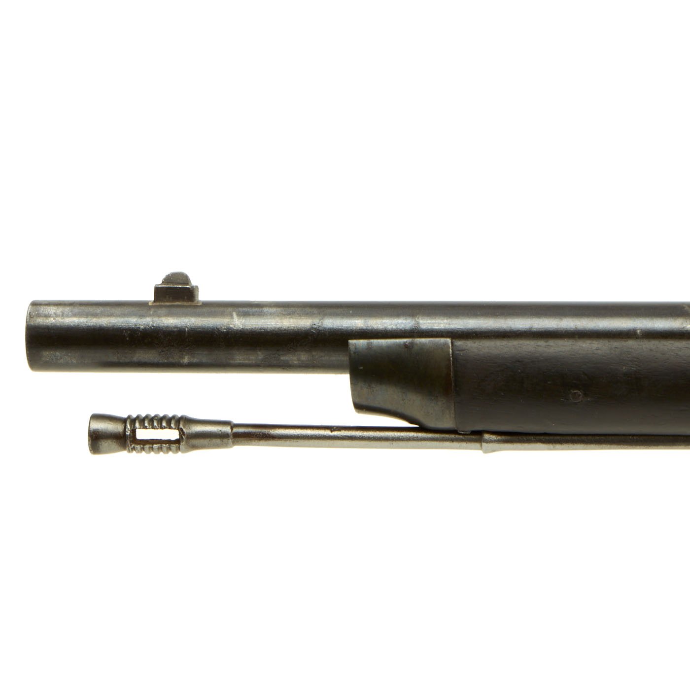 The Remington patent licensing markings on the top action strap have long since worn away but the rifle is in really good shape, with no signs of having been refurbished. The stock does not look to have been reconditioned, and the original markings are clear, the wood dark from decades of oiling. The rear sight is fully intact, and the bore is in excellent condition, showing a bright finish with clear lands and grooves. It still has the original cleaning rod as well!