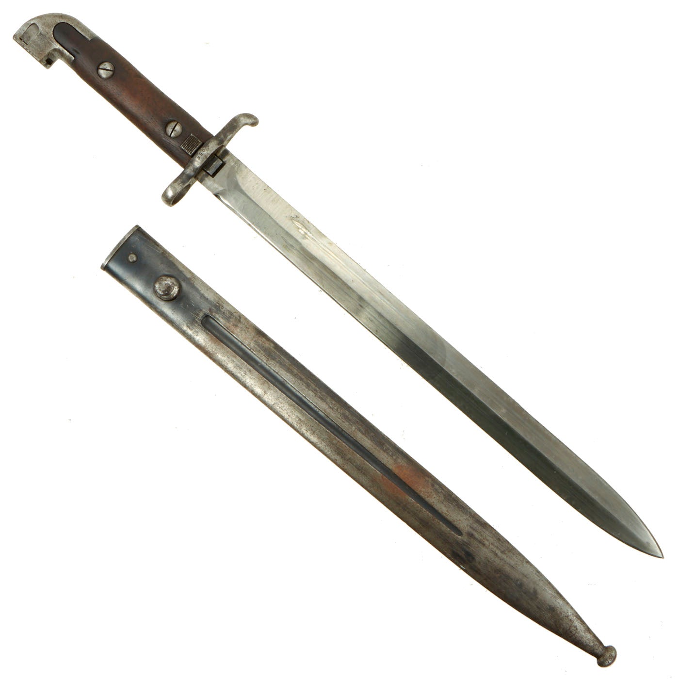 Original Item: Only One Available. This is a rare, excellent condition Swedish M1914 Bayonet produced for M1894/14 6.5mm Mauser Carbines. The Bayonets were also issued To Stockholm Palace Guards for attachment to their M1945 Carl Gustav SubMachine Guns (see pages 255-256 & Page 263 of The Bayonet Book By Watts & White).