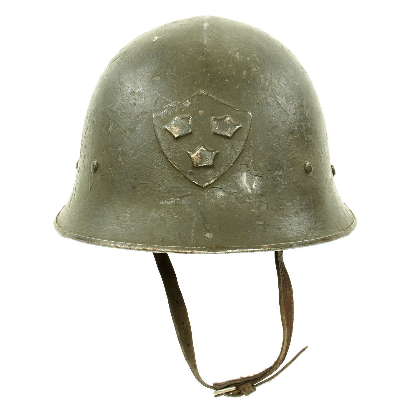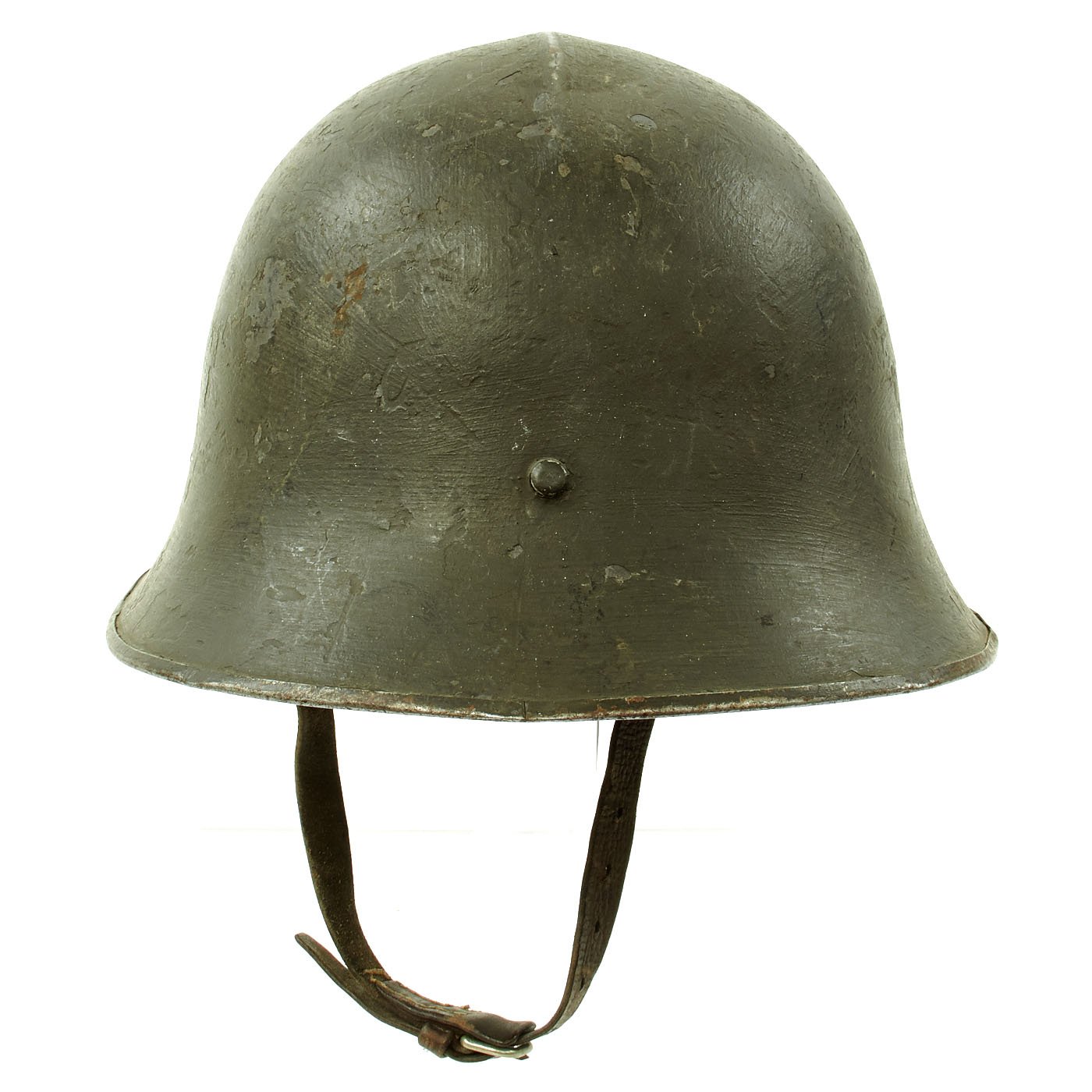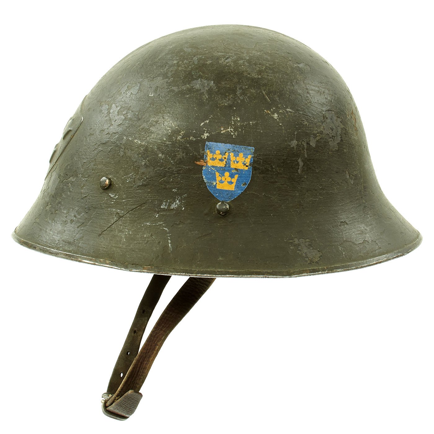Original Item: Only One Available. The Swedish military M21-18 helmet was introduced in 1921 as the second version of the M21 helmet. The first version, the M21-16 had a wider brim. Swedish M21 (18), also known as the "high top" was the second type having a narrower brim and less of a crest, these helmets were developed in 1918 but did not come into production until 1922/23, made of quality materials at the Eskilstuna Factories. The model was later simplified, removing the crest, front badge, and helmet liner band, creating the M26. These remained in service throughout WWII, after which they were then eventually phased out by the M37.