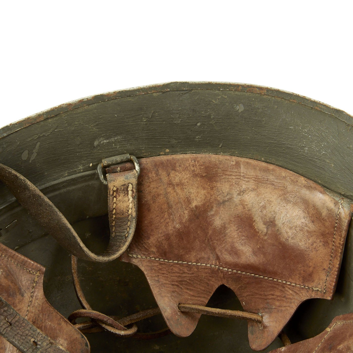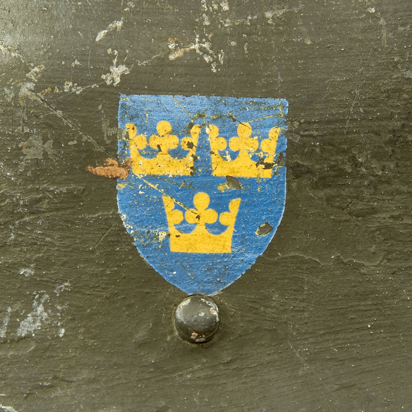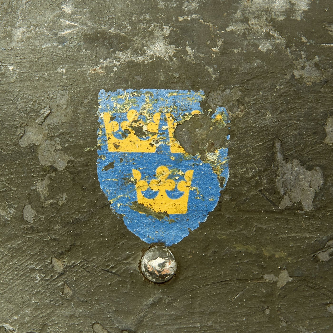 Original Item: Only One Available. The Swedish military M21-18 helmet was introduced in 1921 as the second version of the M21 helmet. The first version, the M21-16 had a wider brim. Swedish M21 (18), also known as the "high top" was the second type having a narrower brim and less of a crest, these helmets were developed in 1918 but did not come into production until 1922/23, made of quality materials at the Eskilstuna Factories. The model was later simplified, removing the crest, front badge, and helmet liner band, creating the M26. These remained in service throughout WWII, after which they were then eventually phased out by the M37.