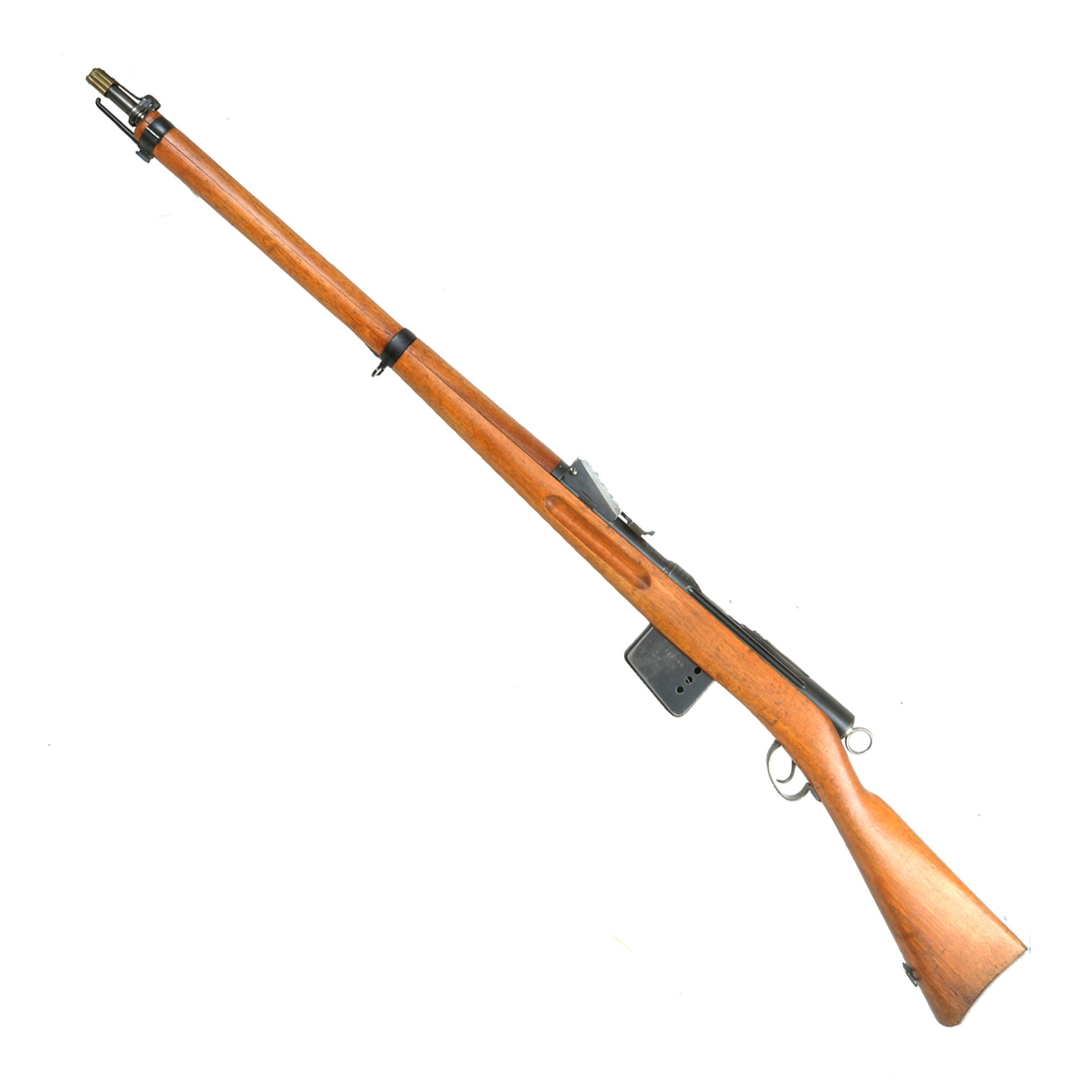 These antique guns are not sold in "live" condition, and are not tested for the the ability to feed or load any type of cartridge. They are sold as collector's items or as "wall hangers" not for use, and we make no guarantees regarding functionality aside from what is stated in the description. Any attempt at restoring an antique gun to be operational is strongly discouraged and is done so at the risk of the customer. By purchasing an antique gun from IMA you thereby release IMA, its employees and corporate officers from any and all liability associated with use of our Antique guns.