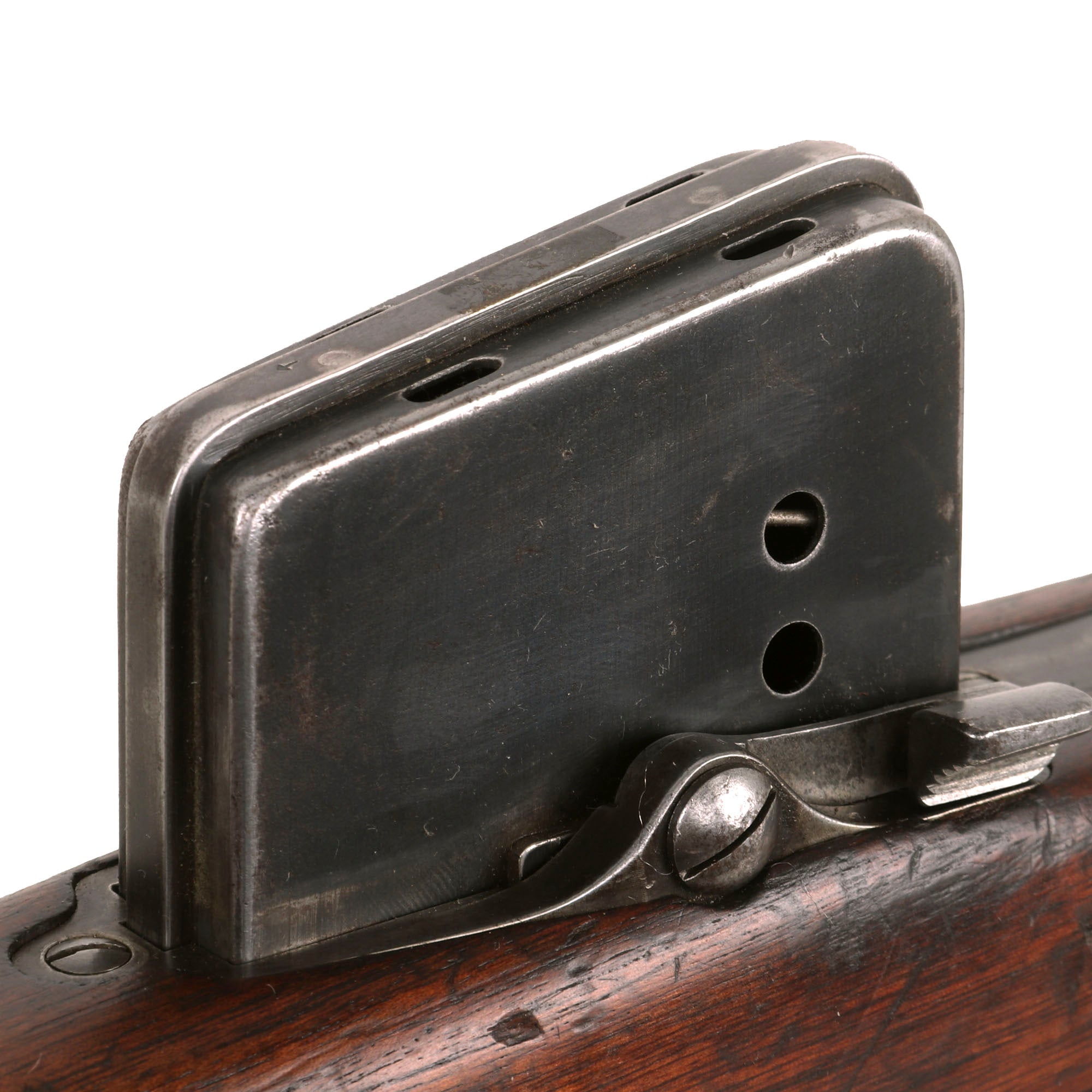 The rifle cycles securely, with a very satisfying "clunk-click", and a crisp dry fire. The magazine cutoff/release lever works correctly as well. The magazine itself looks functional, though we have no way to test the feed system. The bore is in excellent condition, showing little to no signs of use. It has a mirror bright finish with crisp lands and grooves, and there is no primer ring burned into the bolt. While this rifle was carried around for a good amount of time, it looks to have seen little to no use.