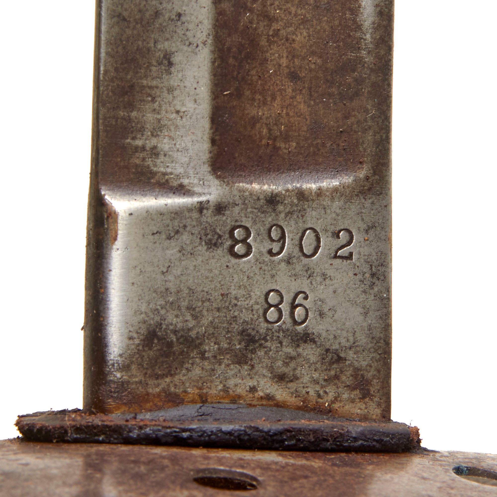 This company is a famous manufacturer of military swords and cutlery in Solingen, Germany - a city famous since the middle ages for its metal-working and craftsmanship in sword making. Per J. Anthony Carter's fine work GERMAN SWORD AND KNIFE MAKERS, the traditional manufacturing of swords at WKC dates back to the year 1774 when the Weyersberg first registered the ''Kings head'' as their trademark. Later in 1883 the company merged with the Kirschbaums and the company WKC was formed as it exists today. It was heavily involved with exporting edged weapons to South American countries in the late 19th and early 20th century. The other side of the sword is marked with 8902 / 86.
