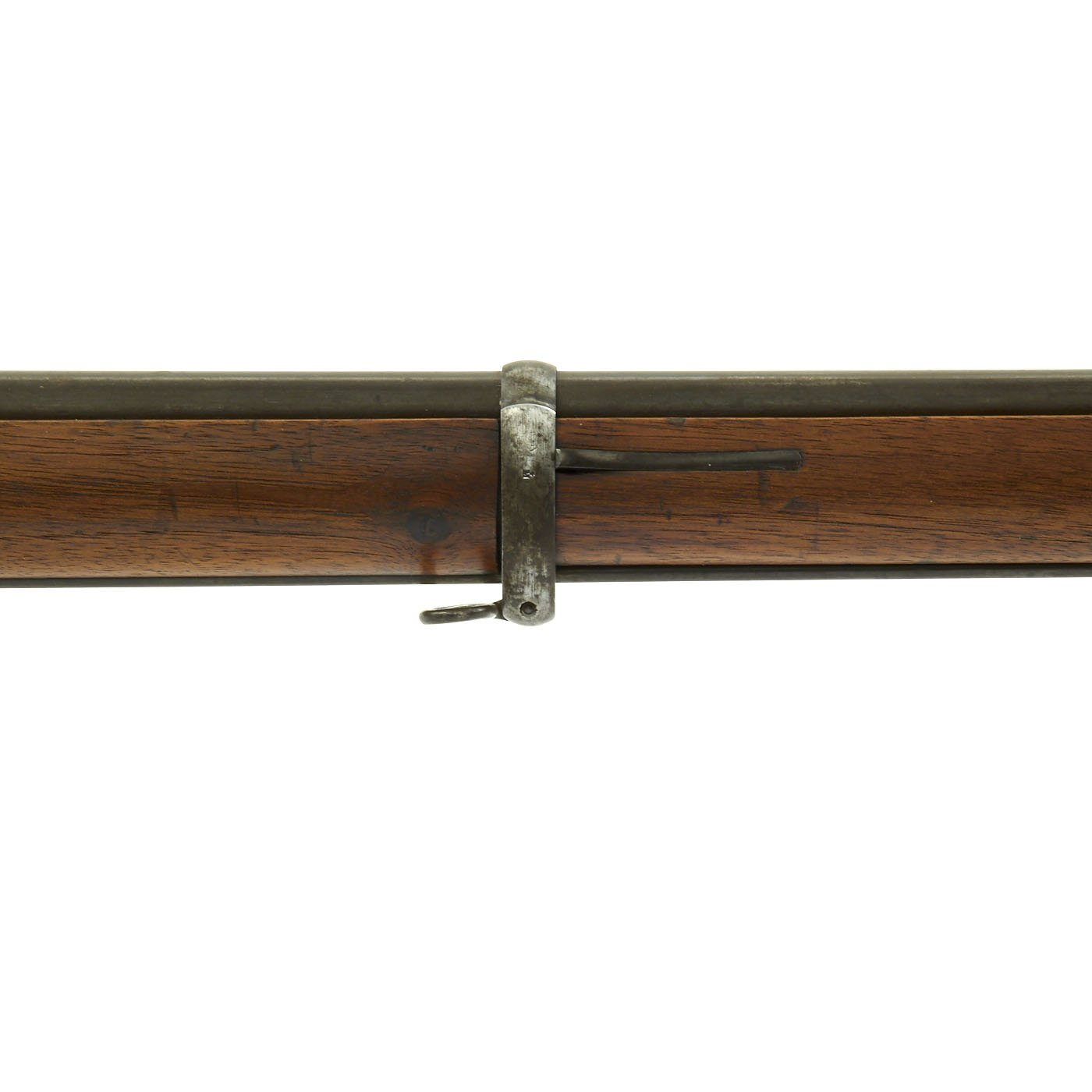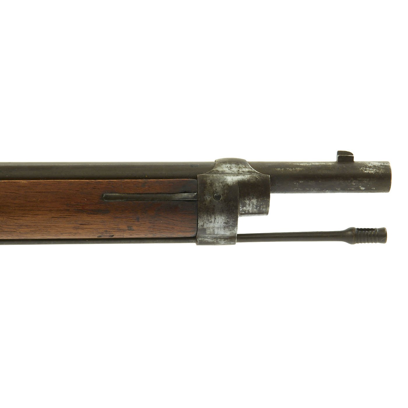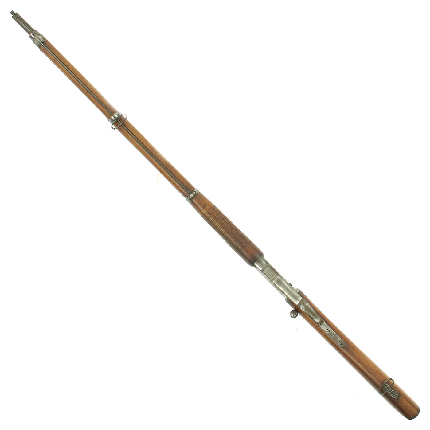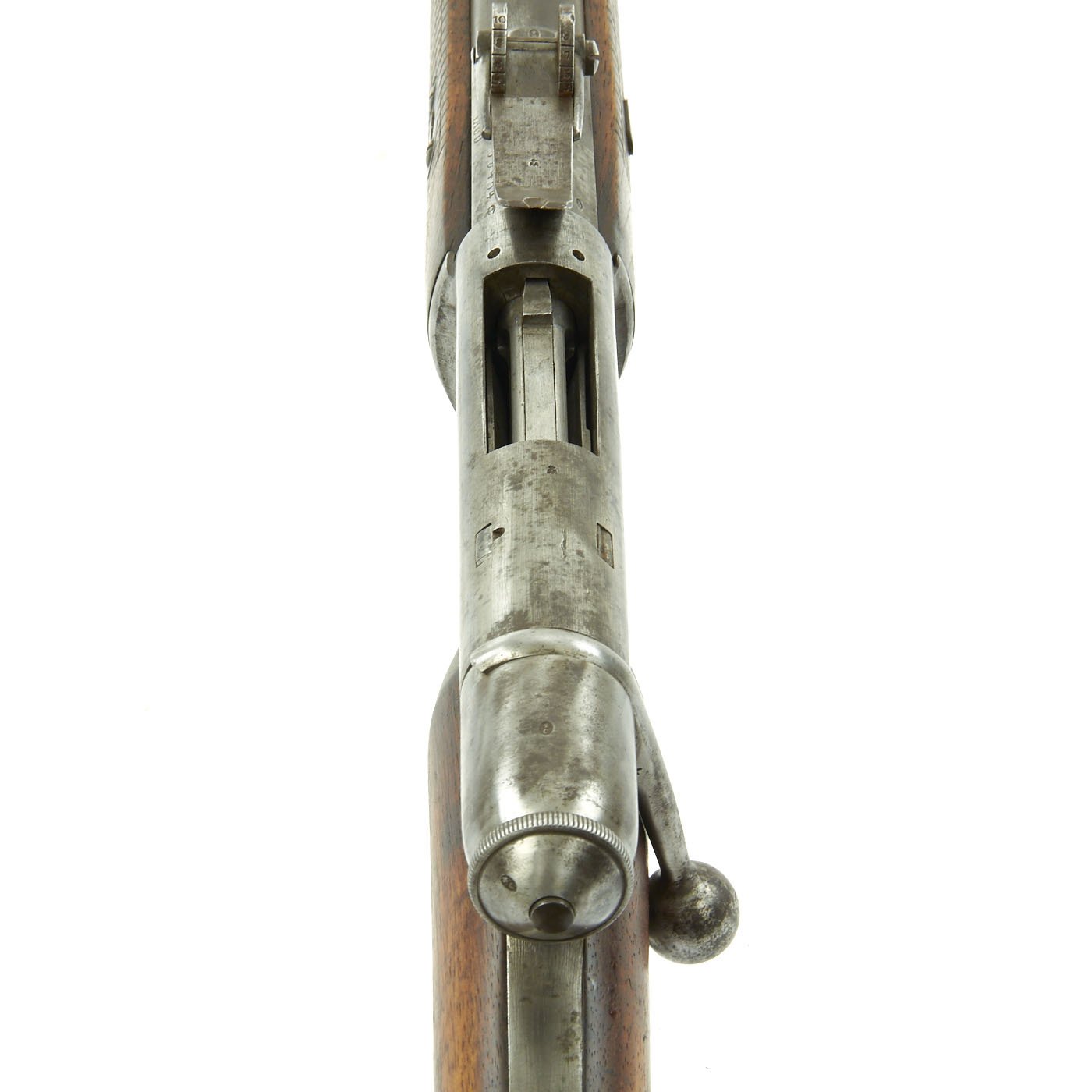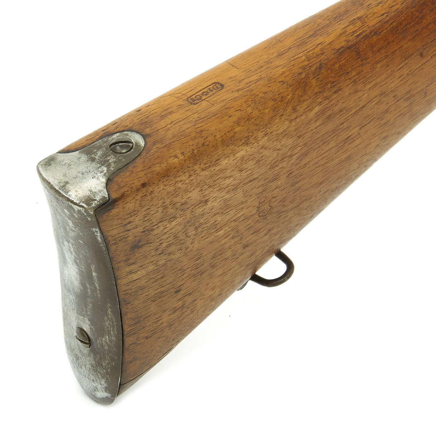 Offered in very good condition, this was a rifle serving at the time of Britain's legendary Martini-Henry Single Shot Rifle, also introduced in 1871 and not replaced with a magazine rifle until 1888. Wood stock is in great condition, with the expected wear and dents of age. It has a beautiful light brown color, with a nice patina, and there are Swiss proof marks stamped in various places. The bore does show lands and grooves, but also much fouling, especially towards the muzzle. The Cleaning rod is in good shape, and has a faded proof mark. Action cycles nicely, though it takes a strong bolt pull to present the ejector/feed block, as intended. Also the U-shaped striker is missing.