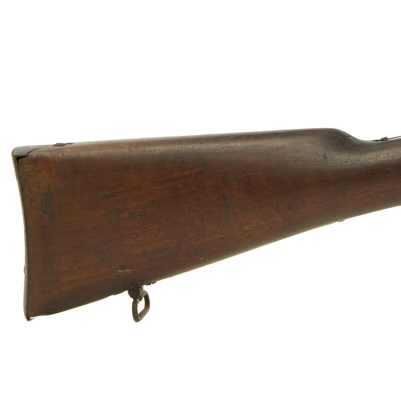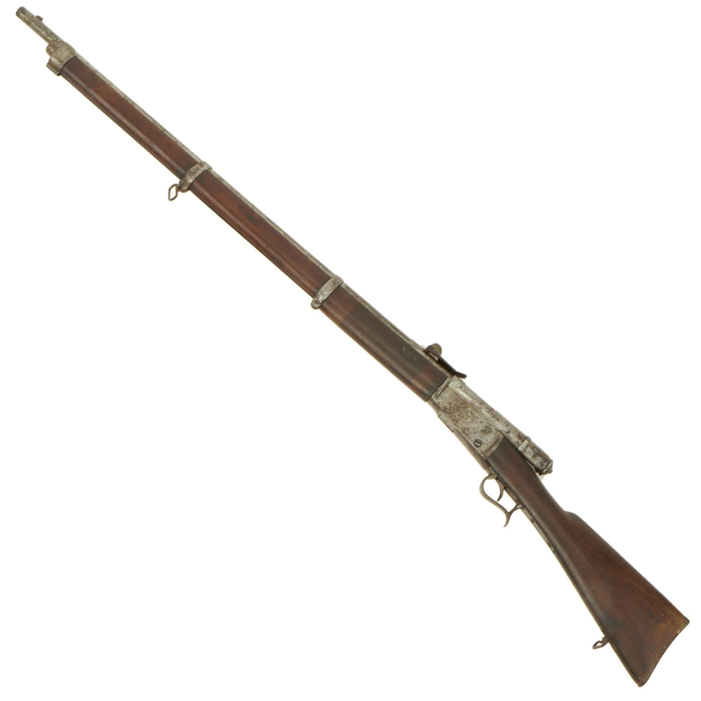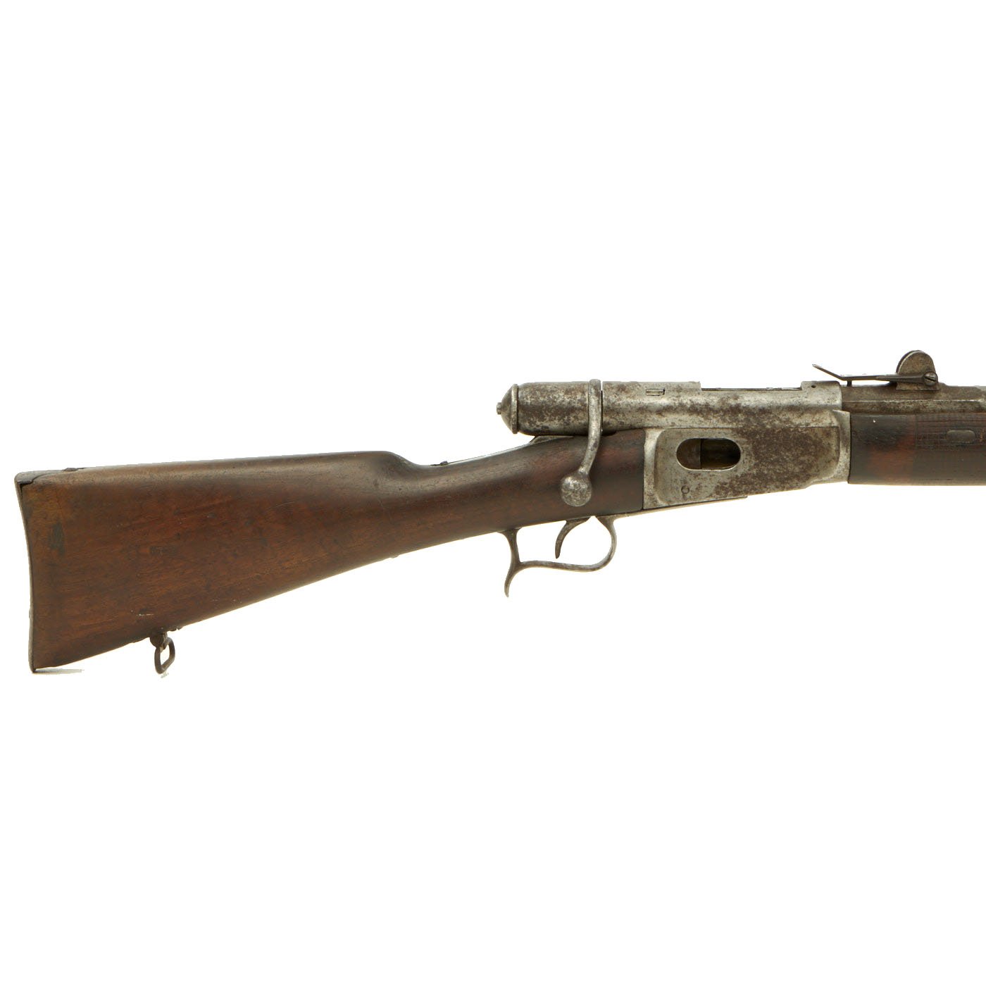 Original Item: Only One Available. Introduced in 1867, the Vetterli rifle system utilized the "Winchester" tube magazine system for cartridge storage under the barrel. The original 1867 model had an external hammer, like a Winchester, but in 1868 this was changed to an internal cocking bolt spring. The cleaning rod was moved to the side of the rifle, but this proved problematic, so the model of 1869 moved it back to the under barrel position. In 1871, the loading gate cover on the right side of the receiver and the magazine cutoff on the left side were deemed to be redundant, so a new model 1871 was introduced without them. It also featured strengthened barrel rings and a much thicker and sturdier rear sight leaf. Later models after this changed over to the box Magazine found on most rifles of the WWI era.