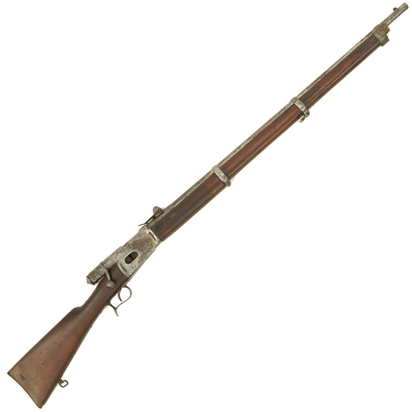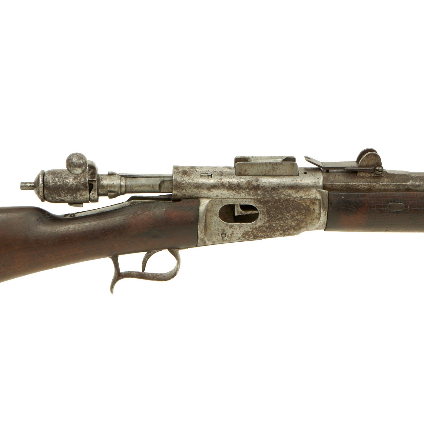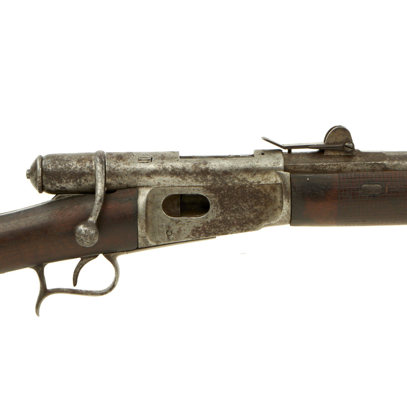 Original Item: Only One Available. Introduced in 1867, the Vetterli rifle system utilized the "Winchester" tube magazine system for cartridge storage under the barrel. The original 1867 model had an external hammer, like a Winchester, but in 1868 this was changed to an internal cocking bolt spring. The cleaning rod was moved to the side of the rifle, but this proved problematic, so the model of 1869 moved it back to the under barrel position. In 1871, the loading gate cover on the right side of the receiver and the magazine cutoff on the left side were deemed to be redundant, so a new model 1871 was introduced without them. It also featured strengthened barrel rings and a much thicker and sturdier rear sight leaf. Later models after this changed over to the box Magazine found on most rifles of the WWI era.